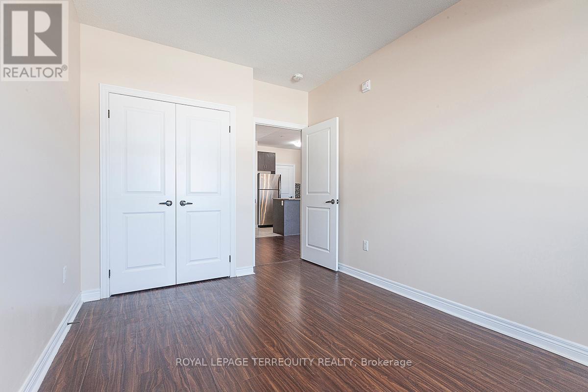 Premium Location! Immaculate 1 Bedroom + Den located on the 6th floor featuring no carpet and modern finishes throughout. Conveniently situated within walking distance to shopping, Home Depot, Beer Store & LCBO, Canadian Tire, Costco, restaurants, transit, and major highways.Interior features include freshly painted walls, 9-ft ceilings, laminate flooring throughout, and a contemporary kitchen with granite countertops, breakfast bar, and stainless steel appliances. Spacious living room with walkout to an open balcony. Includes ensuite laundry, one underground parking space, and a storage locker.Building amenities include a fully equipped exercise room/gym, games room, party room, and ample visitor parking. (id:4555)