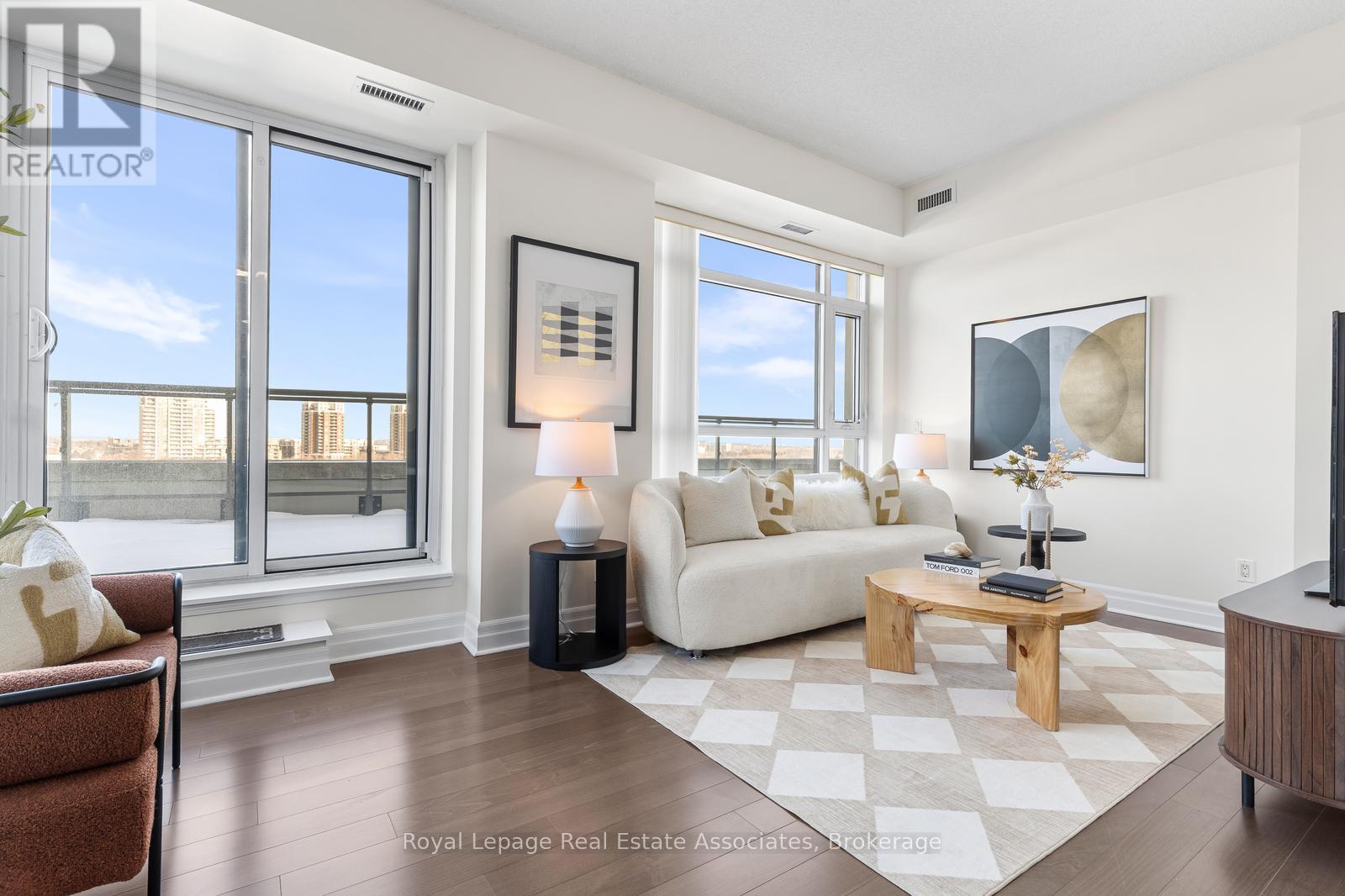 Welcome to exceptional urban living in the heart of Downtown Markham! This bright and spacious 2-bedroom + den condo offers a thoughtfully designed split-bedroom layout, ideal for privacy and functionality. Floor-to-ceiling windows flood the open-concept living and dining area with natural light, creating an inviting space perfect for both everyday living and entertaining. The stylish modern kitchen features stainless steel appliances, a sleek breakfast bar, and ample cabinetry and dining area - seamlessly flowing into the main living area with a walk-out to an oversized terrace. This expansive outdoor space is a rare find, perfect for hosting, relaxing, or creating your own private urban retreat. The primary bedroom offers comfort and convenience with two closets and a 4-piece ensuite bath. A generously sized second bedroom includes its own closet, while the versatile den can easily function as a home office or be converted into a third bedroom to suit your needs. An additional 3-piece bathroom completes this well-appointed layout. Enjoy access to state-of-the-art amenities including 24-hour concierge, party room, indoor pool, sauna, media room, and a rooftop terrace. Unbeatable location just minutes to Highways 404 & 407, steps to VIVA transit and GO Train access, and walking distance to York University. Surrounded by shopping at CF Markville, dining, medical facilities, YMCA, and everyday conveniences - everything you need is right at your doorstep. A perfect opportunity for end-users and investors alike - modern living, exceptional outdoor space, and a prime location all in one. (id:4555)