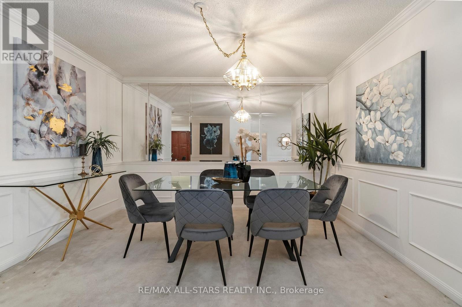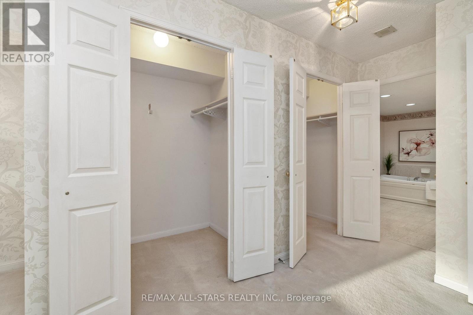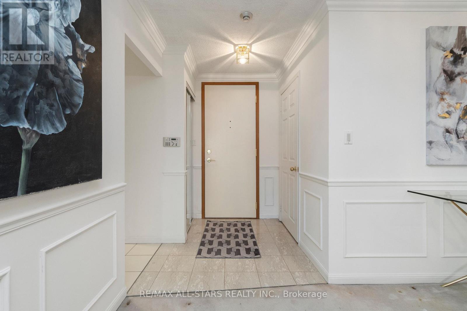 Enjoy effortless, low-maintenance living in this spacious, freshly painted 1,550 sq ft Berkshire model in one of Unionville's most prestigious residences. Designed for comfort without compromise, this suite easily accommodates house-sized furniture and gatherings of family and friends while offering the security and convenience of a luxury building with underground parking, an elegant lobby, 24-hour concierge and exceptional amenities. Residents enjoy a fully equipped gym, indoor and outdoor pools, party and games rooms, squash courts, outdoor BBQ areas and guest suites for visiting loved ones. A welcoming foyer opens to a generous dining area ideal for entertaining, flowing into a large living room with crown mouldings and an adjoining sunroom - perfect for a quiet morning coffee - with walk-out to a covered balcony for relaxing afternoons. The updated eat-in kitchen provides abundant cabinetry and counter space. A desirable split-bedroom layout offers privacy for each room, with a primary suite large enough for a king-sized bedroom set, two walk-in closets and a full ensuite with a walk-in shower, while the second bedroom sits beside a second full bath and in-suite laundry. An ensuite storage room keeps essentials close at hand, and the unit includes one parking space and locker. All-inclusive maintenance fees cover heat, hydro, water, central air, cable, internet, building insurance and more, and the heat pumps have been updated. A perfect opportunity to enjoy a comfortable, worry-free condo lifestyle in a sought-after community! Walk to Markville Mall, the GO Station, Community centre, groceries, pharmacies, nature trails and more. Close to Unionville Main St, multiple bus lines just steps away, and there is easy 404 & 407 access! (id:4555)