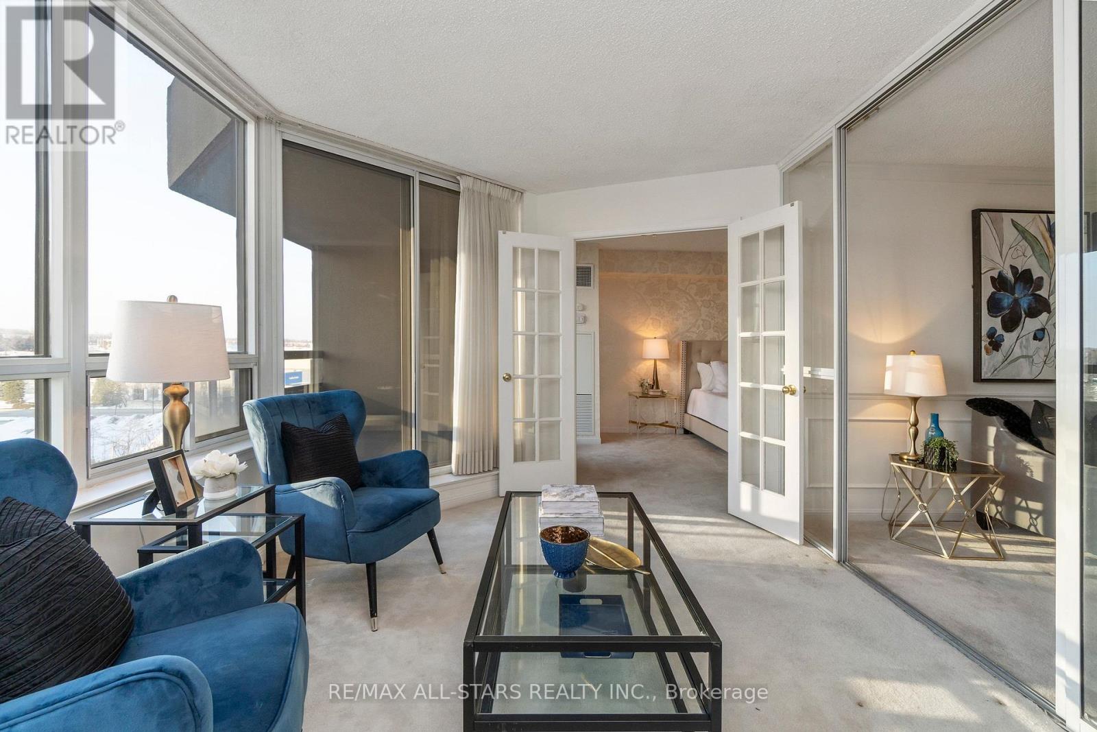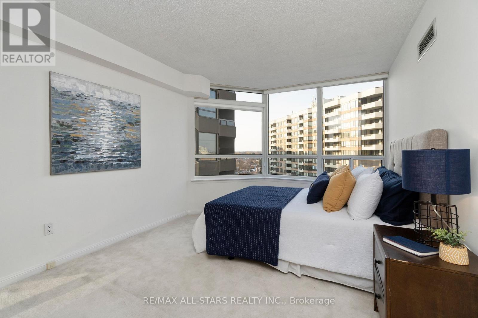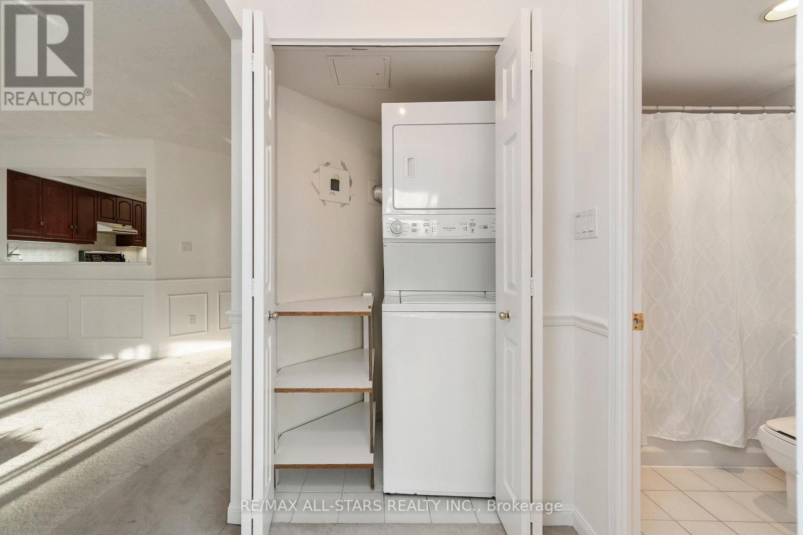 Enjoy effortless, low-maintenance living in this spacious, freshly painted 1,550 sq ft Berkshire model in one of Unionville's most prestigious residences. Designed for comfort without compromise, this suite easily accommodates house-sized furniture and gatherings of family and friends while offering the security and convenience of a luxury building with underground parking, an elegant lobby, 24-hour concierge and exceptional amenities. Residents enjoy a fully equipped gym, indoor and outdoor pools, party and games rooms, squash courts, outdoor BBQ areas and guest suites for visiting loved ones. A welcoming foyer opens to a generous dining area ideal for entertaining, flowing into a large living room with crown mouldings and an adjoining sunroom - perfect for a quiet morning coffee - with walk-out to a covered balcony for relaxing afternoons. The updated eat-in kitchen provides abundant cabinetry and counter space. A desirable split-bedroom layout offers privacy for each room, with a primary suite large enough for a king-sized bedroom set, two walk-in closets and a full ensuite with a walk-in shower, while the second bedroom sits beside a second full bath and in-suite laundry. An ensuite storage room keeps essentials close at hand, and the unit includes one parking space and locker. All-inclusive maintenance fees cover heat, hydro, water, central air, cable, internet, building insurance and more, and the heat pumps have been updated. A perfect opportunity to enjoy a comfortable, worry-free condo lifestyle in a sought-after community! Walk to Markville Mall, the GO Station, Community centre, groceries, pharmacies, nature trails and more. Close to Unionville Main St, multiple bus lines just steps away, and there is easy 404 & 407 access! (id:4555)