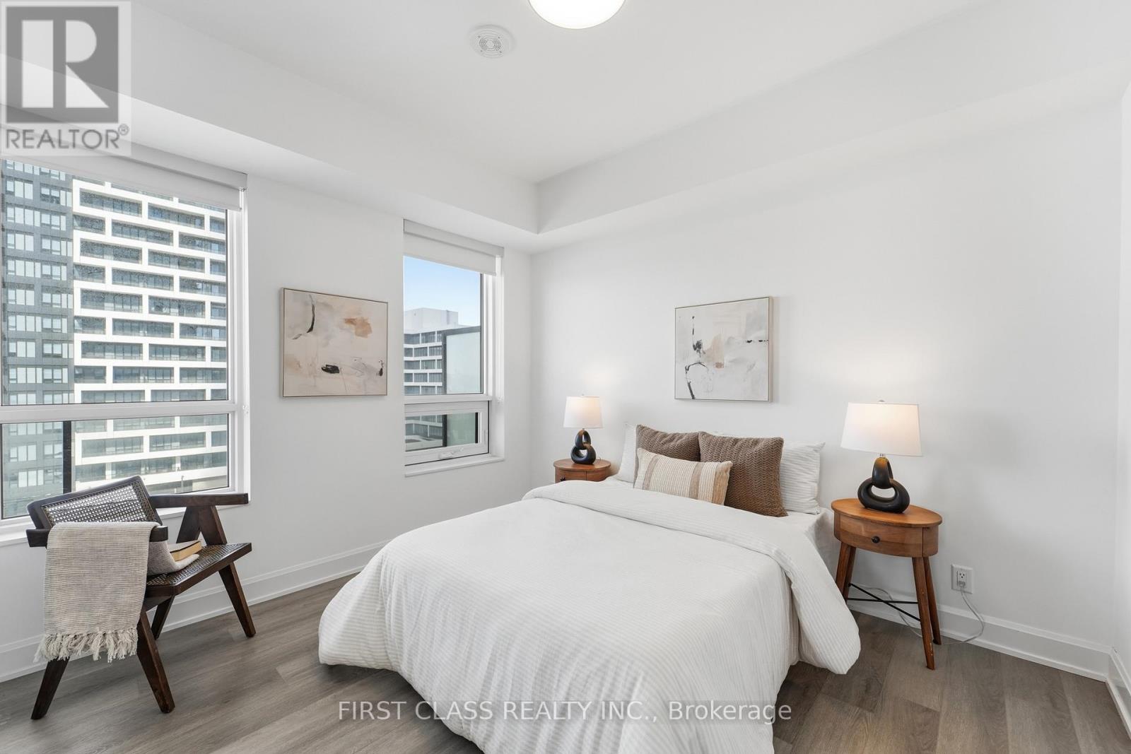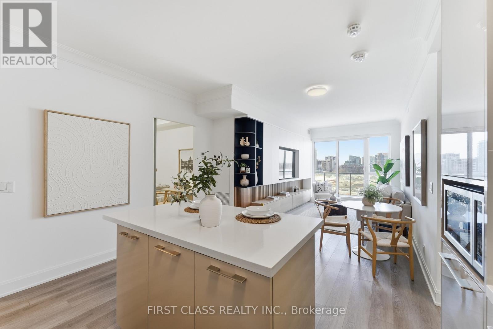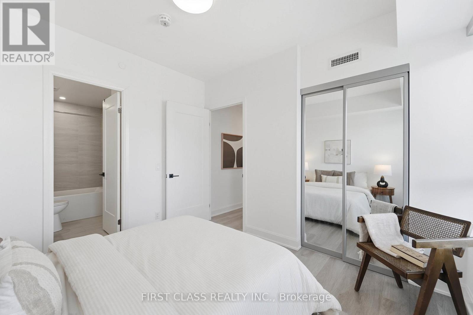 Experience refined living in this exceptional 1,139 sq. ft. 2-bedroom + den residence at Riverview Condos - bright, spacious, and exceptionally well laid out. Enjoy floor-to-ceiling windows, soaring 9' ceilings, and a generous 334 sq. ft. west-facing wraparound balcony plus two parking spaces - a rare and valuable inclusion in this building. The modern chef's kitchen boasts a quartz island, premium JennAir and Fisher & Paykel appliances, and sleek two-tone cabinetry. Highlights include the sought-after two ensuite layout - both primary bedrooms feature their own private 3-piece bathrooms for superior privacy and convenience. The fully enclosed den, complete with French doors and a closet, functions perfectly as a true third bedroom or a dedicated quiet home office. Thoughtful upgrades include crown moulding, designer roller shades, and upscale fixtures throughout. Low condo fees cover heat, AC, and Rogers internet. Enjoy top-tier amenities: 24/7 concierge, smart parcel system, fitness centre, business lounge, rooftop BBQ terrace, and more. Located in the highly ranked Unionville High School catchment, steps to Whole Foods, LCBO, Downtown Markham, the GO Station, and major highways. (id:4555)
