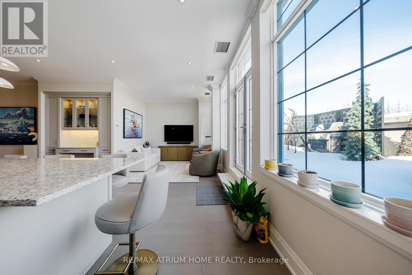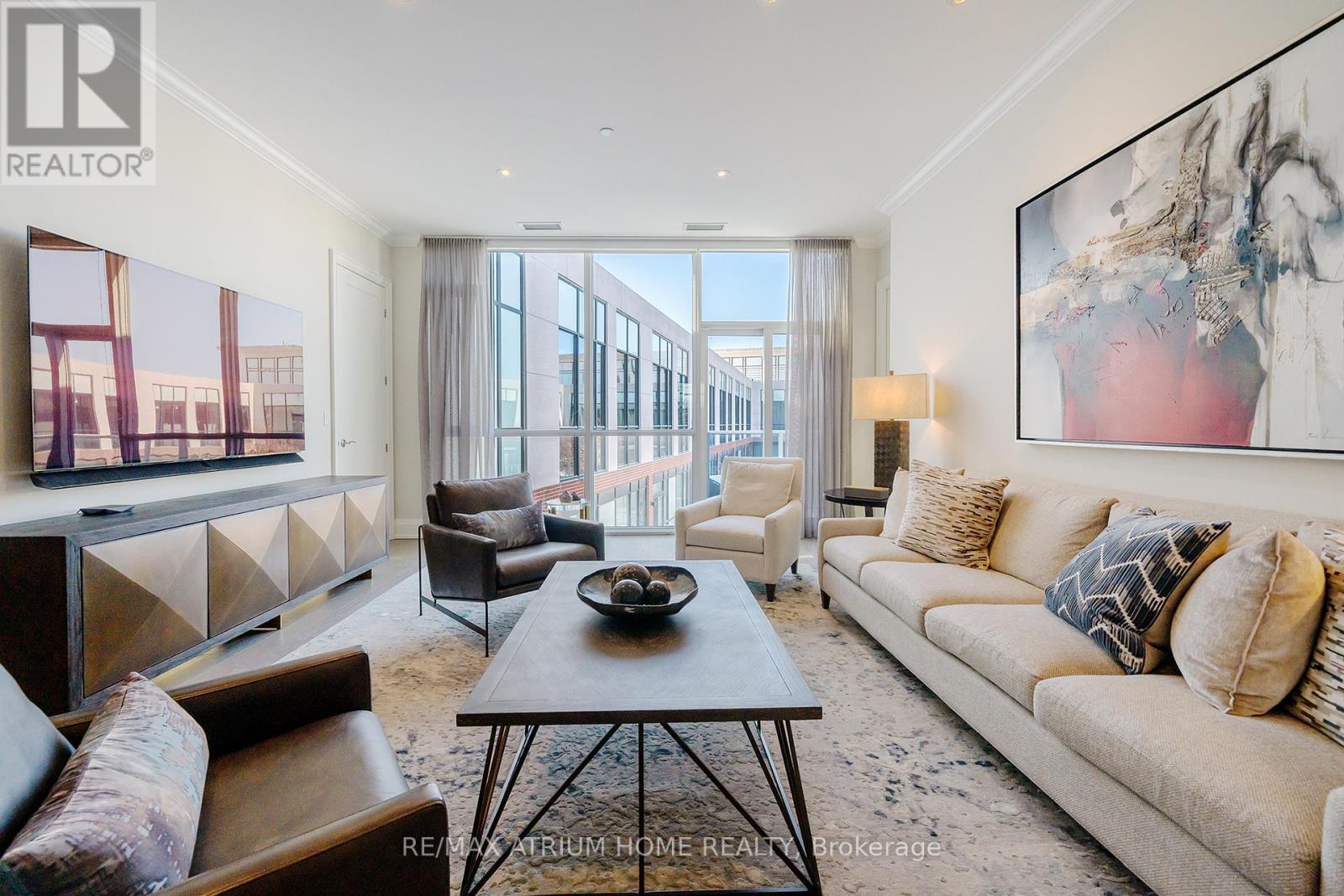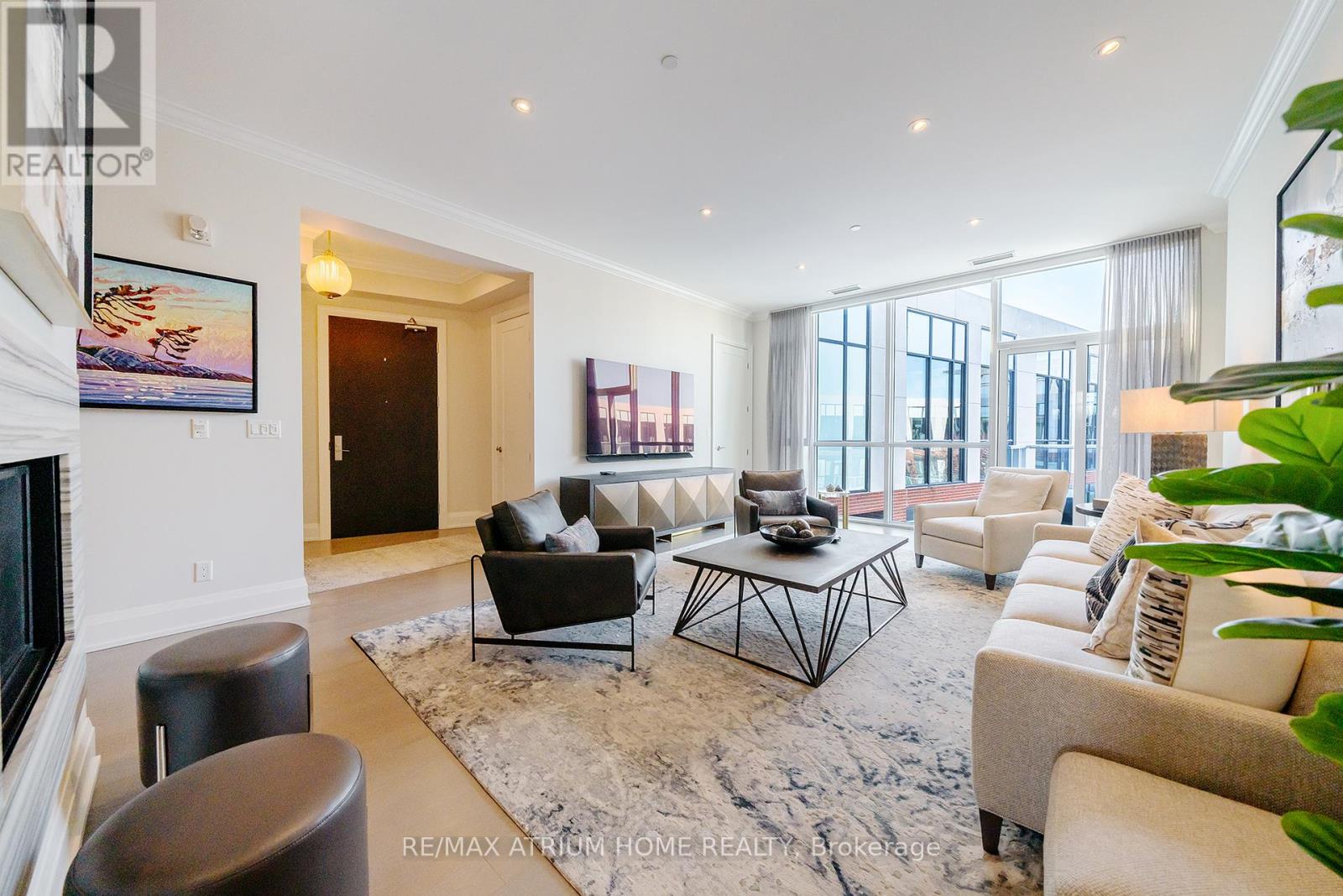 A rare opportunity to own a luxury penthouse at The Varley, offering an exceptional and generously designed layout of 2,471 sq. ft- A truly unique find in the sought-after boutique community and a perfect place to call home. With desirable east and west exposures, the suite enjoys natural light throughout the day and beautiful sunset views in the evening. Inside, the spacious layout offers two well-appointed bedrooms, each with its own en-suite and walk-in closet, a third bedroom thoughtfully transformed into a den with a walk-in closet, and a separate family room adjacent to the kitchen that can easily function as an additional lounge or workspace. A sophisticated two-way fireplace elegantly separates the living and dining rooms, adding warmth and architectural presence to the main entertaining space. The impressive chef-inspired kitchen is just stunning, showcasing built-in Miele appliances, 55" paneled built-in double door fridge, a sleek Miele induction cooktop, generous cabinetry, and a wide island that comfortably seats 4-5 people, perfect for both everyday living and hosting. The den is further elevated by a georgeous 60" built-in Sub-Zero wine cooler with double glass doors. The home features both a private balcony facing the central garden and a quiet, private terrace, thoughtfully designed for refined outdoor living with lifetime high-end hardwood terrace tiles, fully retractable awnings, and a Weber Genesis II grill, creating the perfect setting for entertaining or relaxing outdoors. Additional features include two side-by-side parkings and two locker units. Residents enjoy 24-hour concierge, fitness centre, outdoor BBQ area, party room, and abundant visitor parking, all just steps from Main Street Unionville, scenic Toogood Pond, parks, trails, cafés, restaurants, and top-ranking schools-offering an exceptional lifestyle in one of Unionville's most desirable boutique residences. (id:4555)