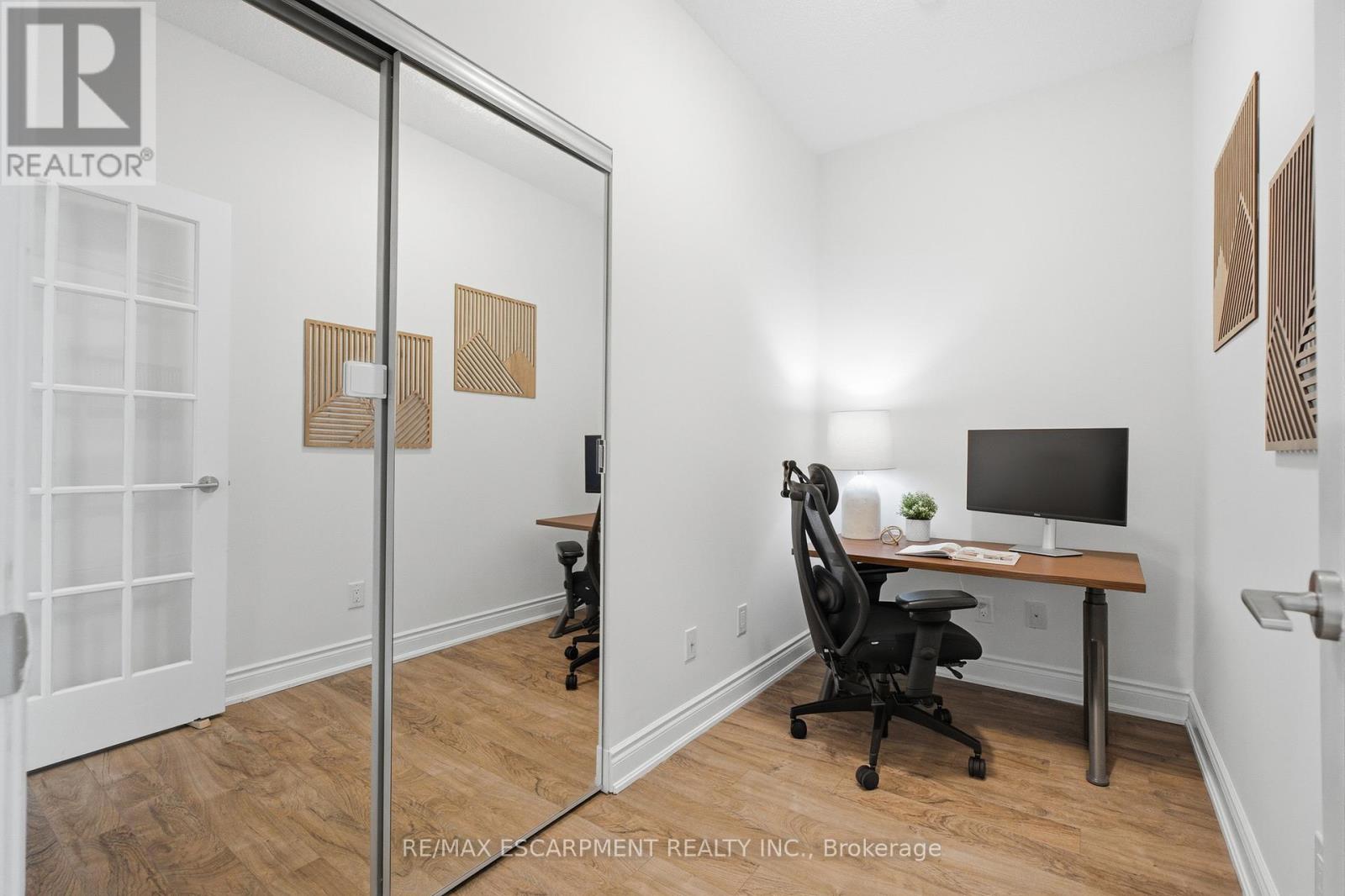 Experience upscale living in this stunning 1+1 bedroom condo facing south with an unobstructed view of the Toronto Skyline. Located in a prestigious luxury building Eden park 2.Spacious Layout, 647 sq.f. plus 50 sq.f balcony. Enjoy the generous 9 ft ceilings that enhance the open feel.Modern Kitchen. The stylish kitchen boasts an island, perfect for meal prep and entertaining, along with high-end appliances.Den with French Doors, this versatile space can serve as a home office or guest room, providing privacy and elegance. Large primary bedroom with, double closet and large window.Private Balcony, step outside to relax and take in the beautiful unobstructed view of the Toronto skyline.Concierge 24hrs a day, a gym and indoor pool to recharge, and a party room and media lounge.Plus, visitor parking. Commuting with quick access to major highways and public transit.Steps from restaurants, shops, and vibrant city energy. One parking spot is included plus locker for extra storage. (id:4555)