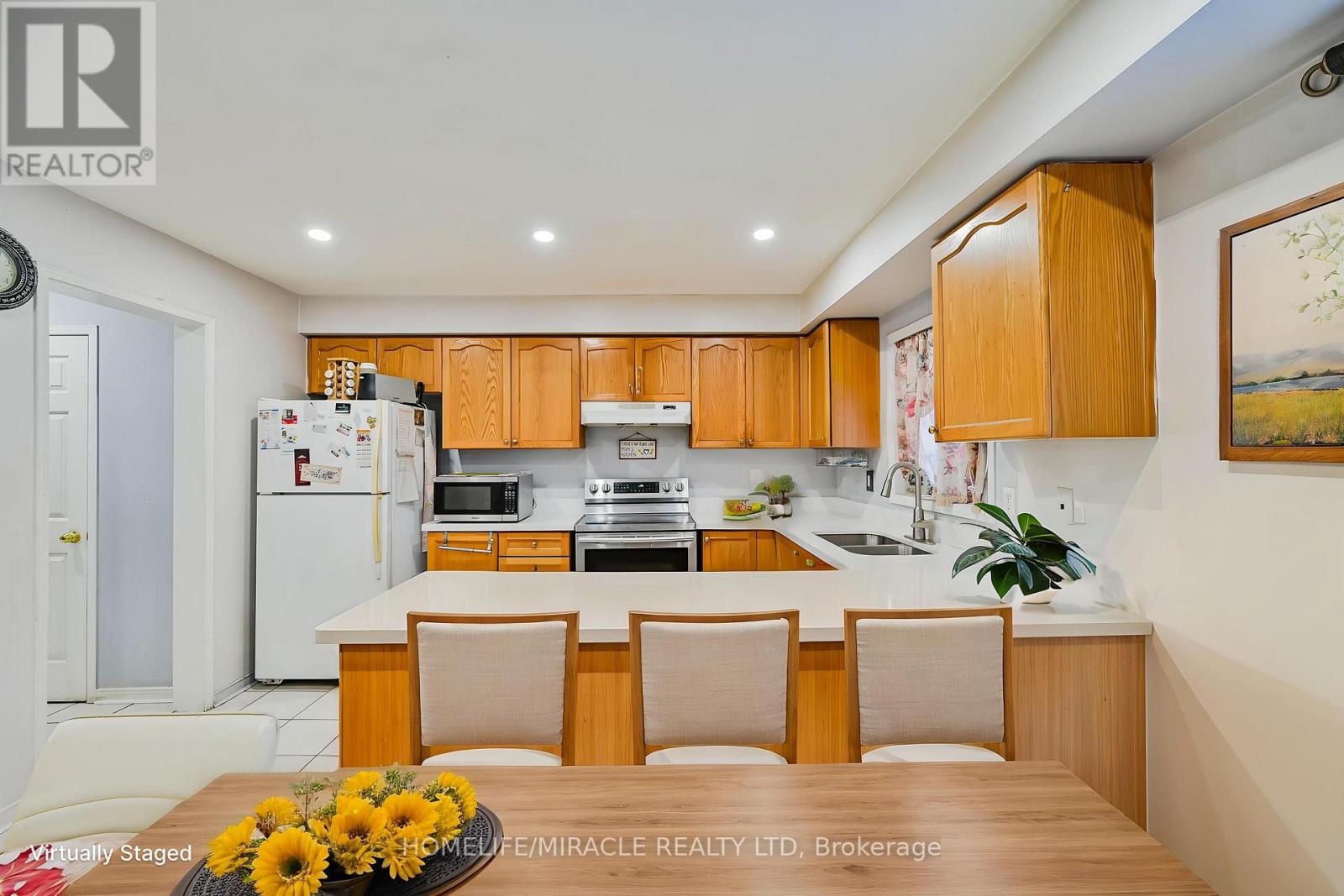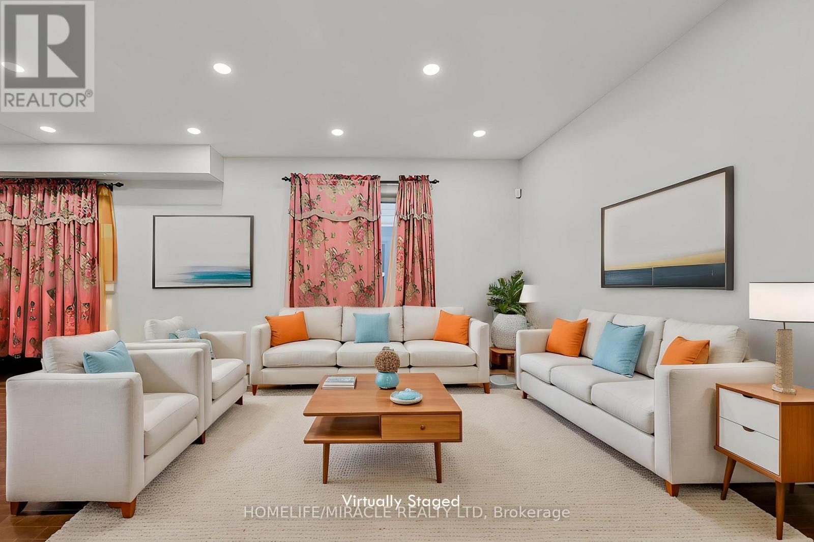 Convenient Great Location!!!Elegant End-Unit Freehold Townhome in Prime Cedarwood Location! Bright and spacious 3+2 bedroom, 3.5-bath home offering the feel of a semi-detached property. This well-maintained 2-storey features a functional open-concept layout with hardwood floors, covered porch area, modern lighting, and pot lights throughout the main living areas. Convenient second-floor laundry and generously sized bedrooms. The finished basement adds excellent living space with a large rec room, two additional bedrooms, and a full bathroom-ideal for extended family or guests. Enjoy the convenience of a single-car garage and private driveway. Located in the highly desirable Cedarwood community, just minutes to shopping (Costco, Walmart, Home Depot, Rona), schools, parks, golf course, community center, and quick access to Hwy 401 & 407. Move-in ready and a fantastic opportunity in one of Markham's most sought-after neighborhoods! Improvements: Dishwasher (2025), Quartz Countertop (2025), New Furnace under warranty (2023), Garage Door (2022), Side Alley (2021), Back lawn (2021), Attic (2022), Drive way (2020), Roof (2020), Front Yard (2020), Washer (2019), Pot lights (2019), Porch (2018), AC (2015). (id:4555)