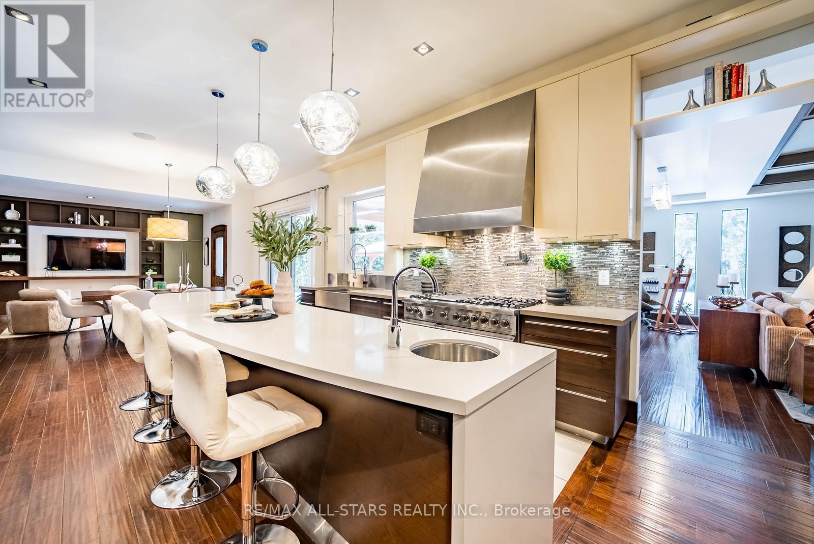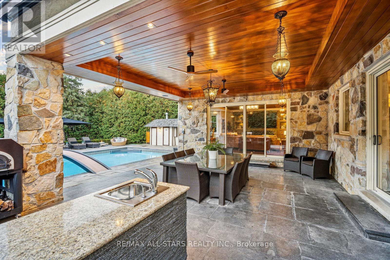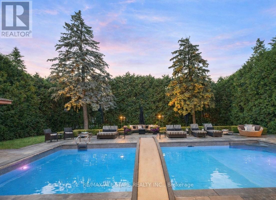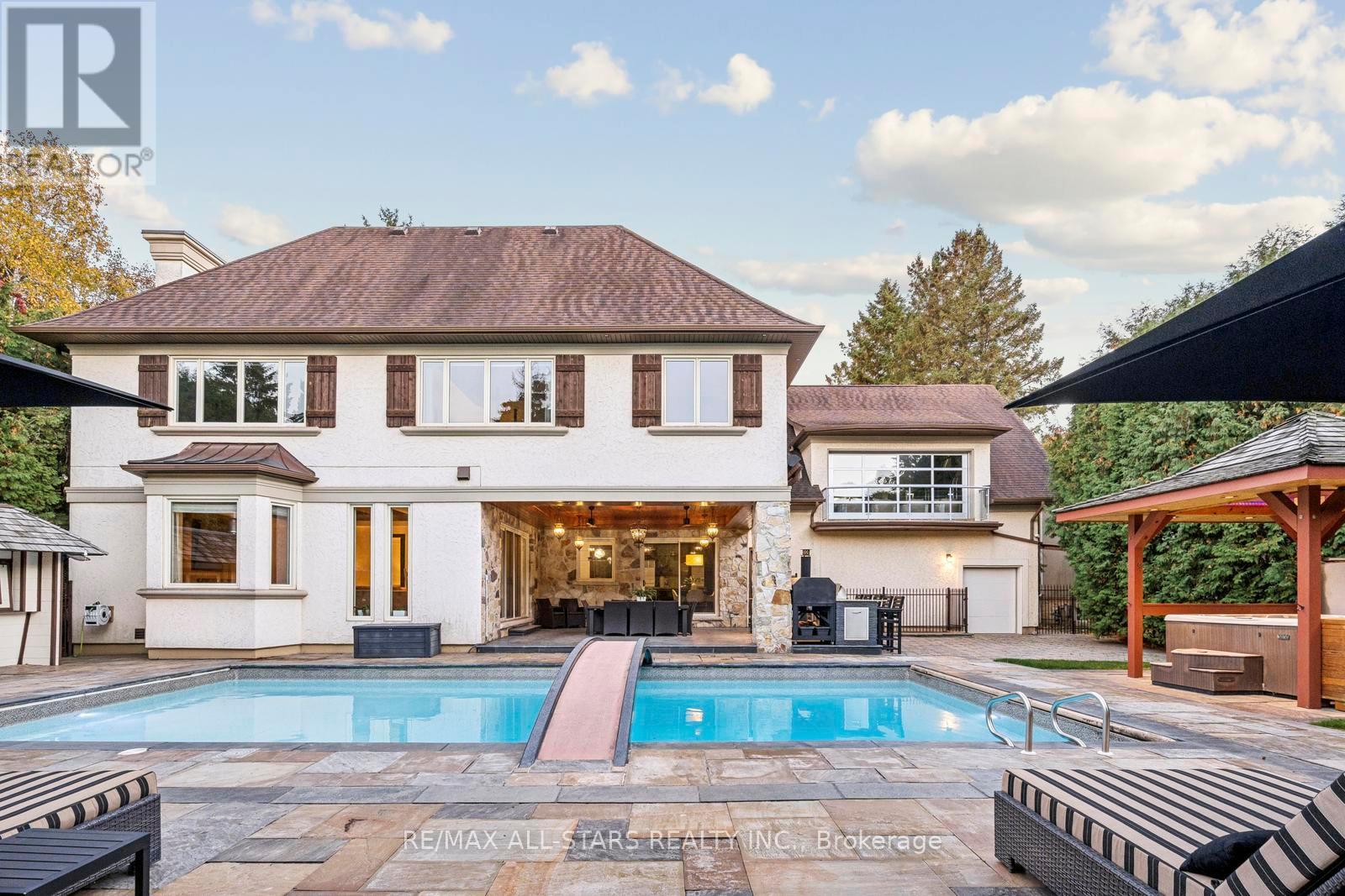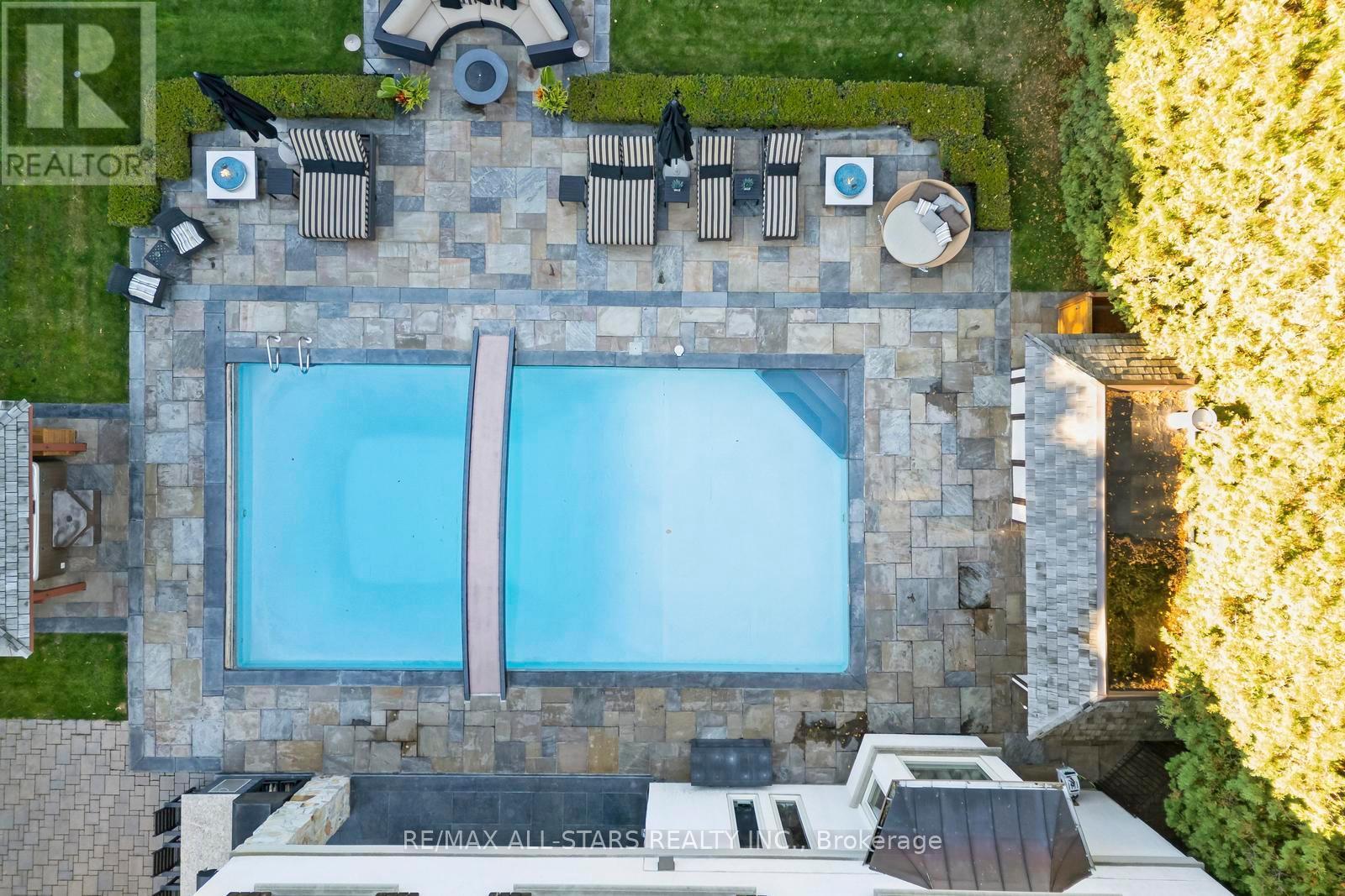 A rare opportunity on one of Unionville's most prestigious streets, 32 Wembley Avenue is an exceptional custom residence where timeless architecture and resort-inspired living come together on a spectacular 100 x 232 ft private lot. Just steps from the scenic trails of TooGood Pond, cafés, boutiques, and restaurants of historic Main Street Unionville. This remarkable home offers an extraordinary lifestyle in one of Markham's most sought-after communities. Inspired by classic French-Chateau architecture, the striking exterior features natural stone and stucco, copper accents, artisan-crafted oak and walnut doors, complemented by a three-car garage and professionally landscaped grounds. Inside, a dramatic cathedral foyer welcomes you to over 6,100 sqft of living space above grade, plus a finished lower level. Elegant principal rooms with soaring ceilings and expansive windows fill the home with natural light. The gourmet kitchen and adjoining family room overlook the backyard creating an inviting space ideal for everyday living and entertaining.The home offers 5+1 bedrooms & 8 bathrooms, including a luxurious primary suite with vaulted beamed ceilings and a beautifully updated ensuite. A spectacular entertainment loft crowns the home with 16-ft vaulted ceilings, barn-wood accents, retractable glass garage door, glass balcony, DJ booth, and custom wet bar. The backyard oasis features a resort-style pool with walk-over arch, limestone waterfall, covered terrace with cedar ceilings, outdoor kitchenette and bar, gazebo with jacuzzi, cabana bathroom, and outdoor shower, creating an exceptional setting for outdoor relaxation and entertaining.Located minutes from William Berczy PS, Victoria Square PS (French Immersion), Unionville High School, & Pierre Elliott Trudeau High School, as well as parks, shopping, and major commuter routes. Feng Shui approved by Master Paul Ng. 3 Money Centres. Also Controlling power for learning centres. Great energy for Health and relations. (id:4555)