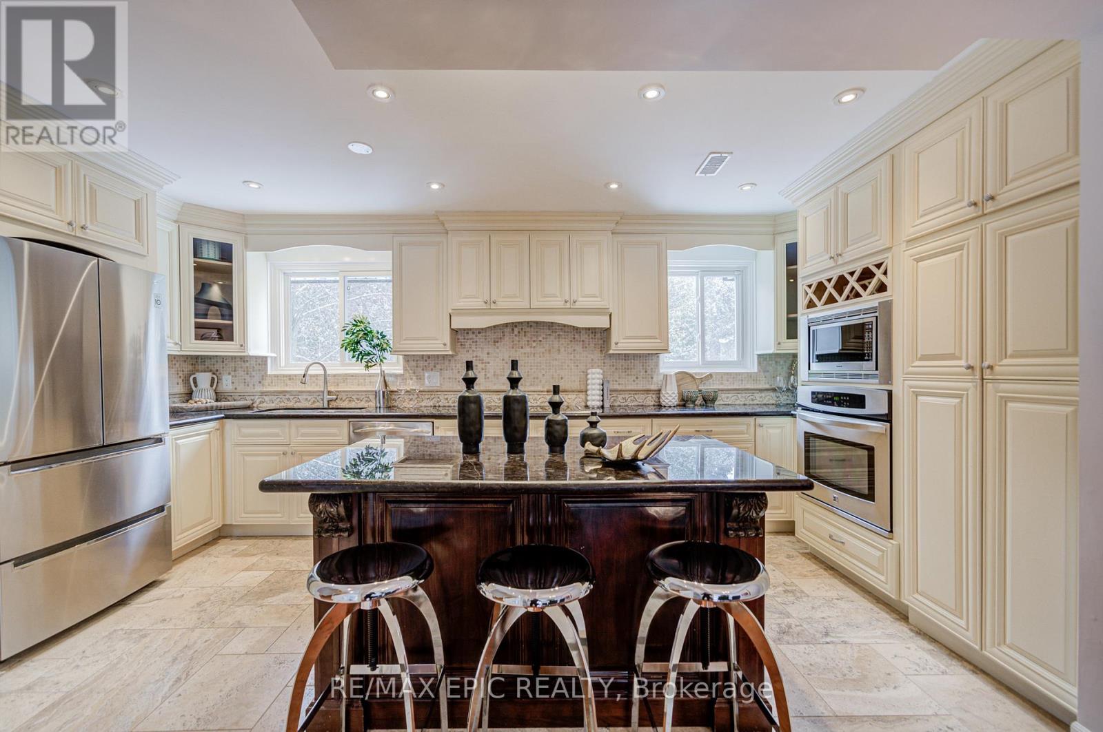 Incredible End-unit Townhouse Nestled on a Quiet, Family-oriented Cul-de-sac in one of Thornhill's Most Sought-after Communities. Meticulously Renovated Throughout, this Home Offers a Generous Living Room Featuring a Gas Fireplace and Soaring 11-foot Cathedral Ceilings. Oversized Windows Overlook the Peaceful Rear Gardens, Filling the Space with an Abundance of Natural Light. The Classic and Elegant Kitchen is Equipped with Granite Countertops and a Center Island, Stainless Steel Appliances, a Built-in Oven and Microwave, and Natural Stone Flooring. Upstairs Offers Three Spacious Bedrooms and two Beautifully Modernized Bathrooms, Checking All the Boxes for Comfortable Family Living. The Finished Basement Includes a Fourth Bedroom, Ideal for a Large or Growing Family. A Major HVAC Upgrade Ensures Enhanced Comfort year-round. Enjoy Two Parking Spaces and a Prime Location just Steps from Parks, Transit, and Shopping, with Minutes to the Future Yonge North Subway Extension. Well known Henderson P.S. Gifted Program, Top-rated Thornhill Secondary and St Robert School Zone. A Must See! (id:4555)