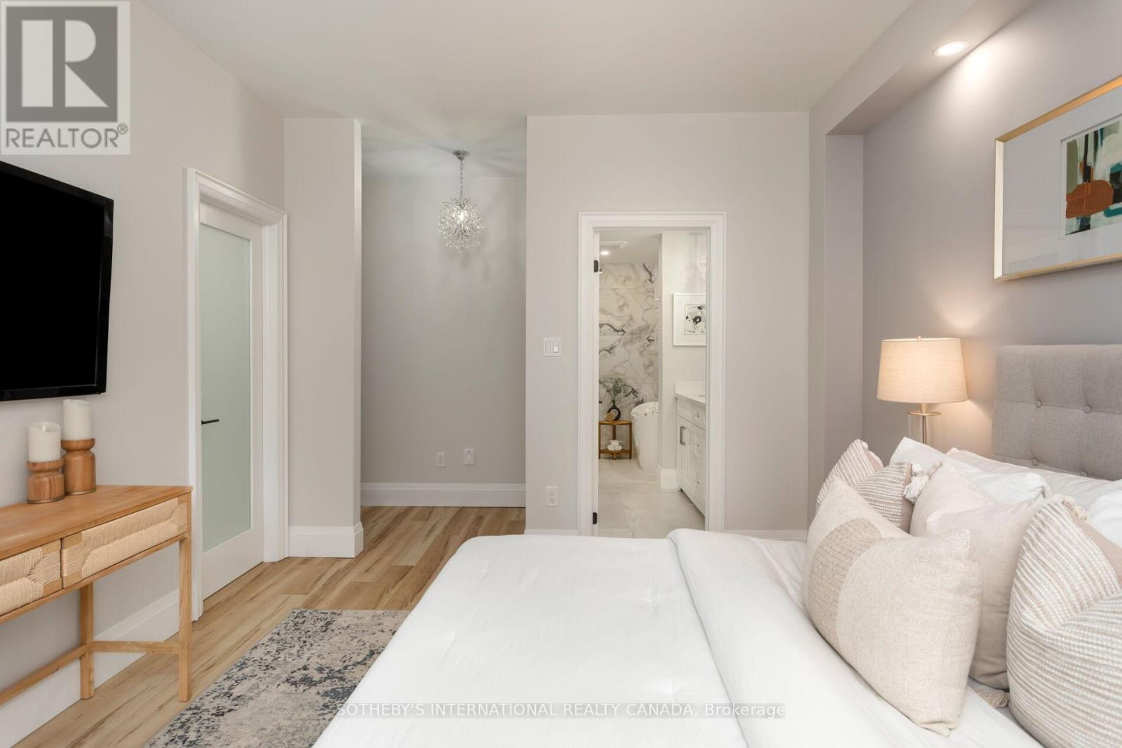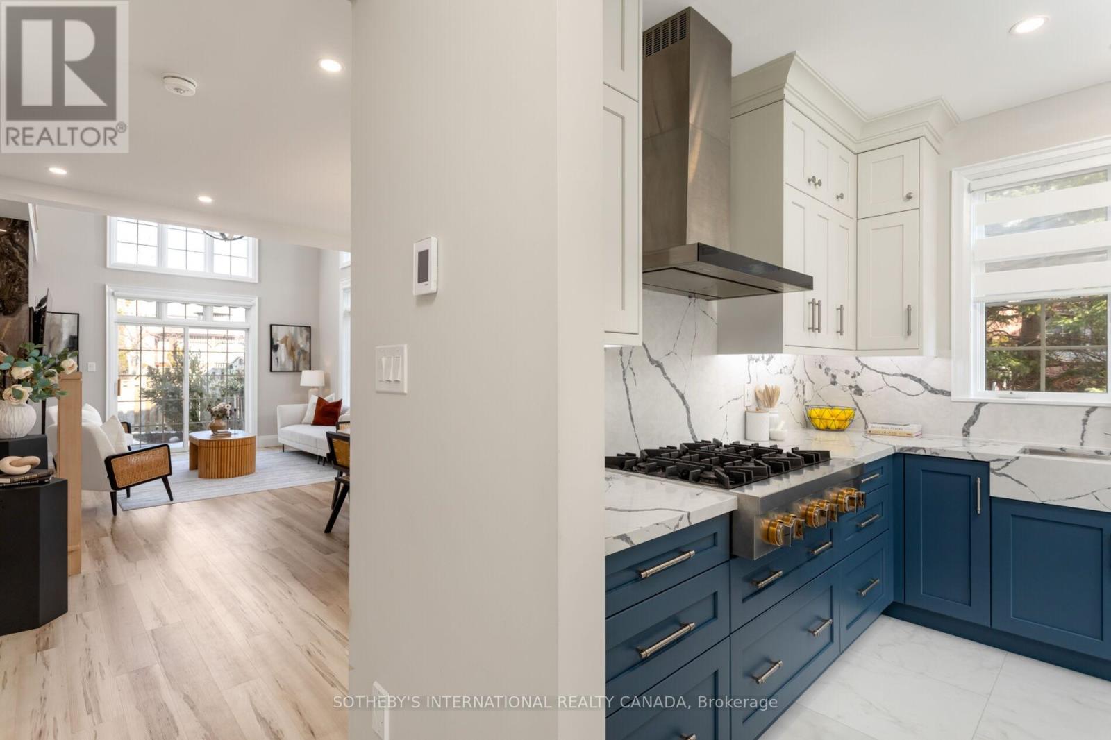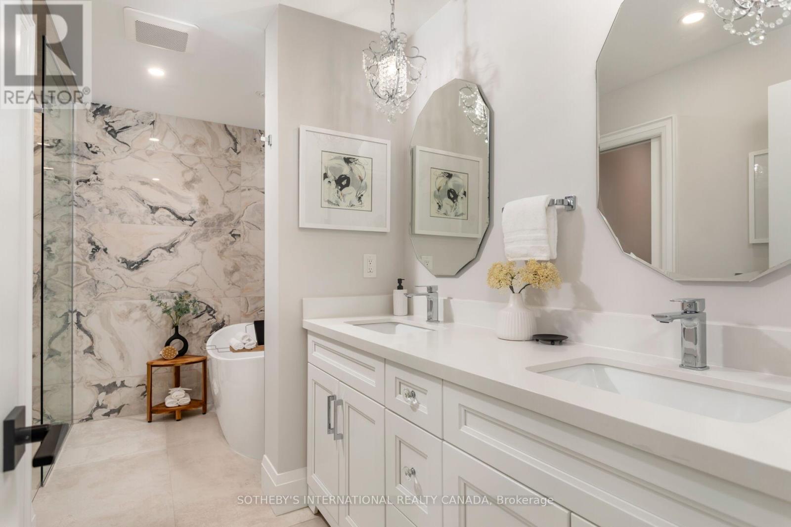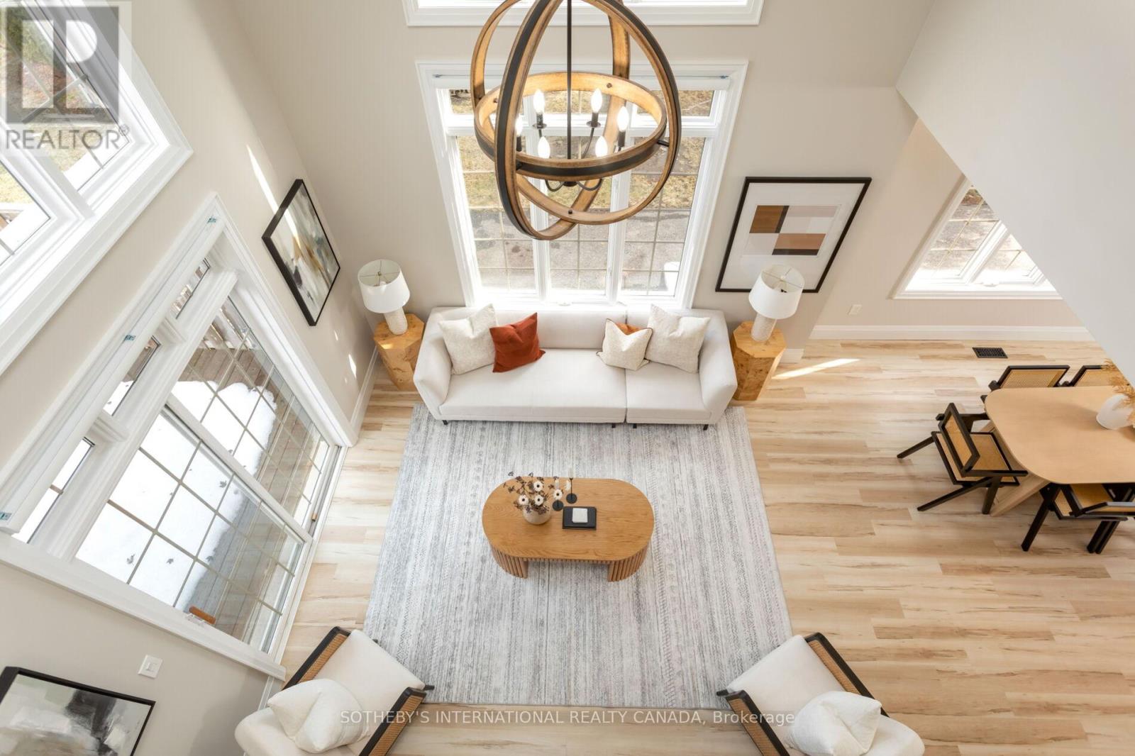 Welcome to Swan Lake Village, Markham's premier gated community - where nature, security, and refined living come together. This rare end-unit 2+1 bedroom, 4 bathroom bungaloft offers over 2,000 sq. ft. of exquisitely renovated space, reimagined with hundreds of thousands invested in top-tier finishes and craftsmanship. Designed by the owners for themselves, every detail reflects thoughtful luxury.The main floor features a stunning custom kitchen with heated floors, quartz surfaces, a 6-burner gas cooktop, built-in oven and microwave, and a charming breakfast area with bespoke seating and storage. The sun-filled great room impresses with soaring ceilings, walls of windows, and a remarkable custom three-sided marble fireplace, all opening to a private backyard oasis with refreshed stone patio, deck, electric awning, BBQ hookup, and serene views of the Butterfly Garden and gazebo. The main-floor primary suite offers a spa-inspired ensuite with heated floors and a custom walk-in closet, complemented by a stylish powder room, generous foyer closet, and convenient laundry area. A bright loft level provides versatility as a home office, lounge, or second bedroom, complete with custom built-ins and its own heated-floor ensuite. The fully finished lower level adds exceptional living space with a bedroom, full bath, second laundry area, and redesigned staircase for improved flow. A 1.5-car epoxy-finished garage with interior access and a private two-car driveway enhance everyday convenience, with ample visitor parking nearby. Residents enjoy exclusive access to Swan Lake Village's resort-style amenities including indoor and outdoor pools, tennis and pickleball, bocce, billiards, shuffleboard, walking trails, and a vibrant clubhouse. Perfect for those seeking luxury, space, and a maintenance-free lifestyle, this is a truly one-of-a-kind home in an exceptional community. (id:4555)