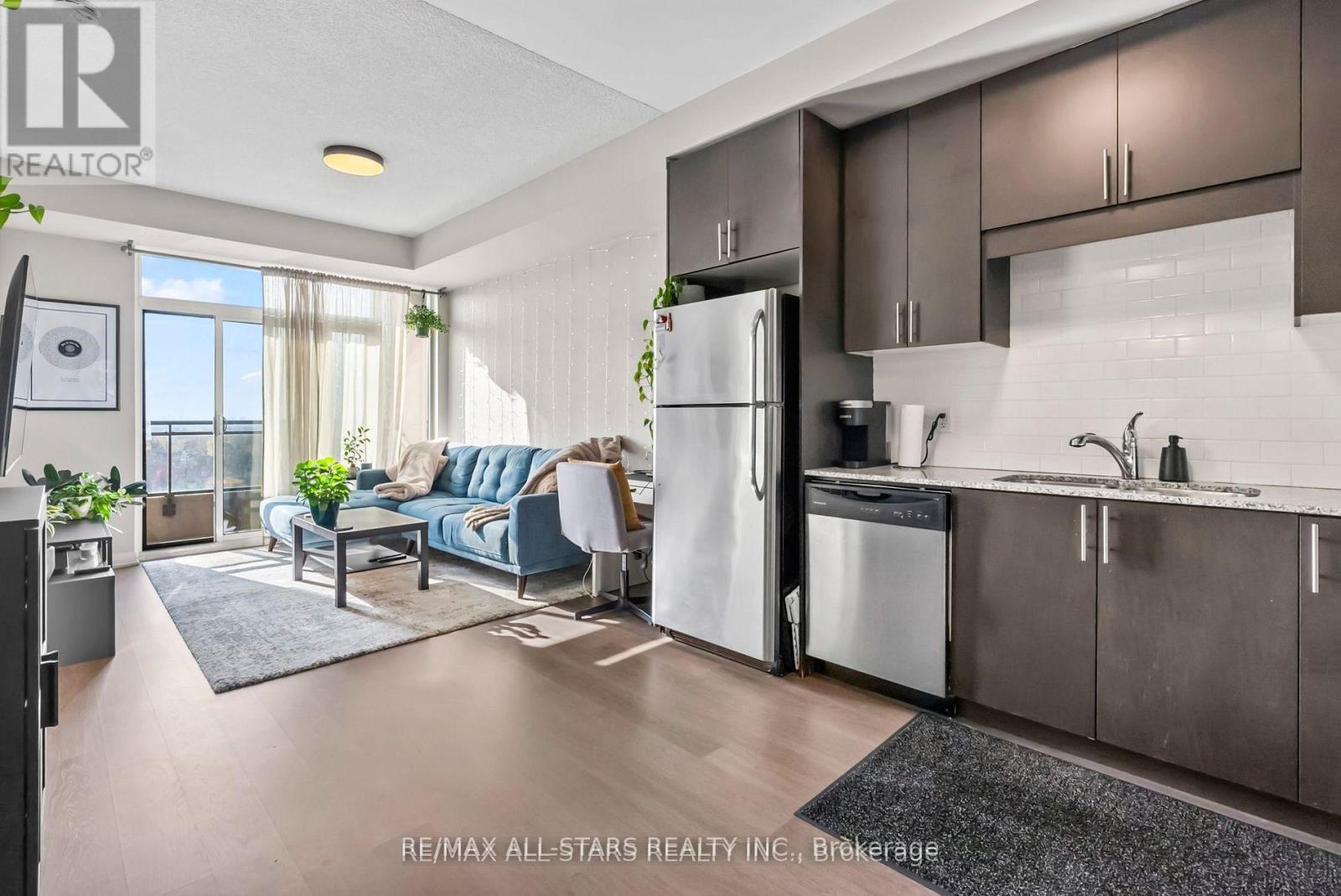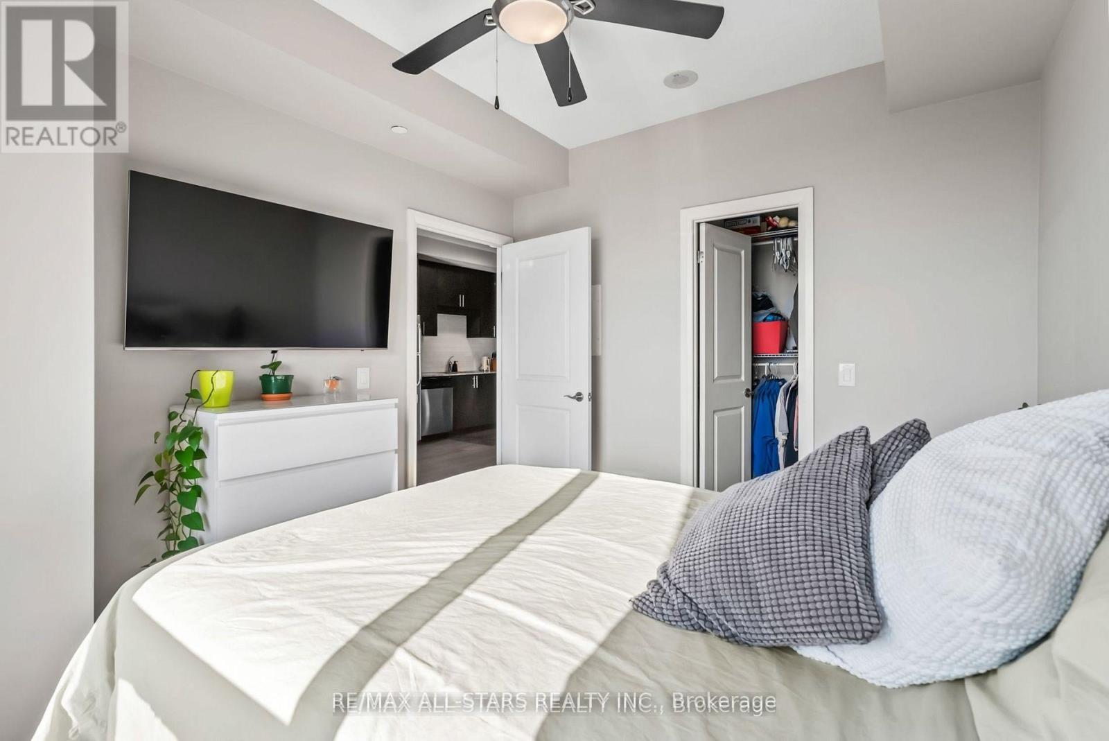Amazing South Exposure floods this unit in Greenpark Upper Village with unobstructed views. Walk into the open concept unit with 9' ceilings and laminate floors. The Primary bedroom is bright with oversized window that has comes with closet organizers. The kitchen has 41" upper cabinets with granite counters, undermount sink and backsplash. The walkout to the balcony from the living room has beautiful unobstructed views of trees and a pond. Excellent location for Mount Joy GO Train Station, shopping, and easy highway access. 24 hr Concierge service, gym, recreation/meeting room and guest suites. (id:4555)