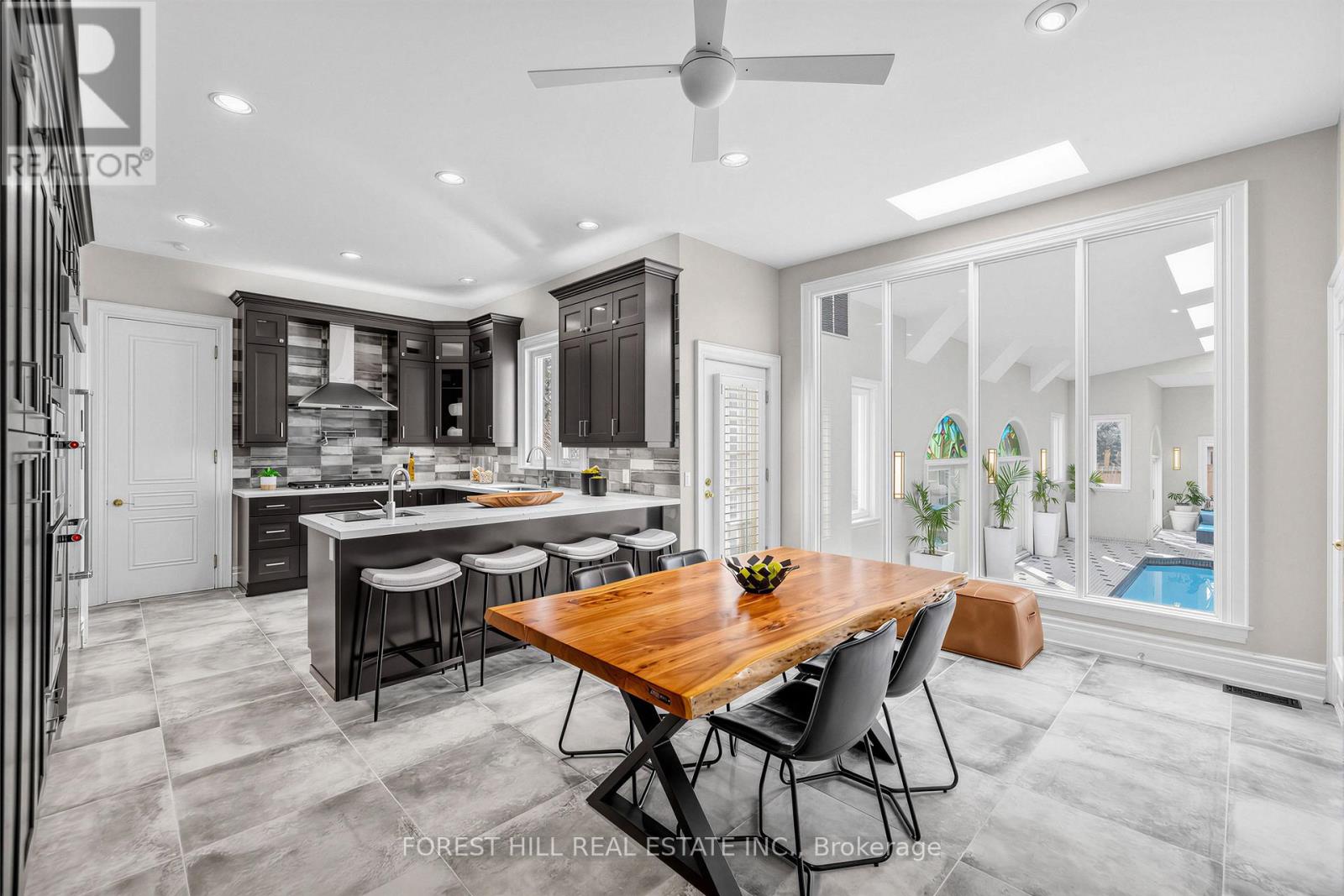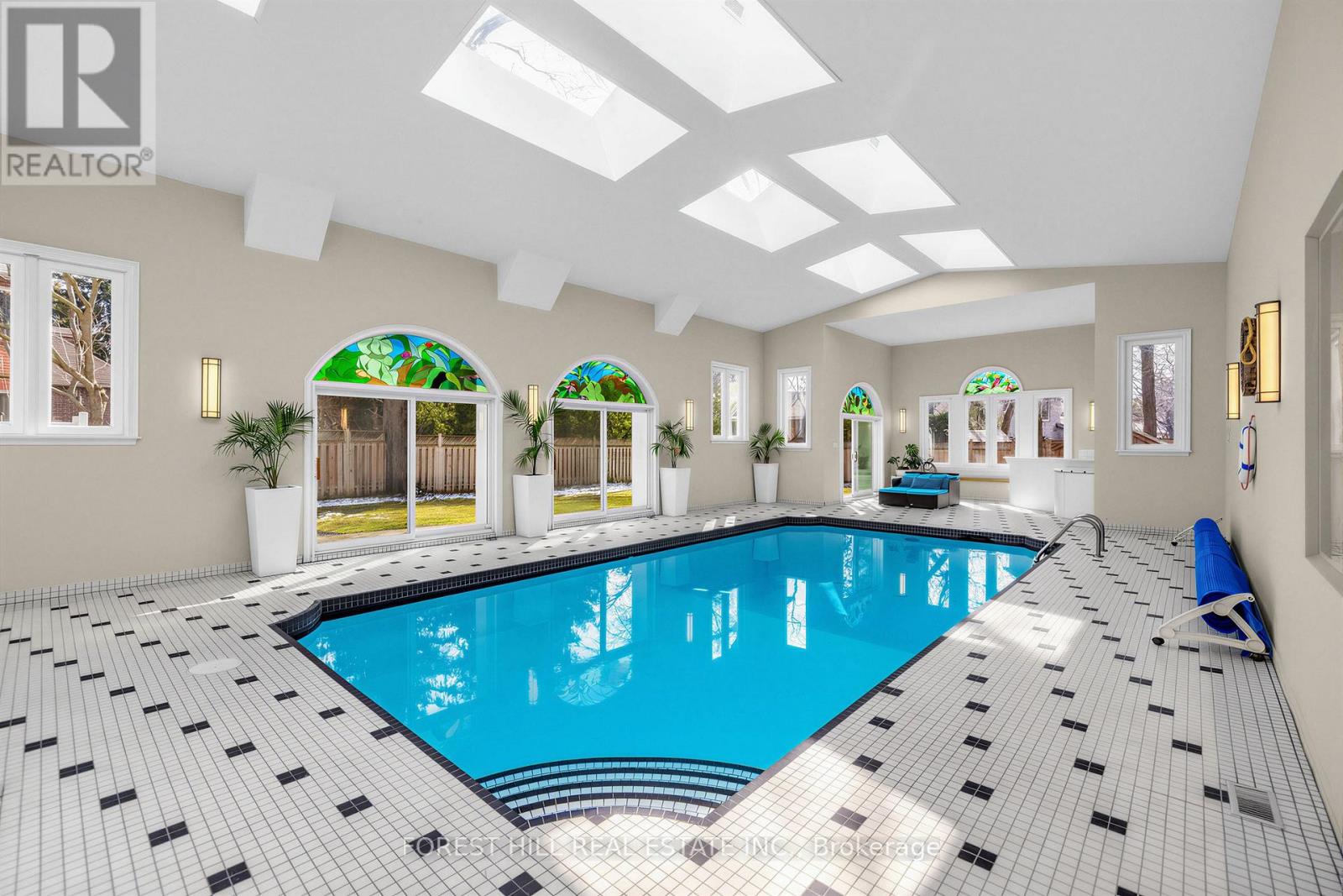 **Welcome to this exceptional, and B-E-A-U-T-I-F-U-L and fully upgrade and update(SPENT $$$$) residence set on a rare/premium land 70 ft x 214 ft -- UNIQUE/Premium land, offering 4134 sf. ft(main and 2nd floors) and over 6000 sq.ft of luxurious living space including a basement with a ***STUNNING/unique and LUXURIOUS --- INDOOR SWIMMING POOL WITH LOUNGE AREA, and CATHEDRAL CEILINGS + MULTI SKYLIGHTS(Entertainer's Paradise)***This custom-built residence was designed with timeless elegance and functionality in mind. Soaring ceilings draw your eye upward in the foyer, while the circular stairwell shows in timeless elegance. The main floor office provides a refined retreat and sophistication. The expansive living and dining spaces ideal for both your family's lifestyle living and upscale entertaining. The up-to-date, dream kitchen is a culinary dream, featuring custom cabinetry, high-end appliance, and an open concept layout with a breakfast areas. The cozy family room provides perfect space for your relaxation and comfort, and flowing effortlessly onto an entertaining INDOOR SWIMMING POOL areas(LUXURIOUS PRIVATE RETREATS). The upper level offers a serene primary suite with a spa-inspired new ensuite(2025), and a private balcony overlooking deep-greenery backyard. The additional bedrooms feature a private ensuite and semi-private ensuite, ensuring ultimate privacy and comfort. The fully finished basement extends your family's social life, a gym and theatre room, stunning recreation room. Offering 4-season uses UNIQUE/SPECTACULAR **INDOOR SWIMMING POOL** with a lounge area for calm and serenity and relaxation, and vaulted ceilings, multiple skylights(New-2025) ----3Cars Garage, 2Stariwells,New Kitchen(2025),New S-S Appliance(2025),New Hardwood Floor(2025),New Foyer Floor(2025),New Kitchen Floor(2025),New Washrooms(2025),New INDOOR--Pool Equipment(2024) & More!!! (id:4555)