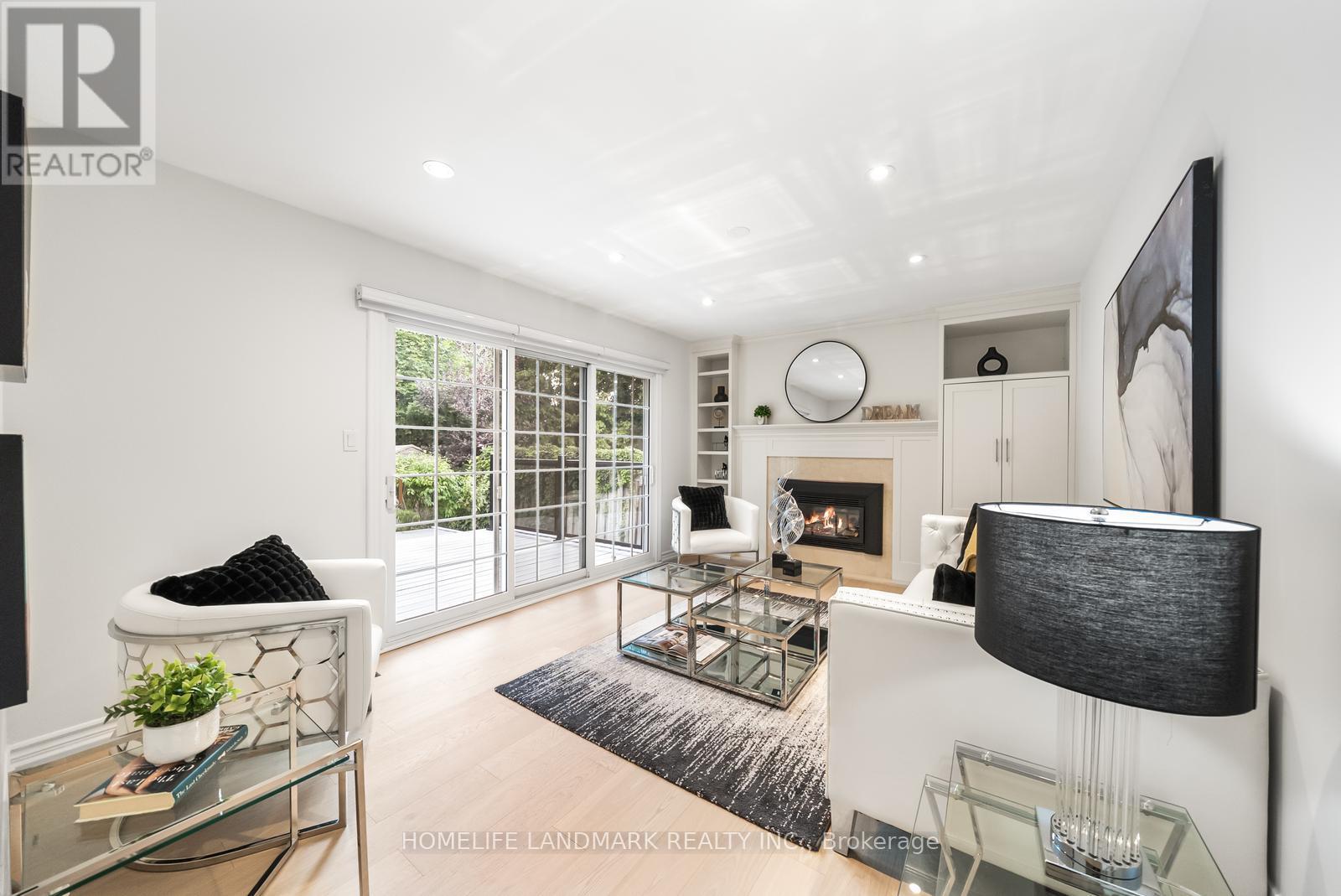 GORGEOUS RENOVATED & MOVE-IN READY 2-Storey Home in Prime Thornhill. Welcome to this stunning SOUTH facing, 55 ft+ width lot, 3+1 bedroom, 4 baths family home, ideally situated on a quiet, child-friendly, tree-lined crescent in Thornhill Royal Orchard. Double-car garage, exceptional curb appeal, thoughtfully renovated, attention to details with premium finishes throughout, the home showcases engineered hardwood flooring on the main and second levels, smooth ceilings, crown moulding, pot lights, and a striking maple staircase with modern glass railing. Main floor open-concept living and dining area featuring a large bay window overlooking the front yard. The gourmet chef's kitchen is a true showpiece, complete with granite countertops, custom backsplash, top-of-the-line appliances, and premium cabinetry. Inviting family room (easily convertible to a 4th bedroom) with a cozy gas fireplace and seamless walk-out to a beautifully landscaped backyard, showcasing a premium composite deck, elegant glass railing, and professional outdoor lighting-an ideal setting for entertaining. Upstairs, the oversized primary retreat offers a spa-inspired 7-piece ensuite and walk-in closets with custom organizers. Originally designed as a 4-bedroom home, it has been converted into a spacious 3-bedroom layout with two full bathrooms on the second floor, maximizing comfort and functionality. The fully finished basement extends the living space with an extra bedroom, a 4-piece bath, built-in media console with surround sound, wet bar with mini fridge and wine cooler, plus a custom built-in desk and bookcase. This is a truly exceptional home, perfectly blend luxury, comfort, and convenience, just minutes to top-ranked schools, GO Transit, future TTC subway, highways, parks, ravines, shopping, and more. Turnkey living at its finest - just move in and enjoy! Newer Roof, A/C (2019), Furnace (2019). (id:4555)