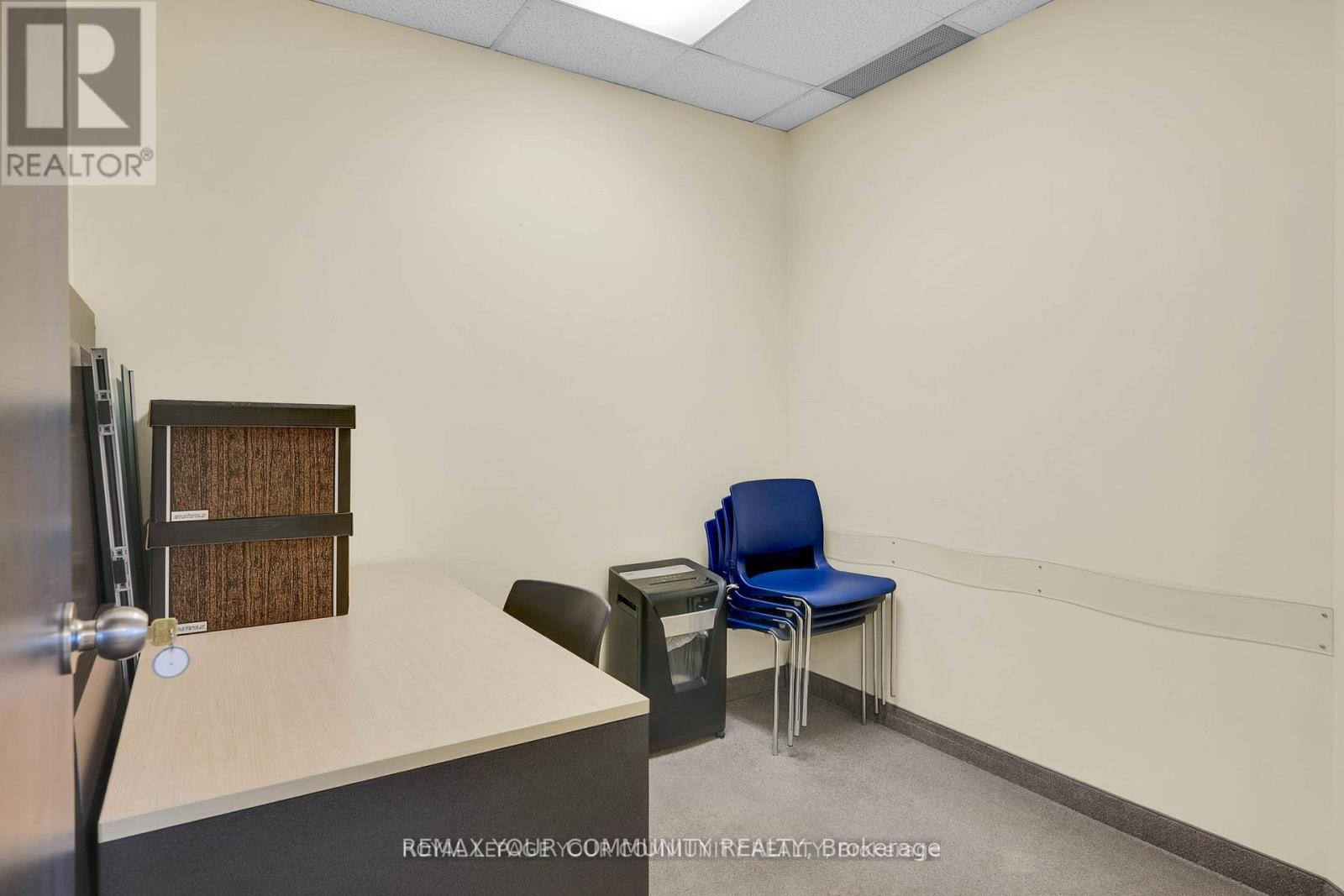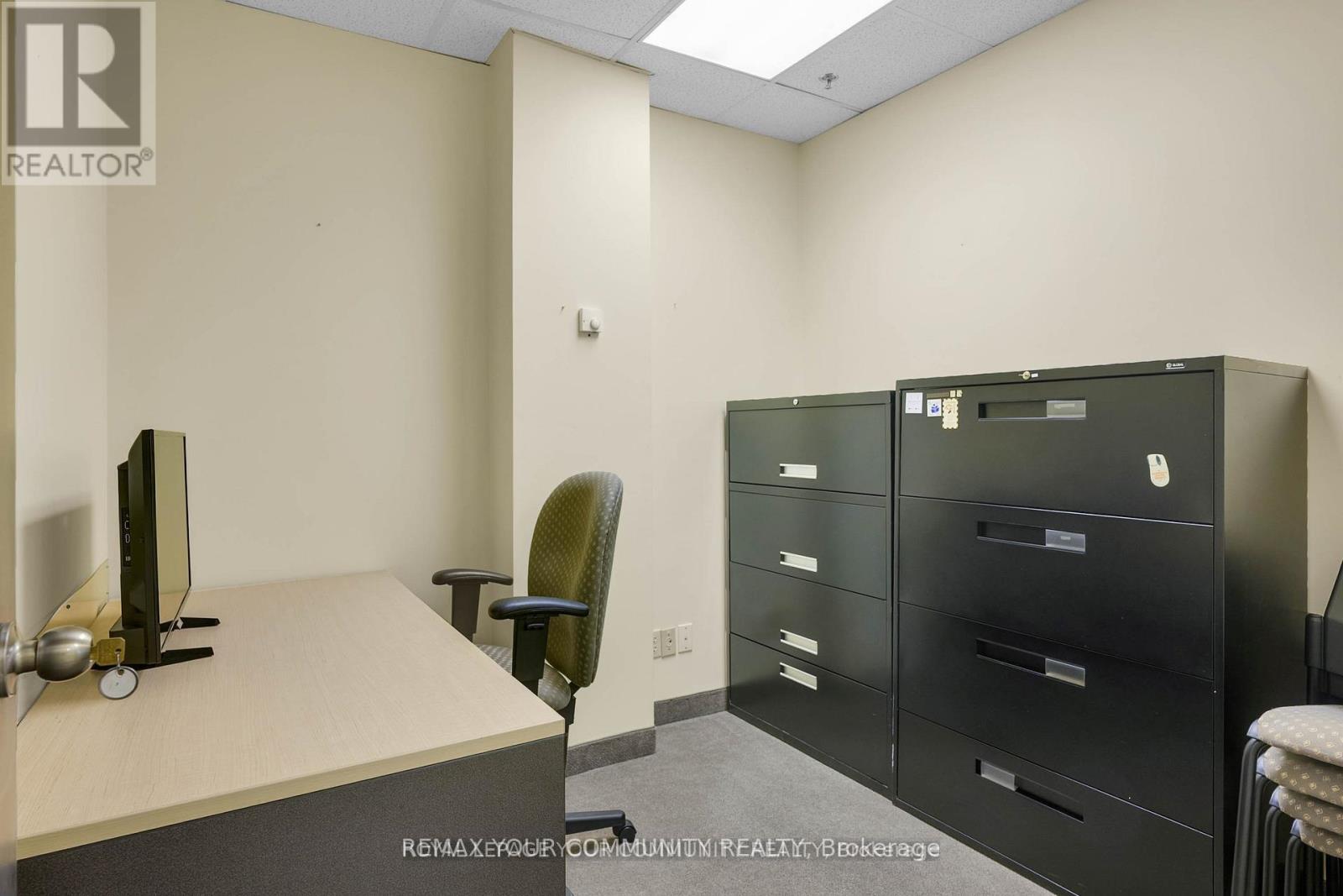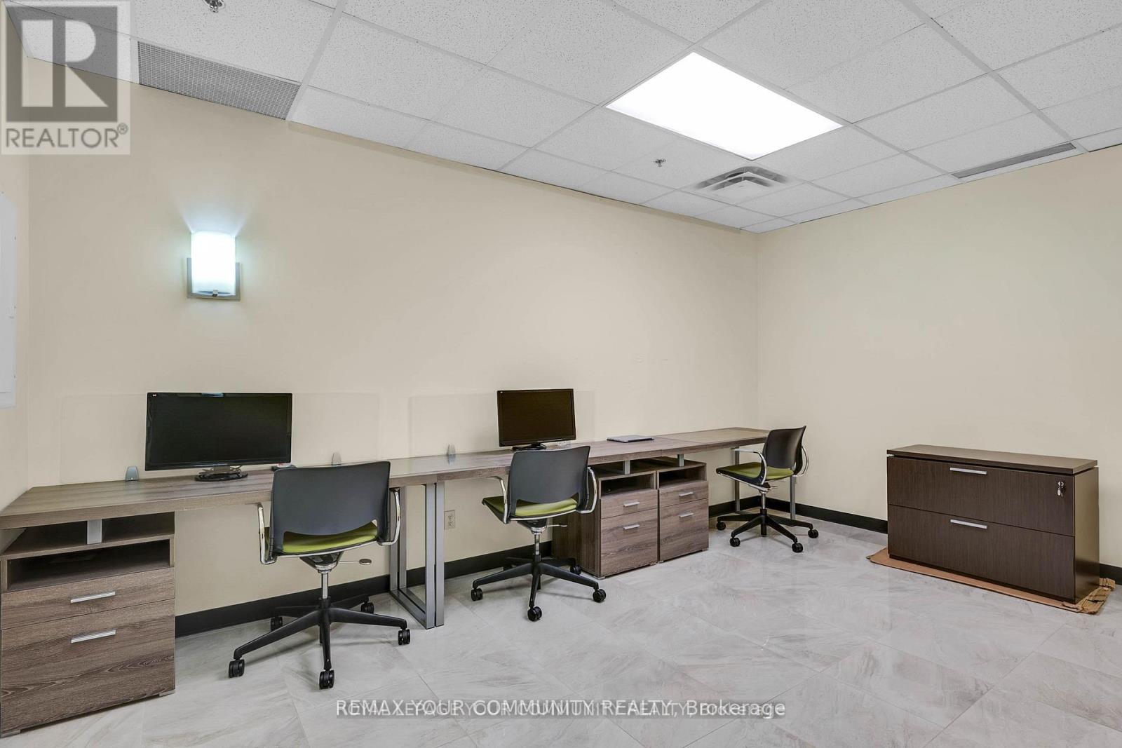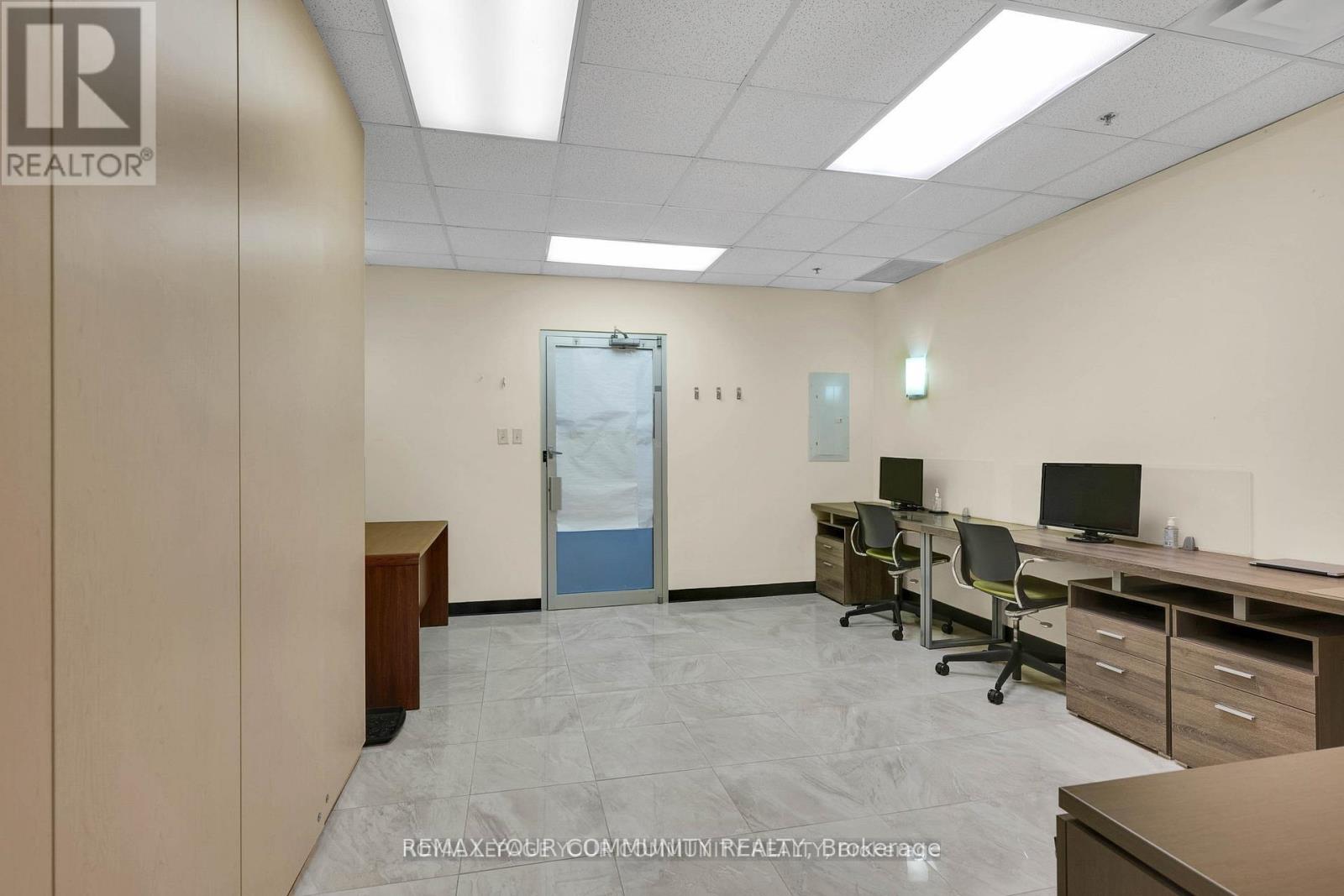 Welcome to a landmark opportunity in one of the areas most prestigious professional office condominiums. From the moment you step inside, the stunning designer atrium entrance sets the stage for your business with a lasting impression of sophistication, success, & professionalism. Located on the penthouse northeast corner, Office Suites 603 & 604 offer an impressive layout designed to inspire productivity & elevate your brand. This premium office space features a spacious great room, multiple private offices, a fully equipped modern boardroom, sleek kitchenette, & utility space every element thoughtfully designed for functionality & style. Floor-to-ceiling windows wrap every room, showcasing unobstructed panoramic views & filling the space with natural light, creating a bright, airy, & motivating work environment. The contemporary furnishings complement the open, modern design, while the abundant natural light enhances both energy & creativity throughout the day. With all major utilities hydro, water, heating, & air conditioning conveniently included in the condo fees, your business can enjoy a truly hassle-free operational experience. Ample on-site parking ensures convenience for both your team & visiting clients. Strategically positioned in a prime industrial and commercial hub & directly adjacent to the rapidly expanding Markham Downtown, this location offers unmatched growth potential. Surrounded by dense residential communities, businesses here benefit from access to a strong labor supply, growing client base, & dynamic local economy. Seamless connectivity to major highways & public transit provides effortless logistics & easy access for clients & staff across the region. This is more than an office space its an opportunity to position your business in a high-profile, modern building designed for todays visionary leaders. Schedule your private tour today & experience how this one-of-a-kind penthouse office can redefine the way you work & showcase your success (id:4555)