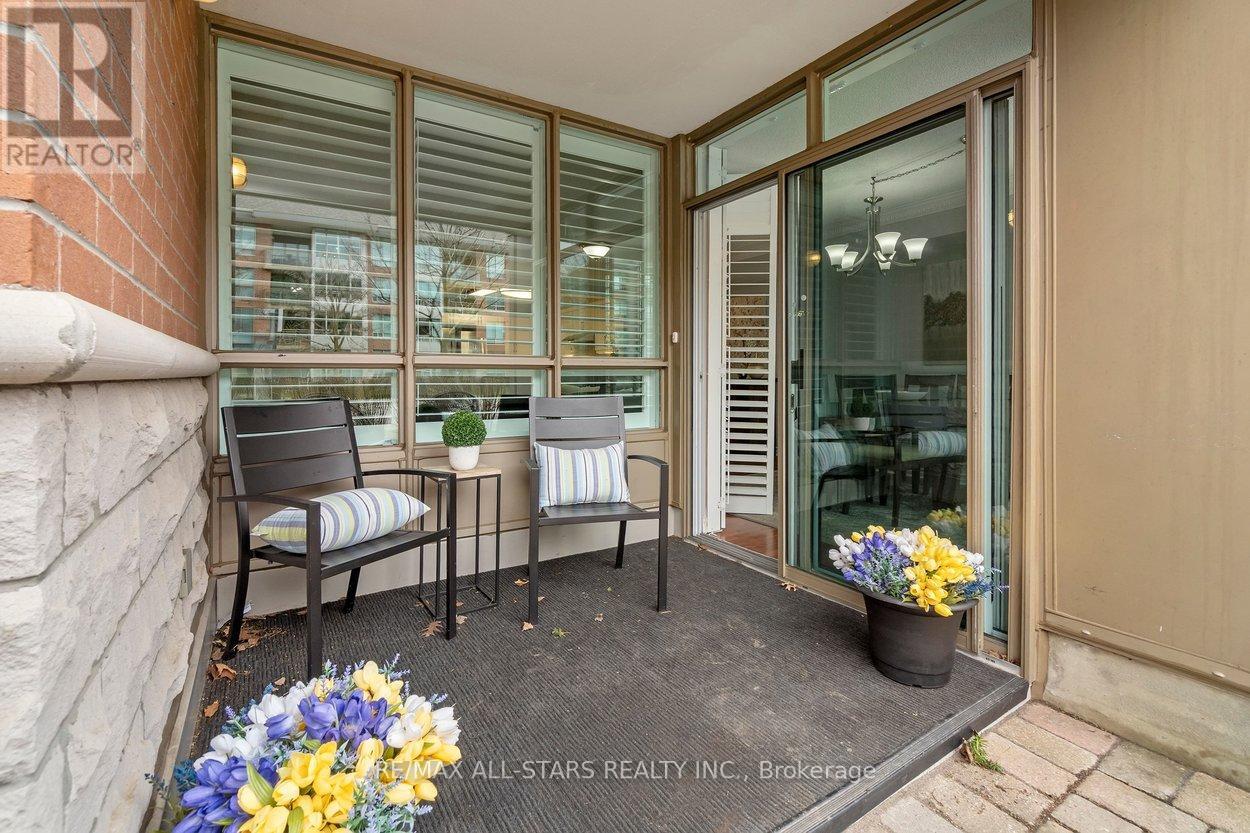 Better than a bungalow, and exceptional value per square foot - this is easy, main-floor living at its very best. No elevators, no waiting, no stairs - step out to your own covered terrace & open patio, where morning coffee turns into neighbourly chats & the world quietly goes by! This rarely offered 1,250 sq ft ground-level suite delivers the kind of space downsizers are looking for, w a layout that comfortably fits your house-sized furniture & dining room set. A welcoming foyer opens into bright, open-concept living & dining areas anchored by a cozy electric fireplace, w fresh paint, laminate floors & custom window coverings. The updated kitchen is both stylish & practical, w quartz counters & backsplash, full fridge & a separate full freezer, all open to the main living space, so you are always part of the conversation. The primary bedroom easily accommodates a king-sized suite, complete w walk-in closet & an updated ensuite featuring quartz counters, a soaker tub & a separate walk-in shower. The 2nd bedrm is generously sized for guests or a den, w a full second bathroom just steps away. In-suite laundry keeps everything convenient & self-contained. One of the standout features here is the outdoor space - nearly double what upper floors offer - ideal for container gardening, fresh air, or for pet lovers. Includes one premium underground parking space (arguably the best in the building) & a corner locker. Maintenance fees cover high-speed internet, cable, water, building insurance and parking, making day-to-day living wonderfully simple. Swan Lake Village in Markham is one of the GTA's most sought-after gated communities, offering a secure, beautifully maintained setting with walking paths, a vibrant community centre, indoor/outdoor pools, tennis, pickleball, bocce, gym, and a full calendar of social activities - a lifestyle where everything is taken care of, and all that's left to do is enjoy! (id:4555)