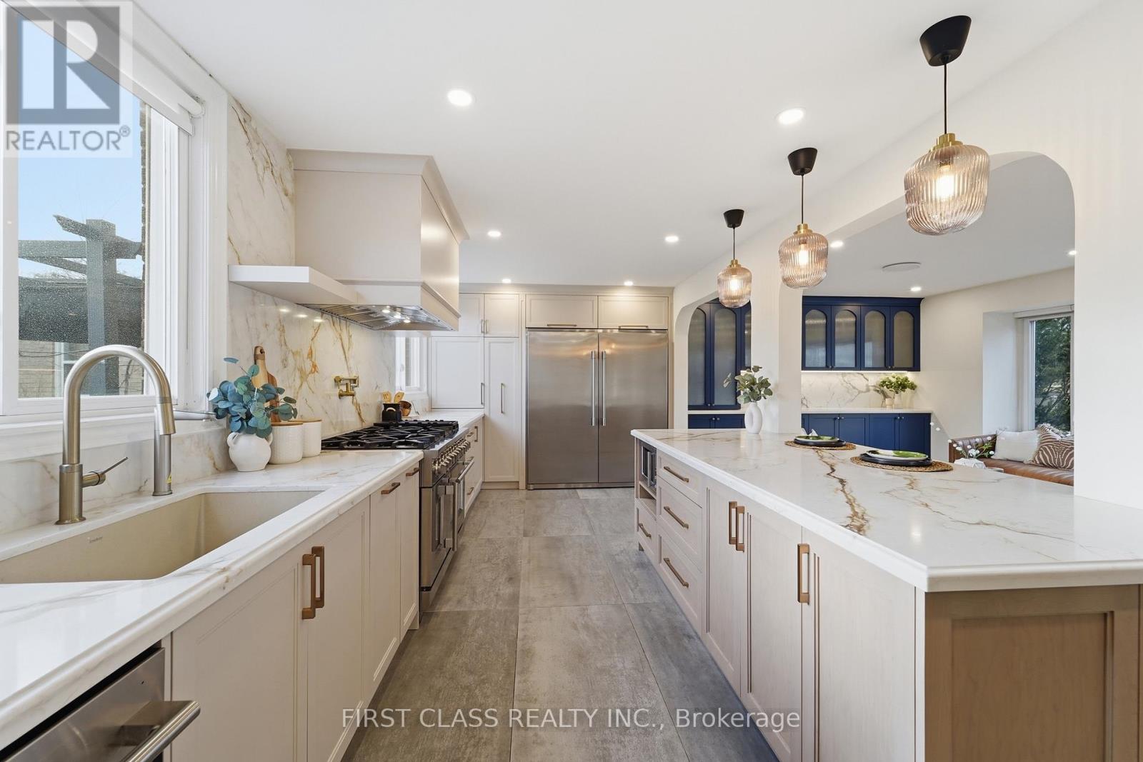 Backing Directly Onto Parkland - Rarely Offered In Prestigious Bayview Fairways. Premium Lot With No Rear Neighbours, Delivering Exceptional Privacy And Unobstructed Green Views.Extensively Renovated In 2025 With City-Approved Permits (~$250K-$300K). Fully Reimagined Interior With Refined, High-End Finishes Throughout. Showpiece Chef's Kitchen With Custom Cabinetry, Quartz Waterfall Island, Full Slab Backsplash, And Top-Tier Appliances Including 48" Professional 8-Burner Gas Range, 48" Commercial Hood, 66" Double-Door Fridge, And Built-In JennAir Dishwasher. Integrated Hot Water Filtration.Elegant Main Floor With Arched Architectural Details, Custom Built-Ins, Designer Lighting, And Electric Fireplace. Functional Mudroom With Ample Storage. Sophisticated Powder Room With Designer Finishes.Upper Level Features A Sun-Filled Primary Retreat Overlooking The Park-Like Backyard, With Walk-In Closet And Luxurious 6-Piece Ensuite (Double Vanity, Soaker Tub, Glass Shower, LED Mirror). Secondary Bedrooms With Custom Closet Organizers.Fully Finished Basement Adds Versatility With Vinyl Flooring, Two Bedrooms Including One Ensuite Suite - Ideal For Extended Family Or Guests - Plus Upgraded Laundry With LG Washer Tower, Cabinetry, And Sink.Exterior Enhancements Include New Interlocking Front & Side Yard, Asphalt Driveway, Fenced Access, Large Deck With Pergola, And 11x7 Storage Shed - Perfect For Entertaining While Enjoying Direct Park Views.Whole-Home Water Filtration & Softening System.Top School Catchments: Bayview Fairways PS, St. Robert CHS, Thornlea SS. Steps To Parks, Trails, Transit & Amenities.Rare Park-Backing Opportunity - Move-In Ready With Premium Upgrades. Lucky Address "88". (id:4555)