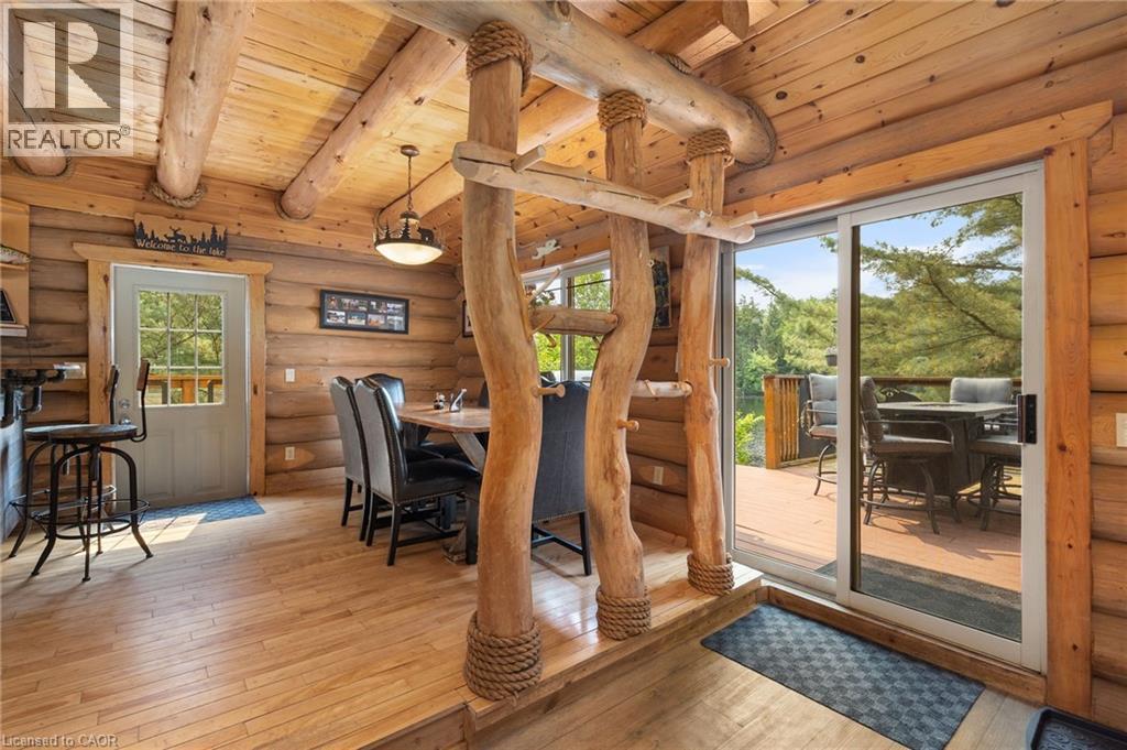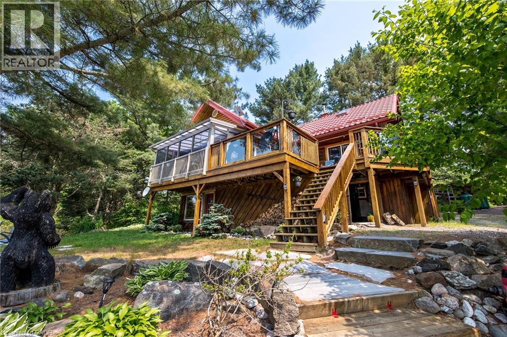 Welcome to your dream getaway! This custom-built log home on Vowel Lake offers over 2200sq.f of Living Spece and features 188 feet of easy-access shoreline with breathtakingviews of serene Crown Land. Located on a maintained municipal road foryear-round accessibility, it ensures easy winter visits.Inside, enjoy a spacious great room with vaulted ceilings and a cozydouble-sided fireplace, complemented by warm wide plank pine floors.The main floor boasts a luxurious principal bedroom with a 4-pieceensuite, while kids will adore the charming loft bedroom.Relax in the beautiful 4-season sunroom offering panoramic lake viewsor step out to the sun-soaked, south-facing decks. The fully finishedwalkout lower level enhances your experience with a private suite,family room, and den, ideal for guests.Catch unforgettable western sunsets from the expansive decks or unwindin the lakeside bunkie and sauna. The property also features areliable water source from a well, equipped with a water treatmentsystem, a Generac inline backup power system for peace of mind, andfast-speed Starlink Internet to keep you connected. With smart Wi-Fithermostats, ample parking for recreational toys, and beautifullylandscaped grounds, this property is a true lakeside haven.Just 20 minutes from Parry Sound and easily accessible from the GTA,this one-of-a-kind Northern log lake house on Vowel Lake is the idealescape you've been dreaming of! 2.5% + Hst will be reduced to 1% if Listing Agent or team member shows property to Buyer, Relative or Affiliated company. No WETT cert for wood burning sauna, WETT cert on line for the Fireplace in living room. (id:4555)