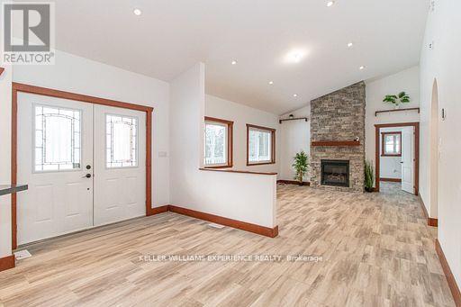 Welcome to this newly built bungalow with 3 bedrooms and 2 bathrooms on the main floor & 2 bedrooms, 1 bathroom in the partially finished basement. Completed in 2022, this home offers 1,800 sq ft of thoughtfully designed living space on a quiet, private 6.28-acre property with scenic walking, ATV and snowmobile trails. Designed with wheelchair accessibility in mind, the home features an open, functional layout anchored by a custom kitchen with high-end appliances & a six foot island ideal for both everyday living & entertaining. The main area boasts a beautiful large Margin cookstove in the dining room & a propane fireplace encased in floor to ceiling brick in the living room. Creating inviting spaces for year round comfort. Restored 1914 vanity with clawfoot tub in master ensuite next to your walk in closet. Additional modern conveniences include central air conditioning, a full monitored alarm system with video surveillance, 200-amp electric service throughout using two panels, a steel roof, ICF foundation, cold room & an owned Generac propane backup generator. The oversized attached double garage with two man doors provide ample room for vehicles, storage, and workshop use. The partially finished basement offers exceptional future potential, with 9 ft ceilings & a second kitchen, creating the possibility for an in-law suite or rental accommodations. With a professionally landscaped yard& driveways outdoor living is a standout feature. With a wrap-around porch this property is perfect for relaxing & enjoying the wildlife in your peaceful setting. RV owners will appreciate the full RV hookup with water, electrical, & septic. With the largest residential septic system, this home is built to accommodate a 5-bedroom, 3-bath home. Which offers flexibility for future expansion. A rare opportunity to own a custom built, beaver home. Offering privacy & acreage, with accessibility-focused design & long-term versatility. Move-in ready today for less than the cost to build. (id:4555)