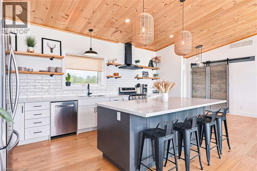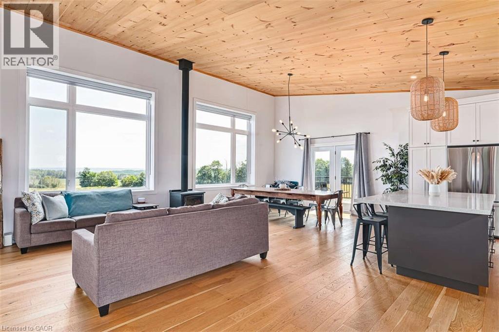 For more info on the property, please click the Brochure button.Welcome to your private dream retreat nestled between Thornbury & Meaford. This stunning detached full ICF home offers the perfect balance of modern comfort and serene country living. Featuring 1,900 sq. ft. of thoughtfully designed living space (3,800 sq. ft. including the walkout basement), this 3-bedroom, 2-bathroom home is set down a long private lane, positioned into the hillside to capture breathtaking views from every angle. The 94-acre property offers endless possibilities, with approximately 65 workable acres currently rented for cash crop. The remaining land includes pasture, fruit trees, hardwood bush, scenic walking trails, and a newly dug 20’ deep pond with hydro to the bunkie. An outdoor enthusiasts paradise in the heart of southern Georgian Bay. Enjoy exceptional privacy without sacrificing convenience, located just five minutes from Thornbury & Meaford, and close to local beaches, golf courses, private ski clubs, Blue Mountain, and endless cycling and skiing trails. The charm, dining, and boutique shopping of these vibrant communities are all within easy reach. Inside, full ICF construction delivers outstanding energy efficiency and a quiet, comfortable living environment. The open-concept kitchen, and living area is ideal for entertaining, highlighted by a wood-burning fireplace that adds warmth and character. The full walkout basement with 10’ ceilings offers incredible flexibility—perfect for additional living space, a home gym, office, or guest suite—further enhancing the home’s value and potential. This rare offering presents a truly exceptional lifestyle, blending peaceful country living with the amenities of Thornbury, Meaford, and the Blue Mountains. Envision a future where every day begins with natural beauty and ends in tranquility. Contact us today to experience this remarkable property firsthand. Opportunities like this are rare, offering space, privacy, and freedom. (id:4555)