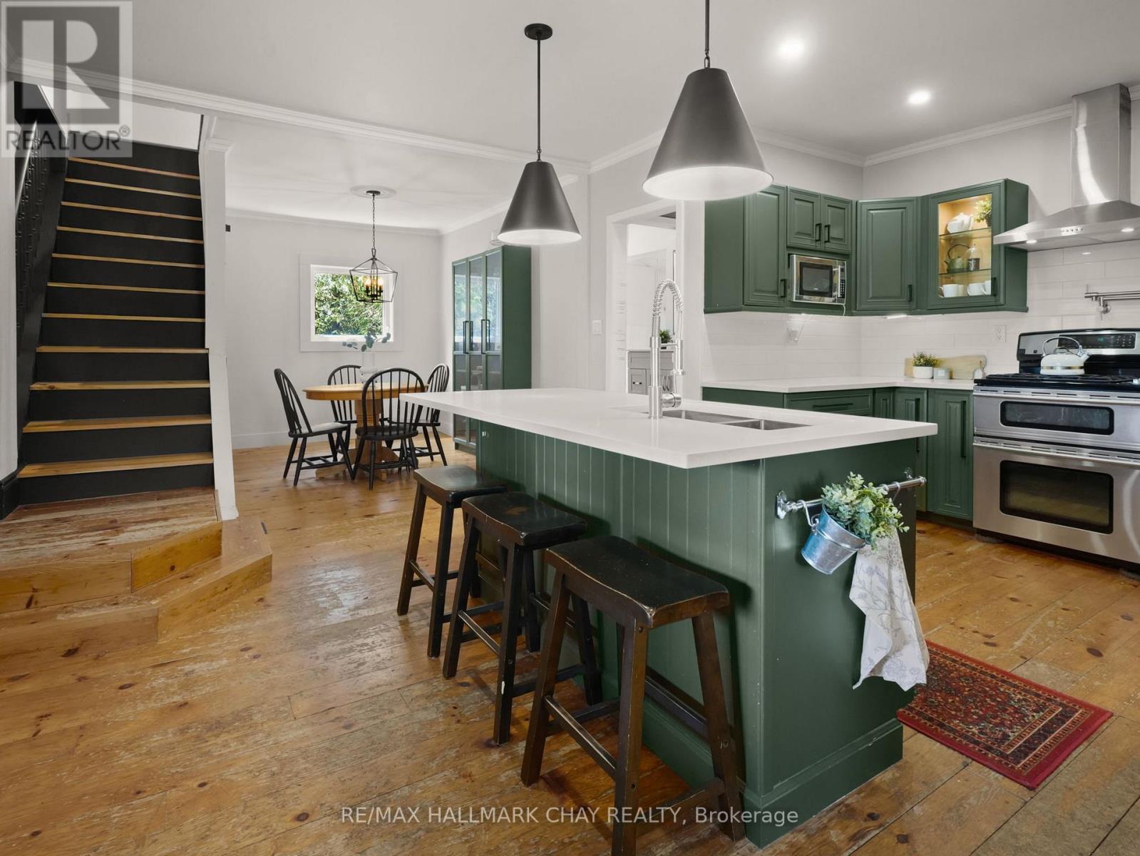 Situated in the charming community of Horning's Mills, this beautifully updated home sits on a beautiful one-acre lot with expansive countryside vistas. The property offers an ideal blend of small-town character and private, relaxed living. Enjoy your mornings and evenings on the inviting front porch, perfectly positioned to take in the serene natural surroundings. Inside, the well-planned layout includes a main-floor primary suite, providing convenient single-level living suitable for both downsizers and growing families. The newly renovated main bathroom is a highlight, featuring a luxurious clawfoot soaking tub and a modern glass-enclosed shower. The second level offers two additional bedrooms and a convenient two-piece bath, creating an excellent space for family or guests. The kitchen and dining areas connect seamlessly, with the adjacent living room offering a warm, functional setting for everyday living and entertaining. Outdoors, a detached garage enhances the property with added storage and workspace potential.This move-in-ready home captures the best of small-town living in one of Dufferin County's most welcoming hamlets-an opportunity not to be missed. (id:4555)