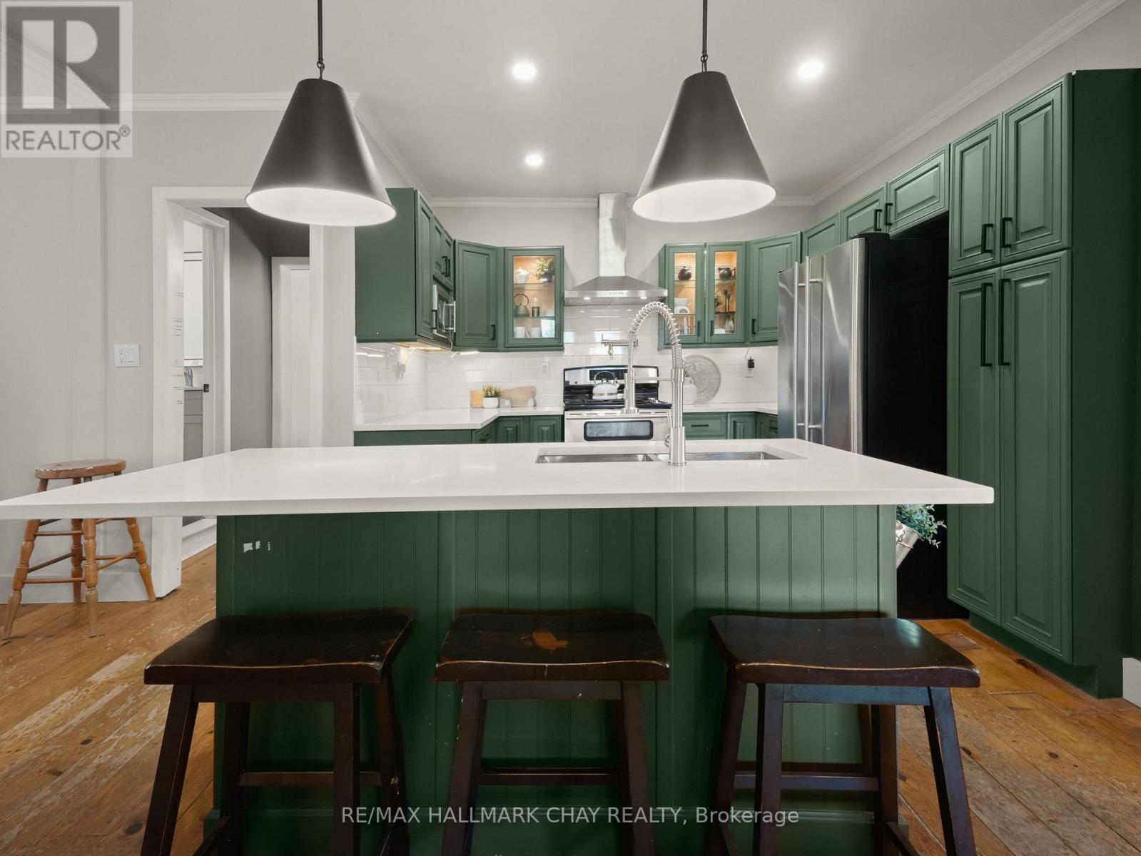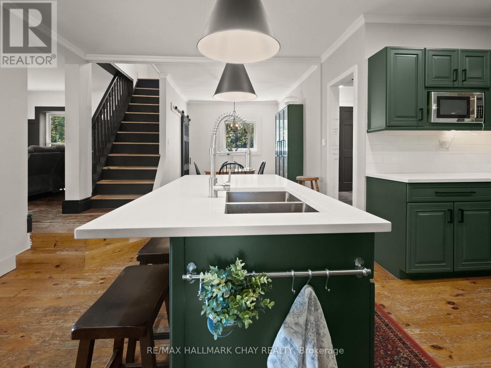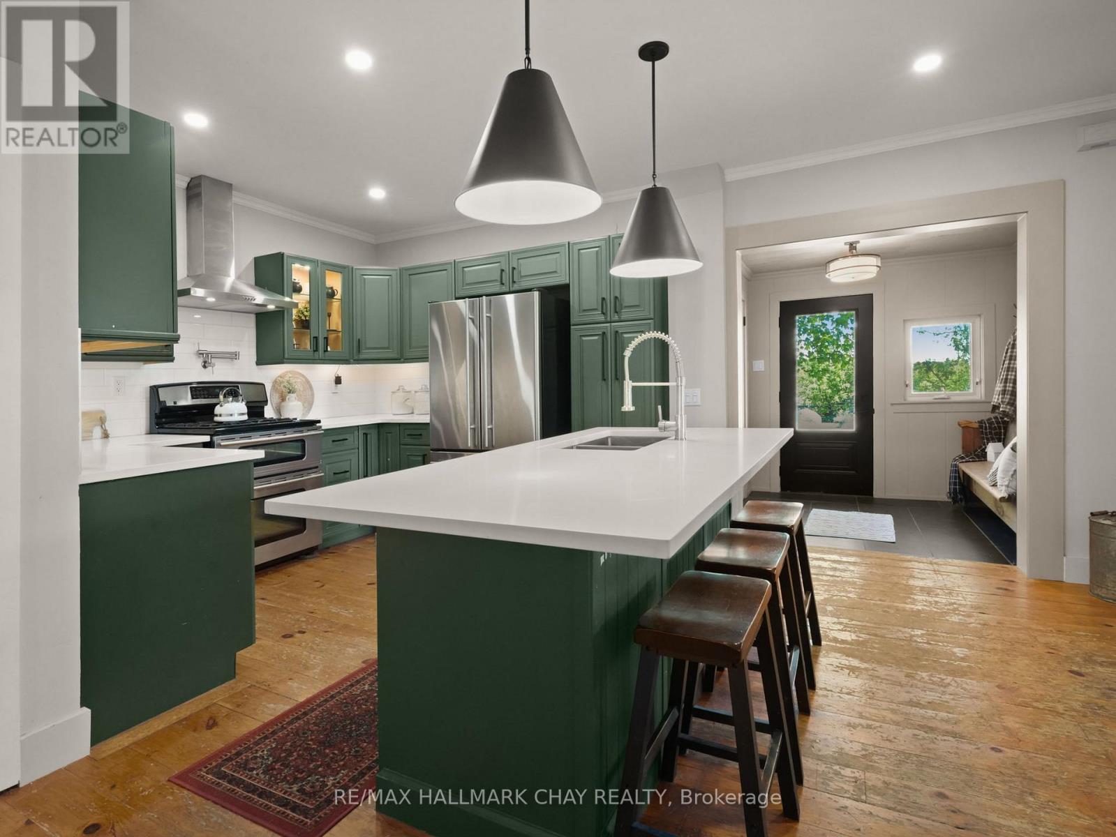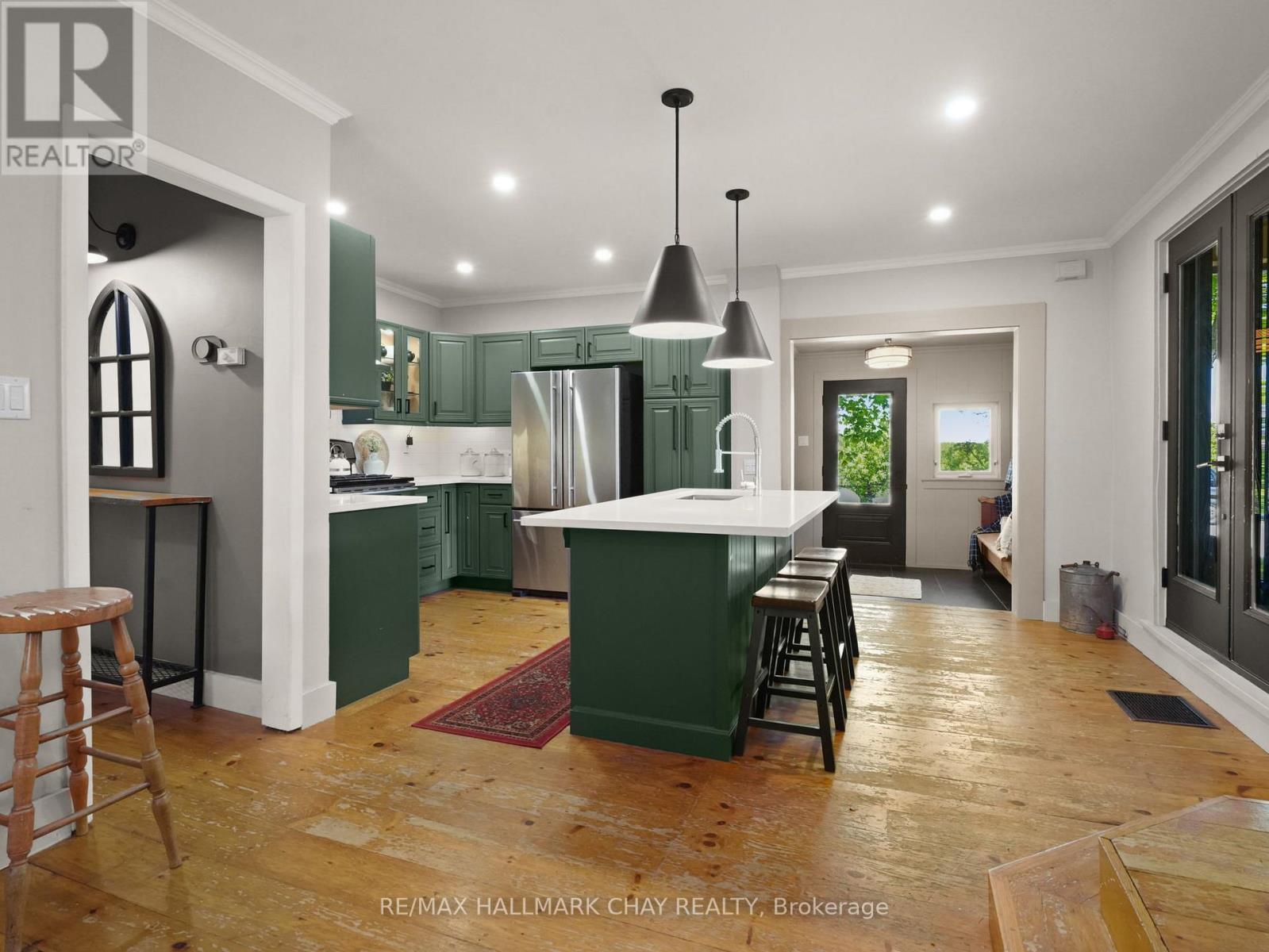 Situated in the charming community of Horning's Mills, this beautifully updated home sits on a beautiful one-acre lot with expansive countryside vistas. The property offers an ideal blend of small-town character and private, relaxed living. Enjoy your mornings and evenings on the inviting front porch, perfectly positioned to take in the serene natural surroundings. Inside, the well-planned layout includes a main-floor primary suite, providing convenient single-level living suitable for both downsizers and growing families. The newly renovated main bathroom is a highlight, featuring a luxurious clawfoot soaking tub and a modern glass-enclosed shower. The second level offers two additional bedrooms and a convenient two-piece bath, creating an excellent space for family or guests. The kitchen and dining areas connect seamlessly, with the adjacent living room offering a warm, functional setting for everyday living and entertaining. Outdoors, a detached garage enhances the property with added storage and workspace potential.This move-in-ready home captures the best of small-town living in one of Dufferin County's most welcoming hamlets-an opportunity not to be missed. (id:4555)