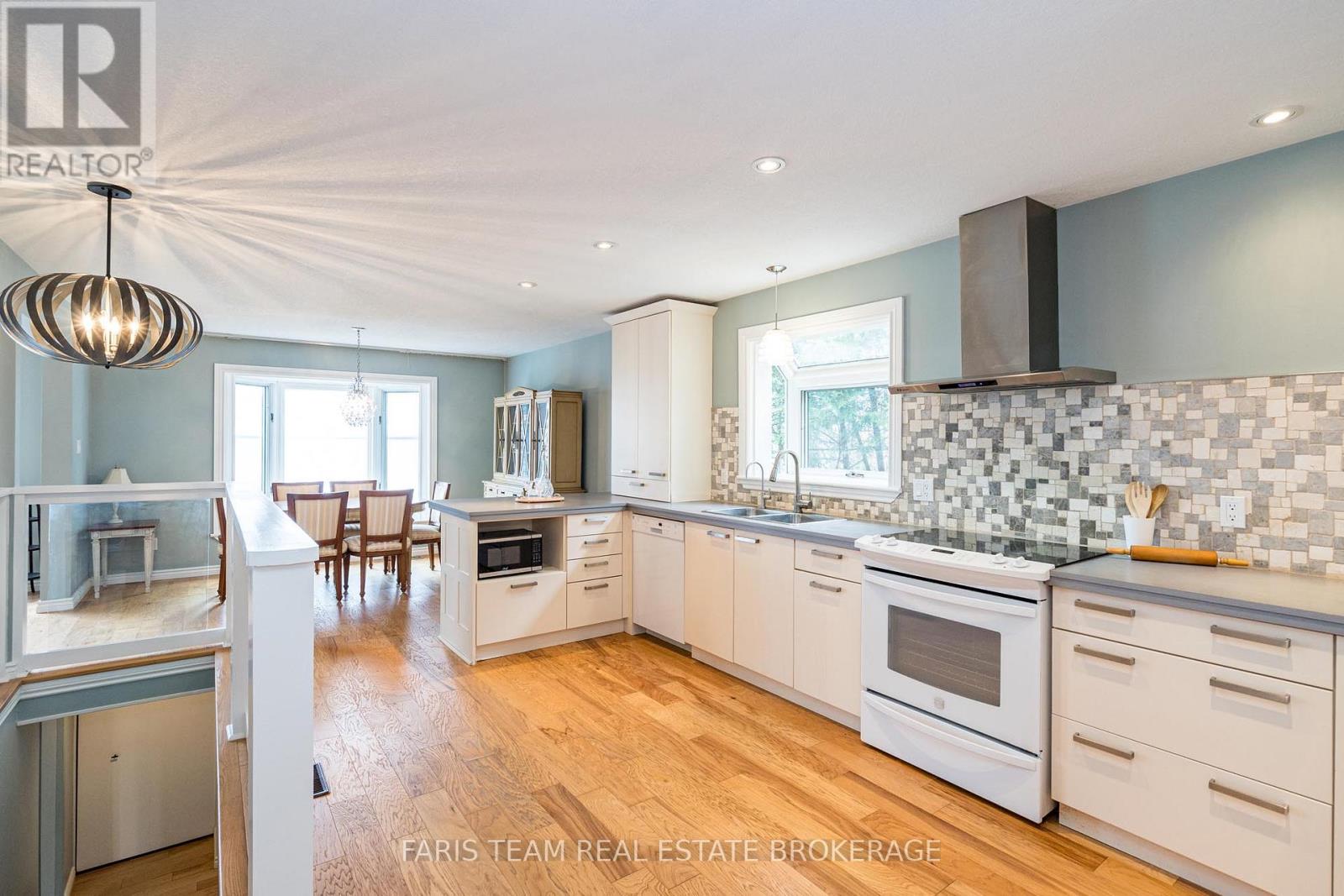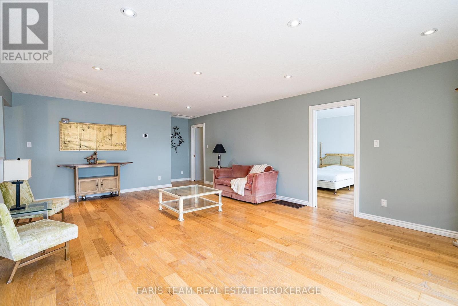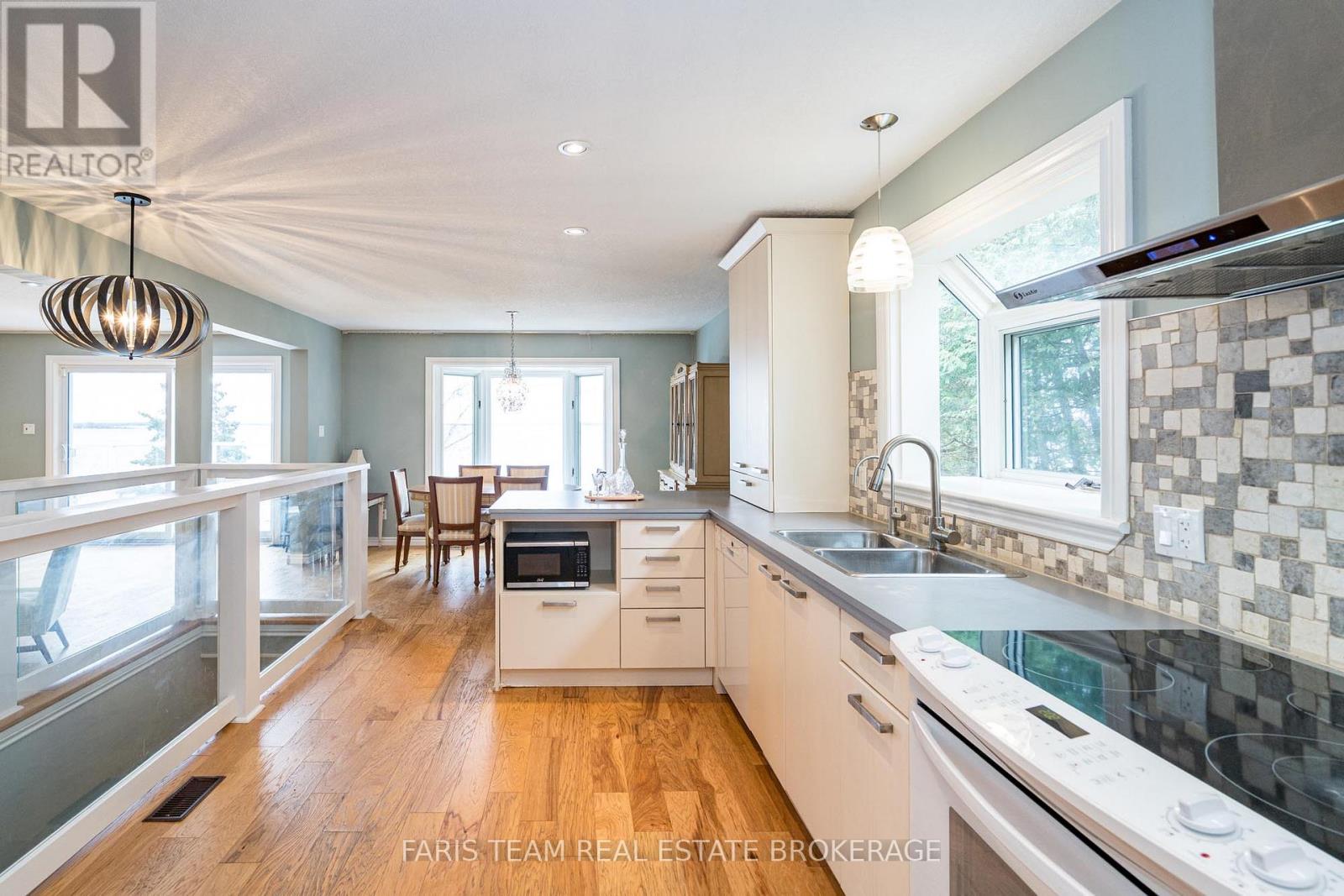 Top 5 Reasons You Will Love This Home: 1) With over 123-feet of real, accessible shoreline and a stunning south-easterly view toward Snake Island, you will wake up to sunrises over the water and end the day with a golden evening glow that simply cannot be replicated inland, tucked away on a quiet dead end street in a mature and established neighbourhood, the setting here is one of genuine tranquility from the moment you arrive 2) This is one of those rare and coveted shorelines that is rarely for sale, peaceful, mature, and deeply treasured, while being surrounded by established properties and mature trees, the atmosphere is calm and unhurried, offering a chance to embrace a lifestyle that few ever get to experience and even fewer are willing to let go of 3) The additional rear parcel offers meaningful room to grow, where you can imagine a detached studio, a guesthouse, a workshop, or a garage to showcase a collection of vintage cars and recreational toys, the possibilities here extend well beyond the walls of the home itself 4) A thoughtful layout featuring three bedrooms and three bathrooms, an updated kitchen, hardwood flooring, open-concept family areas, a Muskoka room, a spacious primary suite, a sauna, and a walk-out lower level that connects you directly to the water, all designed for effortless everyday living and genuine year-round enjoyment 5) Freshly painted throughout with an interlock driveway, a single-car garage with inside entry, a patio perfect for entertaining, and a forced air heating to carry you comfortably through every season, this is a home where the water views follow you from nearly every room, making it as livable as it is beautiful. 1,448 above grade sq.ft. plus a finished lower level. (id:4555)