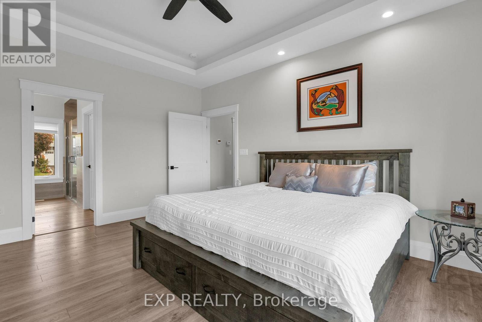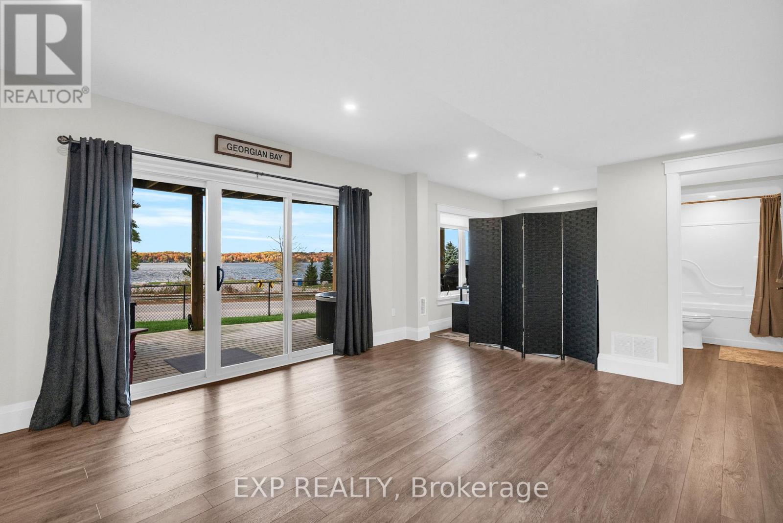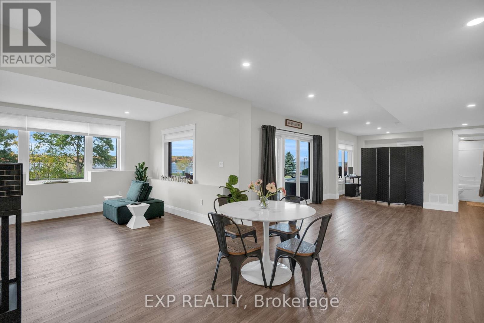 Welcome to 244 Frank Street an elegant bungalow residence showcasing panoramic Georgian Bay views and refined, effortless living.Thoughtfully designed for both comfort and sophistication, this 3-bedroom, 3-bathroom home offers a seamless main-floor layout. The primary suite serves as a private retreat, complete with a walk-in closet and spa-inspired 4-piece ensuite, with heated floors, while a second main-floor bedroom is positioned for optimal privacy.The open-concept living space is beautifully appointed, featuring quality cabinetry, upgraded lighting, heated countertops, and an inviting flow for both intimate gatherings and entertaining. Main-floor laundry adds everyday convenience.The fully finished lower level extends the living experience with a spacious recreation area, second full kitchen, dedicated home office, third bedroom, full bath, and abundant storage-offering excellent potential for multi-generational living or excellent potential for an in-law suite .Additional highlights include a brand new generator and generlink, EV charger capability, and a double-car garage with epoxy flooring and dual walk-up access.Set in the sought-after waterfront community of Midland, this home offers proximity to marinas, boutique shops, dining, and year-round recreation,along with easy access to highways, trails and waterways.A rare offering where elevated finishes meet breathtaking natural beauty. (id:4555)