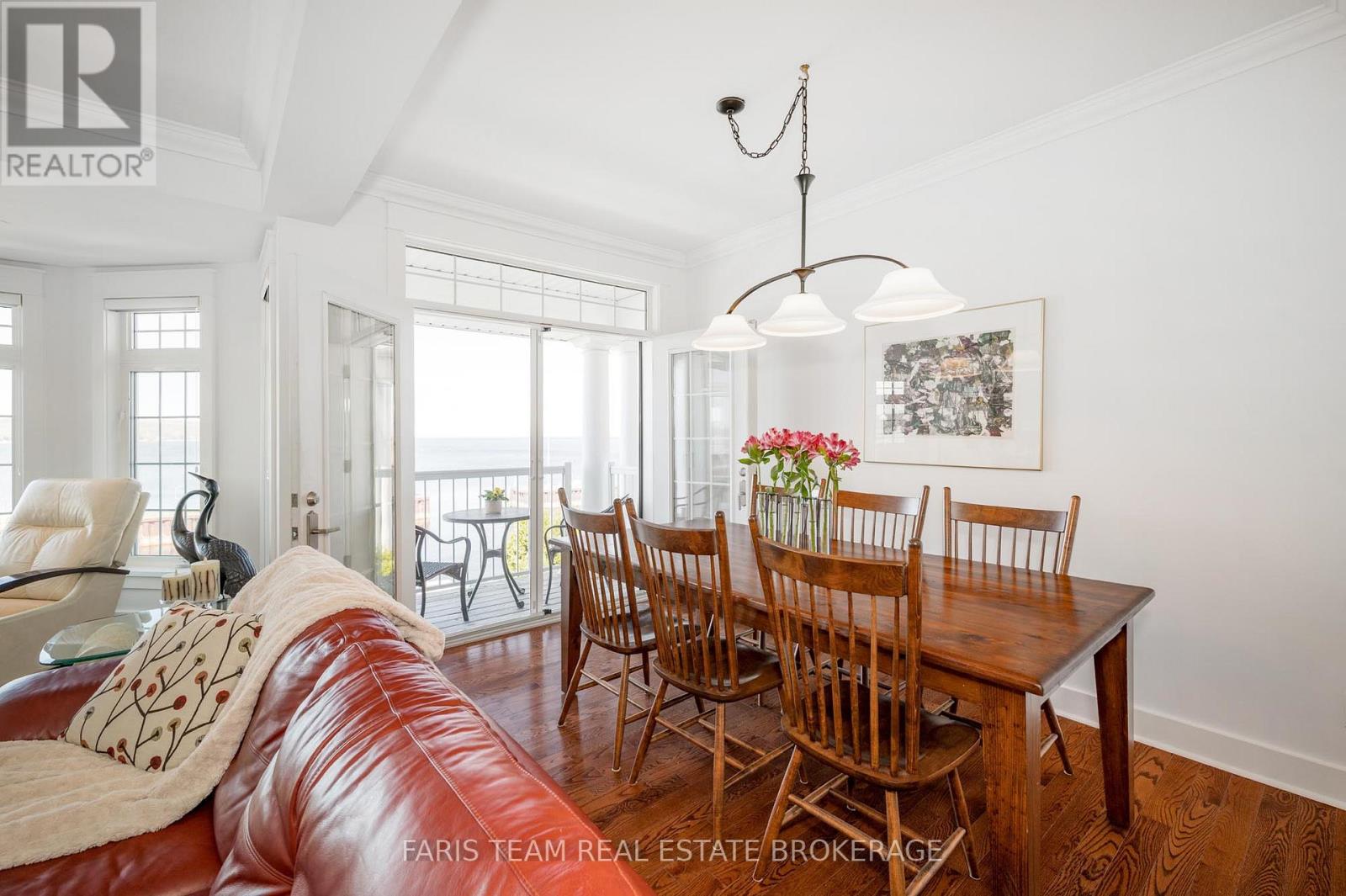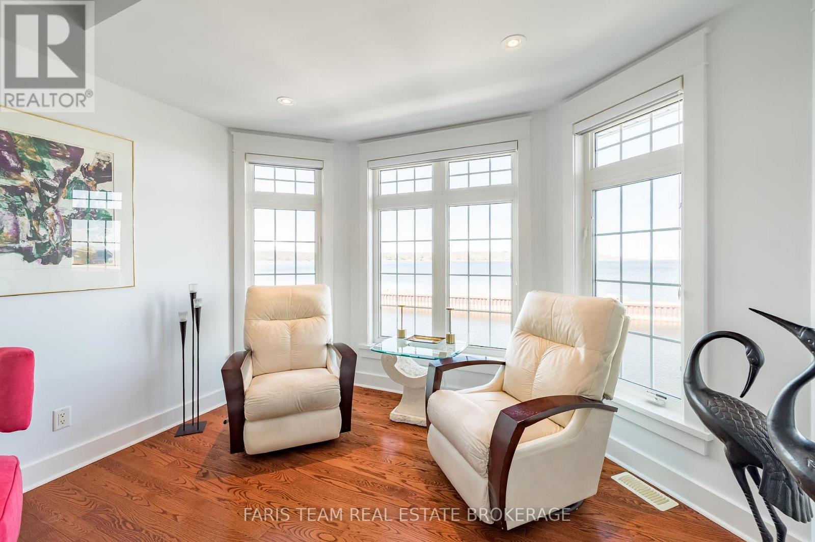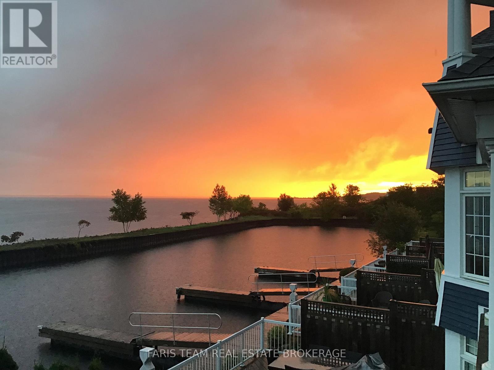 Top 5 Reasons You Will Love This Condo: 1) Imagine waking up each morning to sweeping, uninterrupted views of Midland Harbour and the shimmering waters of Georgian Bay, beautifully framed from every level of your sophisticated townhome 2) Step outside to your own private dock, securely protected by a professionally engineered break wall, offering seamless access to the Bay; excellent for enjoying a leisurely boat ride or simply soaking in the waterfront serenity 3) Designed for effortless luxury, this residence promises lock-and-leave convenience, perfect for world travellers or anyone seeking the ease of a refined, maintenance-free lifestyle 4) Entertain with style in the oversized chefs kitchen, unwind in a grand primary retreat complete with a spa-like ensuite and a spacious walk-in closet, or welcome guests with ease in the walk-out lower level, all finished with timeless, high-end touches that whisper elegance at every turn 5) Just a short stroll away, discover boutique shops, fine dining, marinas, and vibrant galleries, all while enjoying the peace of municipal services, high-speed internet, and plenty of guest parking. 1,977 above grade sq.ft. plus a finished basement. (id:4555)