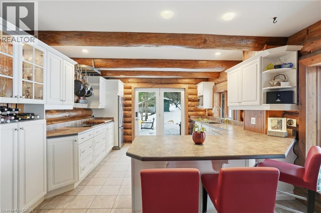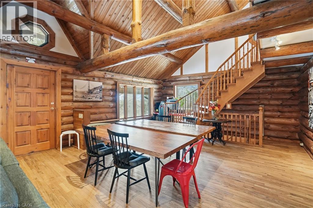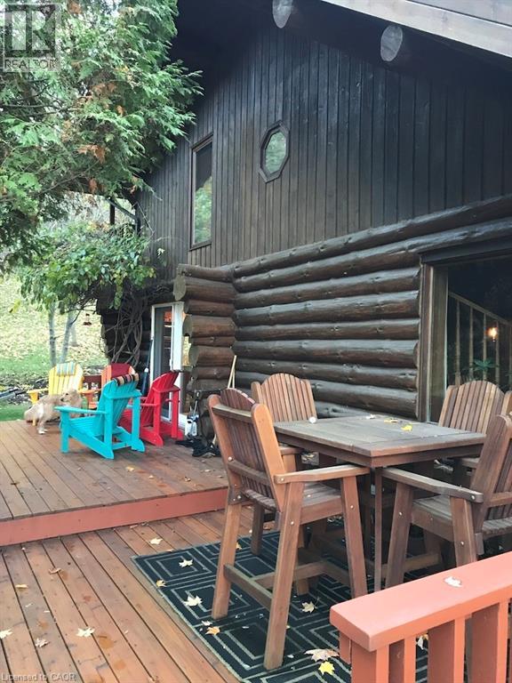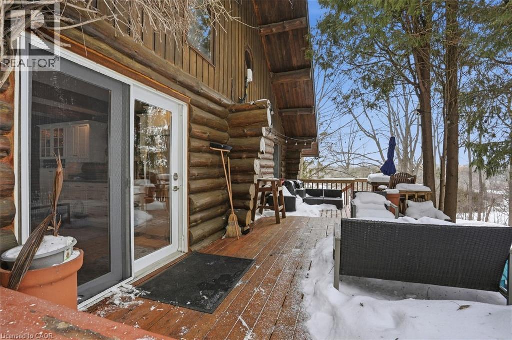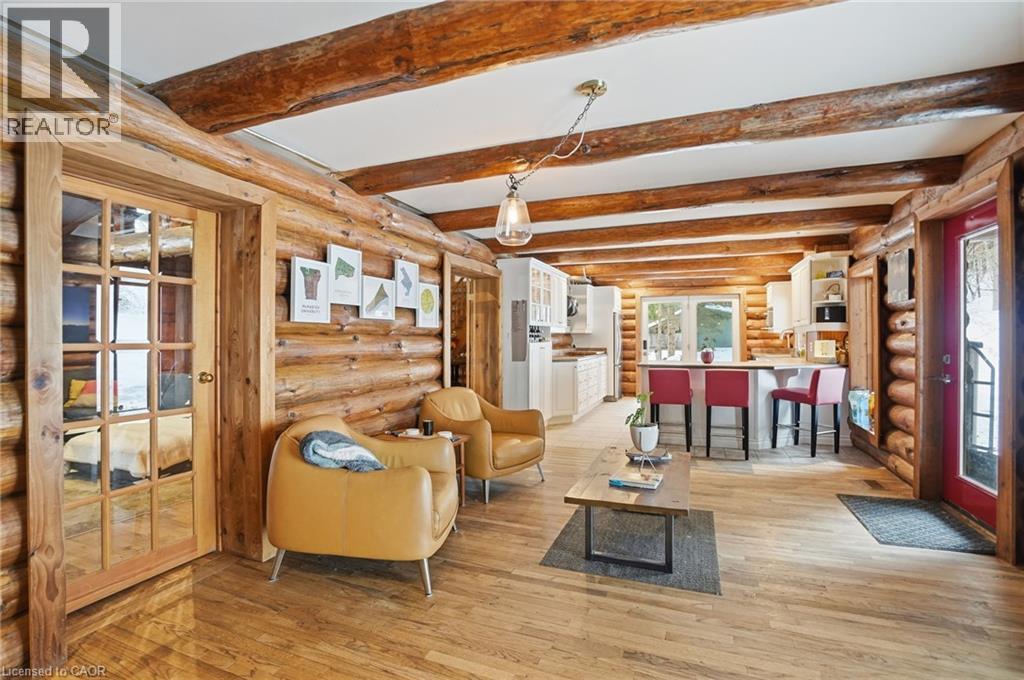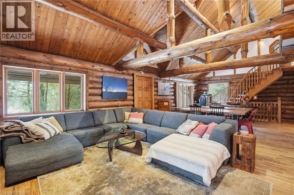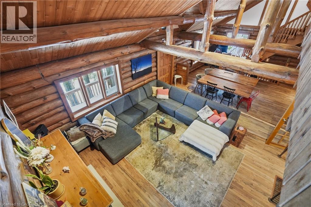 Introducing this beautifully crafted 1,771 square foot log bungaloft offering the perfect blend of rustic charm and modern comfort in a peaceful country setting. Soaring vaulted ceilings with exposed log beams create a warm and inviting first impression in the massive living and dining area, complete with a cozy gas fireplace. The spacious kitchen features abundant counter space and overlooks the welcoming family room warmed by an Elmira wood stove, ideal for gatherings year-round. Step outside to enjoy two separate decks, one off the family room and another off the kitchen, perfect for entertaining or relaxing in nature. The upper-level primary retreat offers a generous walk-in closet; large enough to double as a nursery or home office and a beautifully renovated ensuite with dual vanities and a glass-enclosed shower. The finished walk-out lower level adds exceptional living space with two well-sized bedrooms, an updated 3-piece bath and a comfortable rec room with its own gas fireplace. Outdoors, you’ll find a detached single-car garage, a charming chicken coop and a powered shed with 100-amp service—originally planned as a home office. A concrete pad is ready for your future hot tub, while walking trails right at your doorstep complete this serene and private country lifestyle. This is more than a home—it’s a retreat. Don’t be TOO LATE*! *REG TM. RSA. (id:4555)