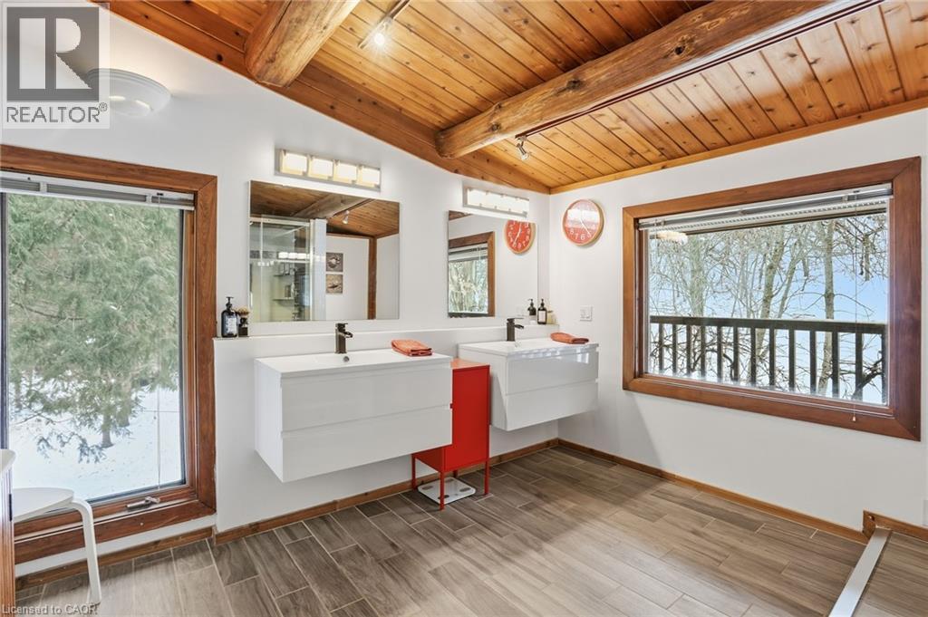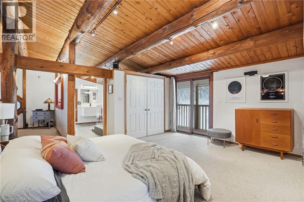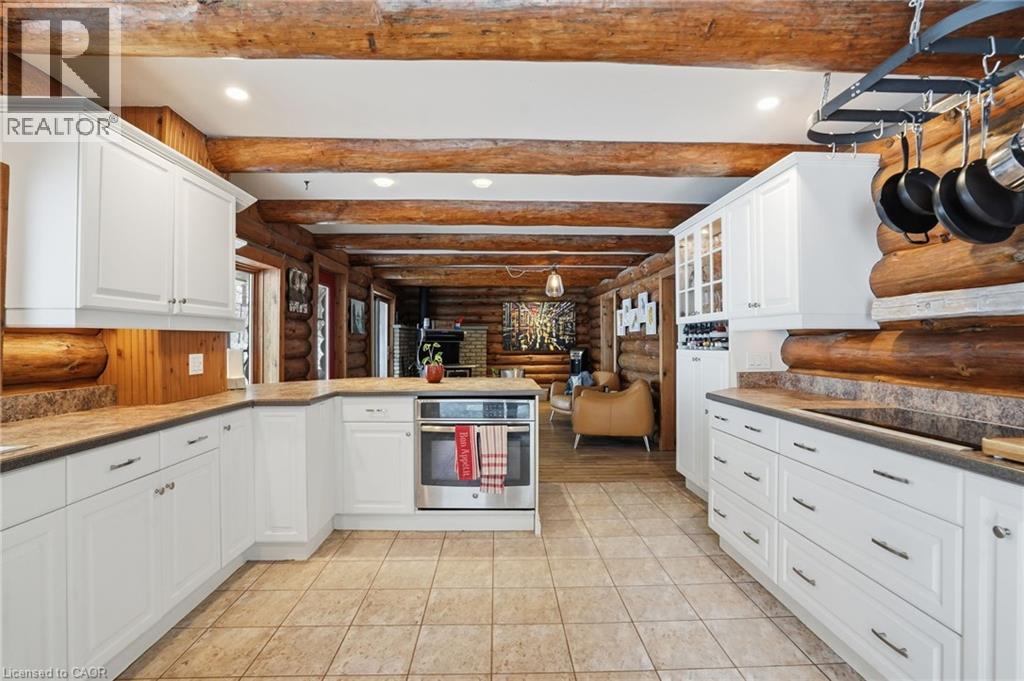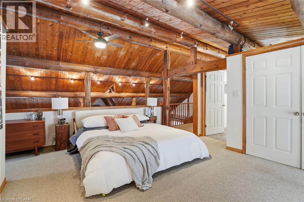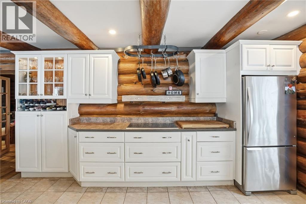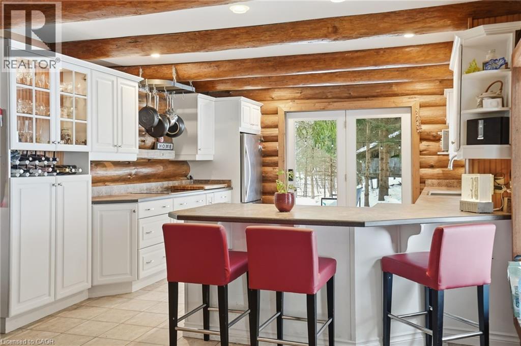 Introducing this beautifully crafted 1,771 square foot log bungaloft offering the perfect blend of rustic charm and modern comfort in a peaceful country setting. Soaring vaulted ceilings with exposed log beams create a warm and inviting first impression in the massive living and dining area, complete with a cozy gas fireplace. The spacious kitchen features abundant counter space and overlooks the welcoming family room warmed by an Elmira wood stove, ideal for gatherings year-round. Step outside to enjoy two separate decks, one off the family room and another off the kitchen, perfect for entertaining or relaxing in nature. The upper-level primary retreat offers a generous walk-in closet; large enough to double as a nursery or home office and a beautifully renovated ensuite with dual vanities and a glass-enclosed shower. The finished walk-out lower level adds exceptional living space with two well-sized bedrooms, an updated 3-piece bath and a comfortable rec room with its own gas fireplace. Outdoors, you’ll find a detached single-car garage, a charming chicken coop and a powered shed with 100-amp service—originally planned as a home office. A concrete pad is ready for your future hot tub, while walking trails right at your doorstep complete this serene and private country lifestyle. This is more than a home—it’s a retreat. Don’t be TOO LATE*! *REG TM. RSA. (id:4555)