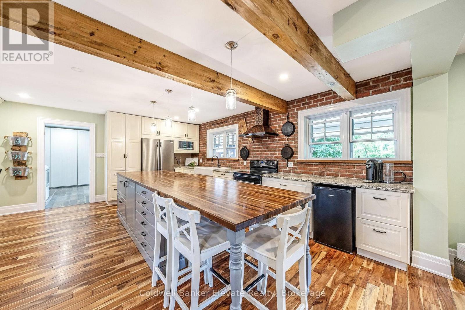 Enjoy a life less ordinary at this storybook Victorian replica home, set on over 5 picturesque acres in the heart of Campbellville. With a charming brick and board-and-batten exterior, this country estate offers the perfect backdrop for family life, homesteading, hobby farming, or a homebased business. Outbuildings abound, including a 23 x 40 ft detached garage with oversized doors and an unfinished loft. The 40 x 17 ft workshop features a roll-up door for easy equipment access and an elegant French door walkout, a dream space for any tradesperson or creative entrepreneur. The property features a mix of open field and mature woods, with two chicken coops, raised garden beds (planted with perennial asparagus and berries), and a second driveway leading to a large open space - ideal for future use or expansion. At the centre of the property, a spring-fed pond fed by Bronte Creek invites fishing, floating dock fun, and cozy evenings in the powered tree fort, perfect as a hangout space for kids or even a unique home office. The heart of the home is the open-concept kitchen, dining, and living space, full of farmhouse-style decor and light, with French doors off both the front and back, one leading to a covered front porch, the other to a screened-inback porch and sun deck, perfect for warm summer evenings and morning coffee. Upstairs offers 4 bedrooms, including a 4pc semi-ensuite off the primary, while the finished walkout basement adds a 5th bedroom, 3pc bath, wet bar, and wood-burning fireplace, ideal for guests or older children. The above-ground pool and beautiful natural surroundings complete this idyllic retreat. All this is just minutes to highways, schools, and local amenities. Welcome home to your farmhouse dream! (id:4555)