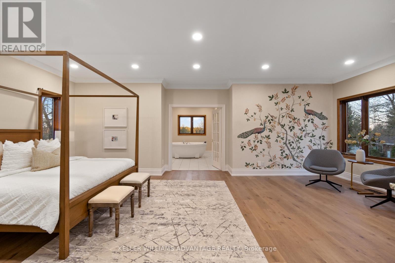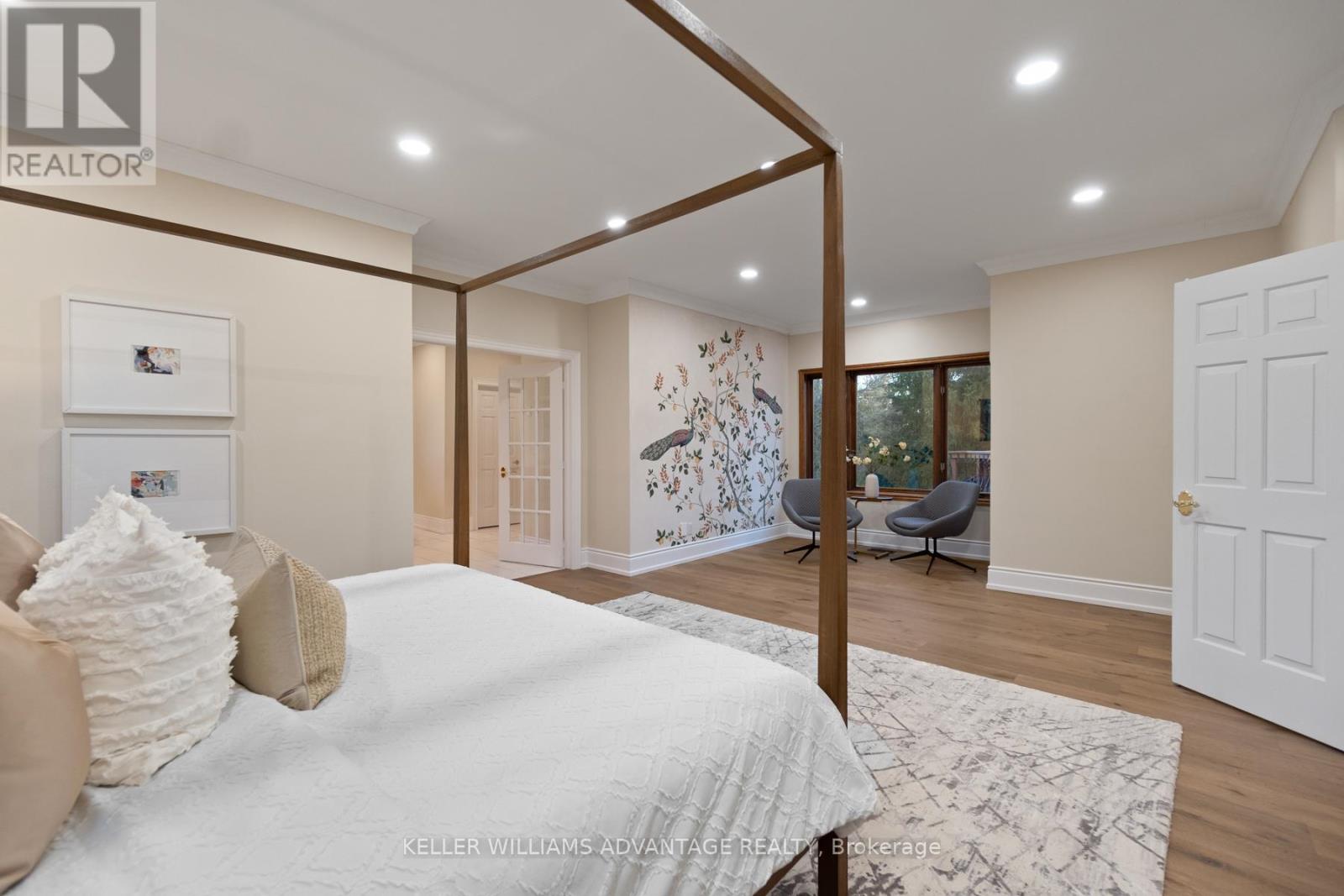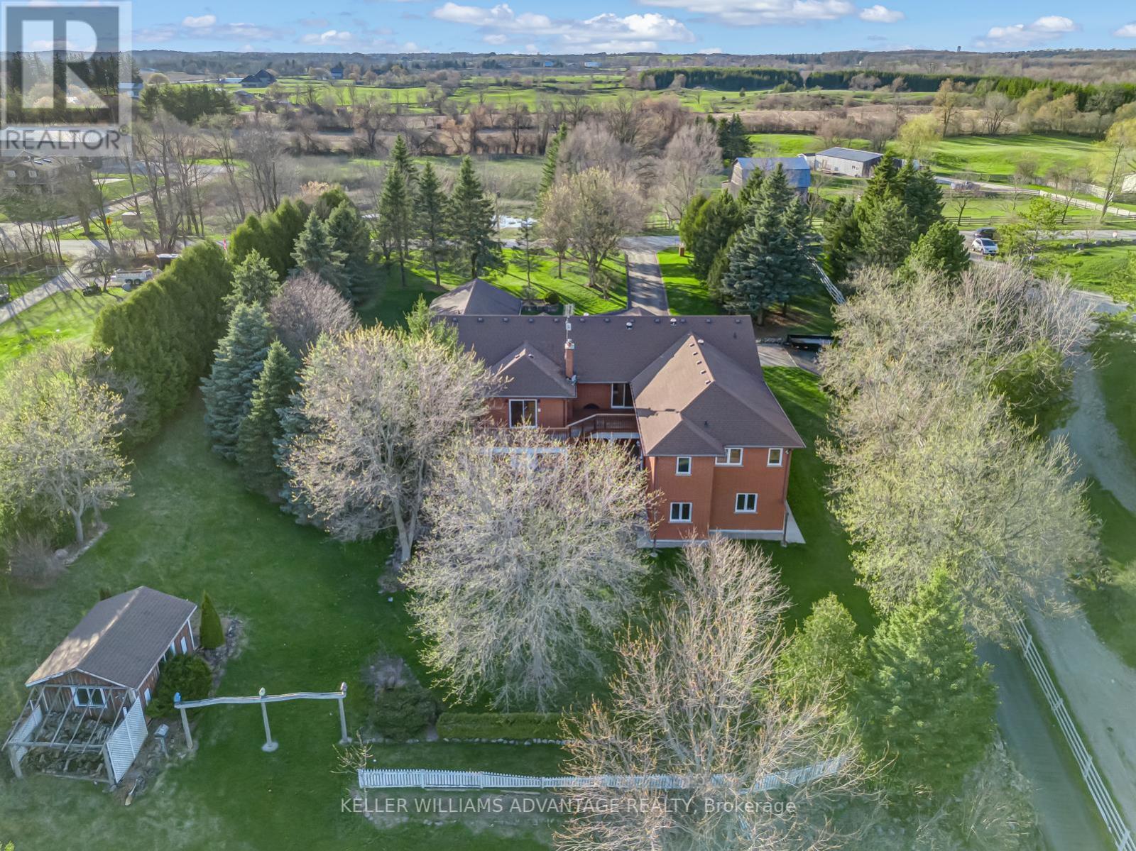 Set on 7.5 acres of picturesque countryside, this impressive 7,325 sq ft estate combines timeless elegance with modern comfort. Spread across two expansive levels, the home features engineered oak hardwood floors, a stunning herringbone foyer, grand arched entryways, and freshly painted interiors throughout. Upgrades include new bathroom countertops, sinks, and stylish hardware finishes for a contemporary touch. With 9-foot ceilings on both levels, the open-concept layout offers exceptional versatility-featuring 6 bedrooms, 6 bathrooms, 2 full kitchens, and 2 laundry rooms. The fully finished walkout basement is its own self-contained living space with a private kitchen, laundry, and multiple separate entrances-ideal for rental income, multigenerational living, or an in-law suite. Designed for those who love indoor-outdoor living, the home offers multiple walkouts leading to a wraparound deck overlooking the grounds. The property also includes a 24' x 40' outbuilding (ideal for shop/garage space), three storage sheds, a charming gazebo, and a peaceful pond complete with a paddleboat. A perfect blend of sophistication and rural tranquillity-your private retreat awaits. (id:4555)