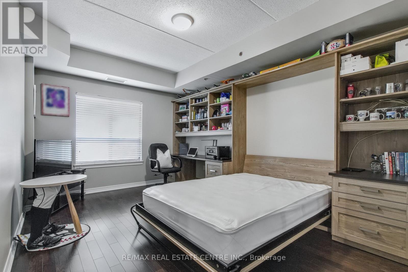 Welcome to this beautifully updated fourth-floor condo, offering 2 spacious bedrooms and 2 bathrooms in a well-maintained building. Featuring elegant hardwood flooring throughout and freshly painted walls, this unit combines comfort with sophisticated design. The kitchen has been enhanced with a custom cabinet pantry, sleek stainless steel appliances, and granite countertops. Ceramic flooring & quartz countertops in both bathrooms for a cohesive, upscale feel. Upgraded light fixtures add a warm, contemporary touch to each room. The second bedroom includes a built-in queen-sized Murphy bed, maximizing space and functionality perfect for guests or a home office setup. Both bedrooms are outfitted with California Closets, providing smart, stylish storage solutions. Two cars? No worries, this unit has TWO OWNED UNDERGROUND PARKING SPOTS and ONE OWNED STORAGE LOCKER. This move-in-ready condo offers modern conveniences and thoughtful upgrades in a desirable location. Don't miss your opportunity to own this exceptional condo! (id:4555)
