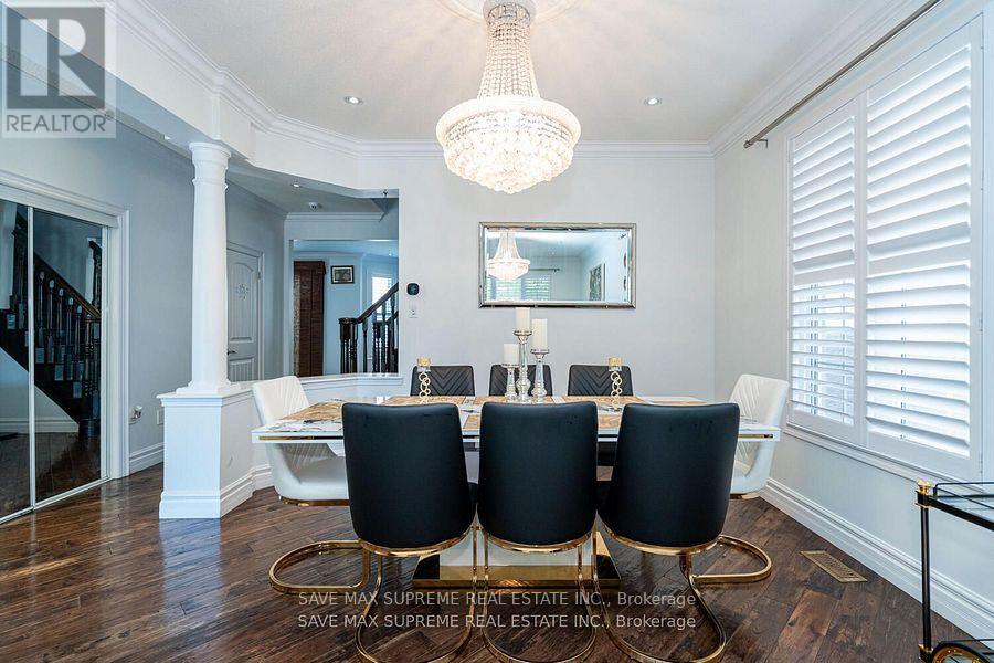 Designer Home in Most Sought Neighborhood of Scott In Milton. Stunning upgrades in this ever popular Huxley model. Exquisite wrought iron inserts in front door. Great Size Combined Living and Dinning Room. Bright and spacious main level offering 9ft ceilings, pot lights, impressive crown molding, designer series hardwood flooring thru out. Family room awaits you with stone accent wall and cosy gas fireplace which opens to Chefs Dream kitchen. Custom designed with Rich maple hardwood cupboards, Island , granite counters, backsplash w medallion, Italian tile flooring. Built in oven/microwave, wolf gas cook top, bosch dishwasher, top of the line Sirius series rangehood overlooking a sunny eat in area with patio access to large deck with iron spindles. Main floor also features ugraded laundry area, garage access and side entrance to basement. A beautiful dark hardwood staircase takes you to the upper level with cosy loft perfect for office/music or play area. Double entry master bedroom with a magnificent ensuite featuring a free standing soaker tub and luxurious glass Grohe jets separate shower. 4th bdrm offers semi ensuite. Beautifully landscaped front yard with big parking which can accommodate 5 cars not including double garage. Impressive in the evening with exterior pot lights front, back and sides of home. 2 Bedroom Legal Basement Apartment best for Inlaw suit or can be rented to help for the mortgage. Close to all Milton has to offer, schools, parks, shopping. (id:4555)