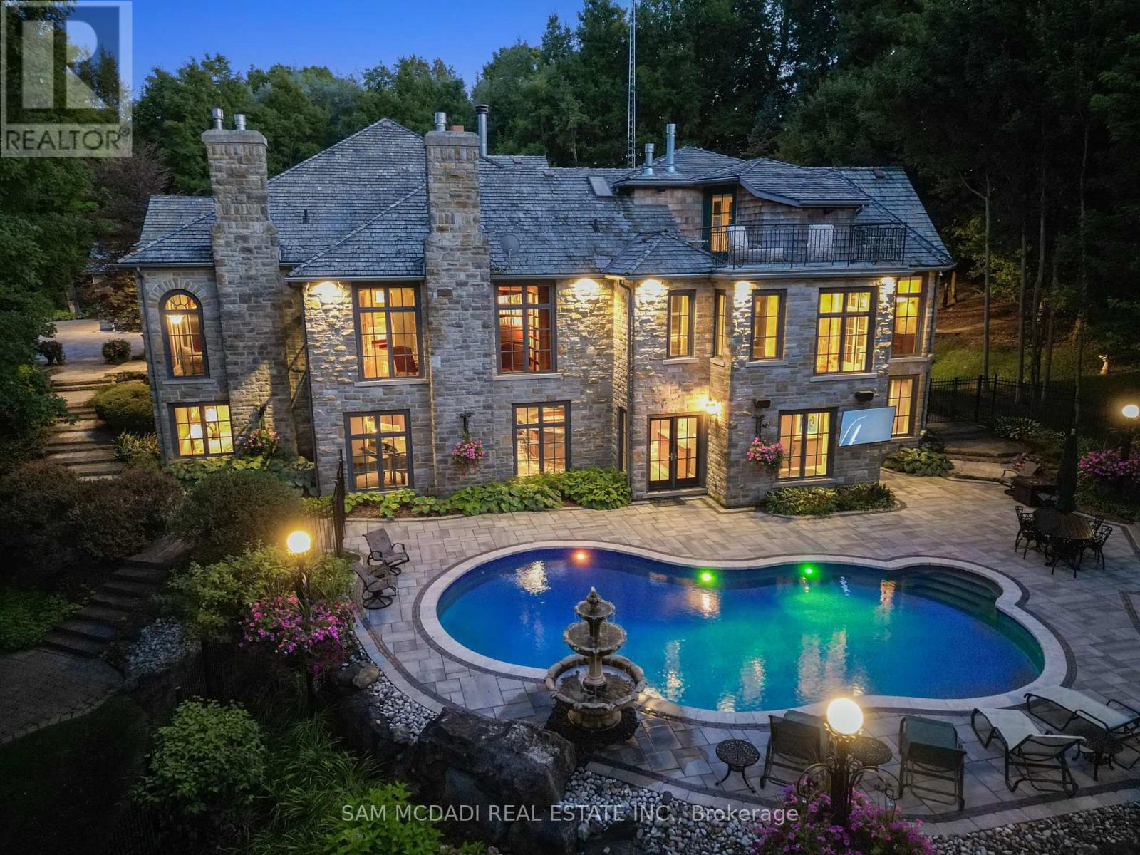Welcome to an extraordinary luxury residence set within the prestigious enclave of Whispering Pines-a private, tree-lined haven of country estates tucked away on a quiet cul-de-sac. This custom-built estate offers the perfect balance of timeless craftsmanship, refined elegance, and modern comfort. Resting on a private 3-acre lot, the property is beautifully landscaped and features a serene pond with fountain, creating a truly picturesque setting. At the rear, a newly renovated pool, hot tub, and expansive patio overlook the lush gardens, providing an exceptional space for outdoor living and entertaining. Spanning nearly 11,000 sq. ft. of finished living space, the home was designed with scale and sophistication in mind. Inside, grand principal rooms offer the ideal setting for both everyday family living and hosting large gatherings. The residence features four spacious bedrooms, a wine cellar and tasting room, a four-car garage, and thoughtful architectural details throughout-delivering a rare blend of luxury and functionality. Ideally located, the property offers quick access to Highway 401 and is just a short drive to Guelph, Milton, Burlington, and Toronto Pearson International Airport, providing outstanding convenience without compromising the tranquility of its secluded setting. Every detail speaks to prestige and privacy, making this one of the most desirable offerings in the region. (id:4555)