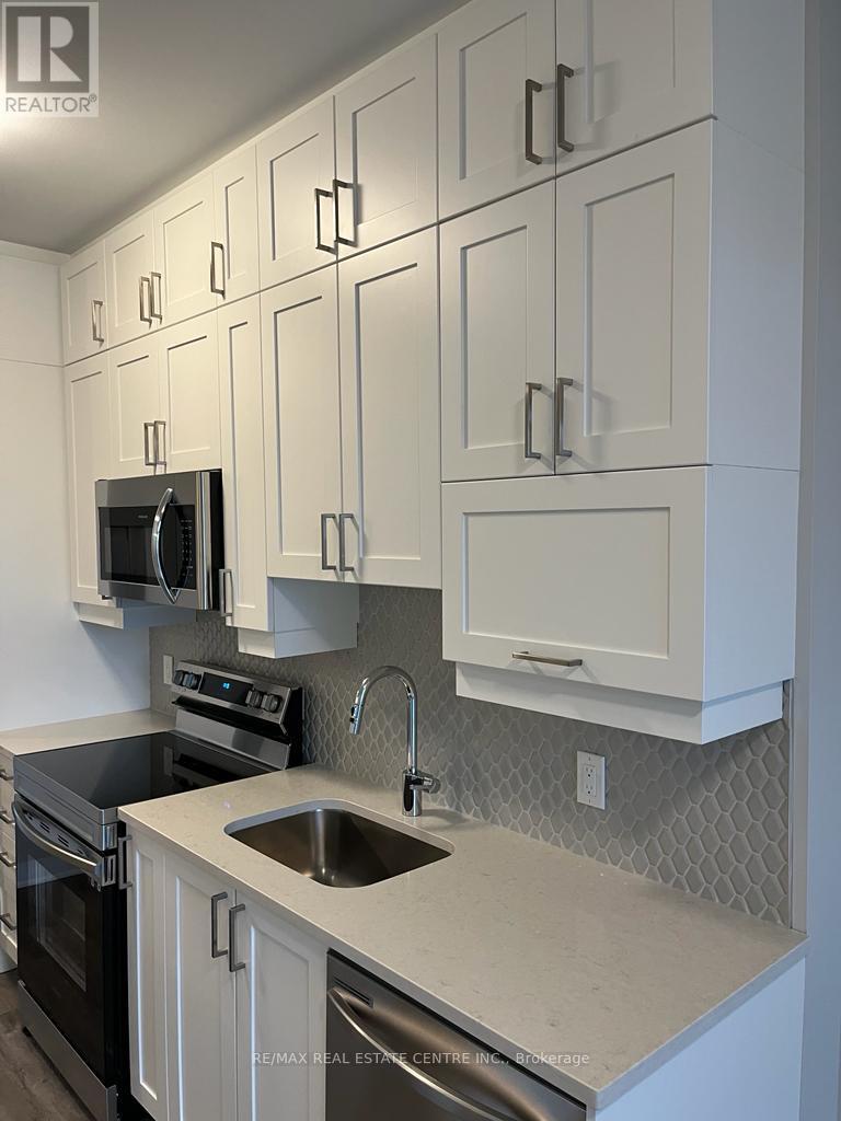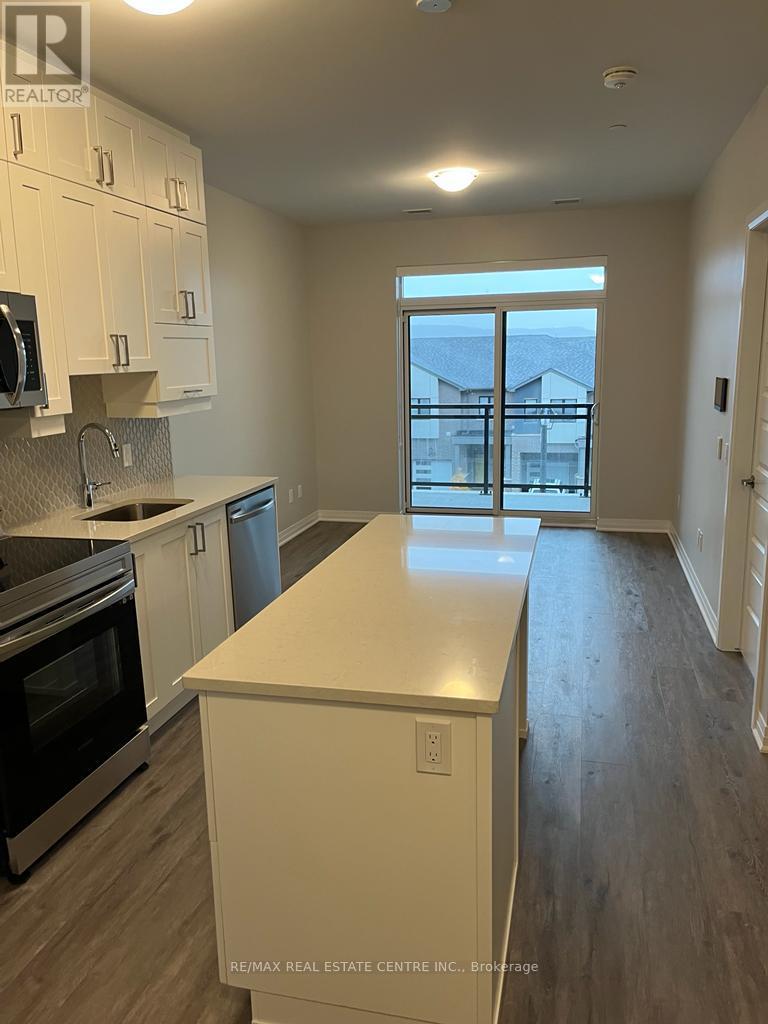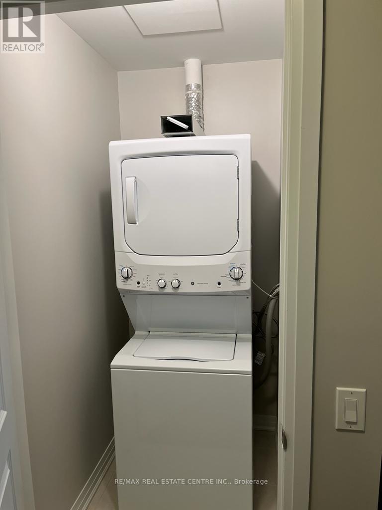Enjoy this bright and modern (613 sq ft plus 63 sq ft balcony) unit in the Soleil Condos which is a blend of comfort and convenience. Located in one of the best locations of Milton, this unit comes with spacious open-concept floor plan with combined Living/Dining, 1 Bedroom plus Den, 1 bathroom, ensuite laundry and a decent sixed balcony to enjoy during summer months. This home welcomes you with neutral finishes throughout. Modern gourmet kitchen features central island, upgraded cabinets and Laminate Floors, Spacious bedroom and a separate den which can be used as a bedroom or office space.. Views of the Escarpment from the Balcony. The building amenities include security, visitor parking, party/meeting room, gym, and roof-top terrace. Comes w/ Latest Smart technology to navigate the features in the home. Conveniently located near parks, shops, Niagara Escarpment, Milton Hospital and Mattamy National cycling Centre. Includes 1 Parking and 1 Locker (id:4555)
