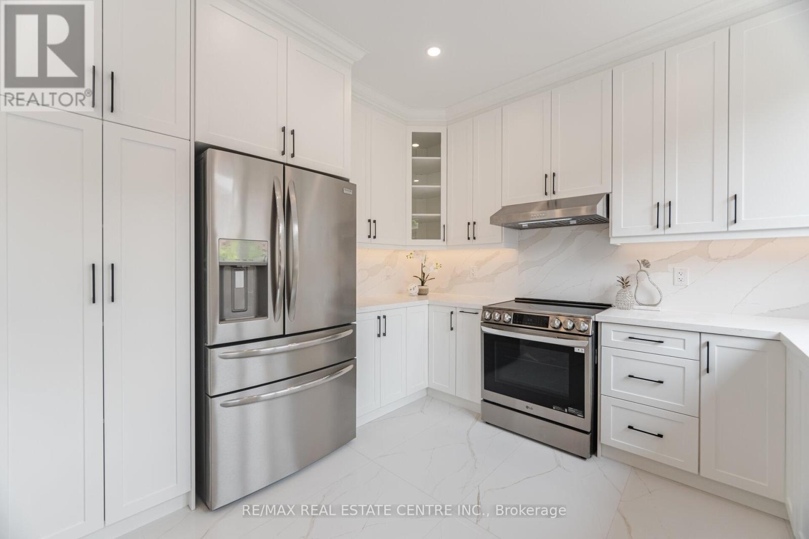 Welcome to your dream home! This beautifully renovated 4-bedroom, 3-bathroom detached house has been upgraded from top to bottom with exquisite attention to detail and high-end finishes throughout. Step into a spacious, modern-style, brand-new kitchen featuring stainless steel appliances, quartz countertops, a matching backsplash, and elegant ceramic tile flooring. The open-concept main floor boasts smooth ceilings, rich new hardwood floors, and stunning crown Molding in the living, dining, and family rooms. The cozy family room is complete with a fireplace and stylishly designed accent walls-perfect for relaxing or entertaining. Both levels of this home are illuminated by tons of pot lights, adding a sleek, contemporary touch. The custom staircase with pickle iron railings adds to the upscale charm of the home. Retreat to the luxurious primary suite, which features a 5-piece ensuite bathroom with a frameless glass shower, modern lighting, and a spa-like atmosphere. The second upstairs bathroom has also been fully renovated, showcasing an LED-lit vanity mirror and an elegant glass shower enclosure. Potential Separate entrance from the garage. Enjoy the outdoors in a well-maintained backyard with a garden shed-ideal for summer barbecues and family gatherings. The double-car garage offers ample parking and storage. This move-in-ready gem truly has it all-style, space, and sophistication. Don't miss your chance to call this beautiful property home! (id:4555)
