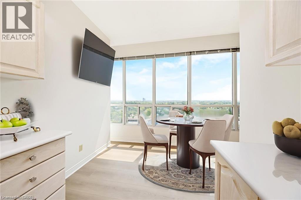 RARE SKY SUITE SOUTH FACING CONDO ... it's HIGHER than the PENTHOUSE! Breathtaking unobstructed Escarpment views - see the CN Tower on a clear day! We never see these units offered for sale. This highly sought-after condo has it all: 2 BEDROOMS + DEN, THREE BATHROOMS (Jack n Jill updated to large walk-in shower), HIGH 9' CEILINGS, 2 UNDERGROUND PARKING SPOTS (1 owned, 1 exclusive use), 2 OWNED LOCKERS, UTILITY ROOM in suite and it boasts a whopping 1625 SF ... one of the LARGEST condos in the building. Enjoy the spacious and bright living area w/ massive windows all around to highlight the most spectacular views. The kitchen offers a breakfast area, some updated Samsung and Bosch appliances and a convenient pantry. The combined open concept living and dining room is large enough for extended family celebrations and has loads of massive windows to highlight the stunning views. There are 2 generous bedrooms, one of which is the primary bedroom with walk-in closet and convenient 5-pc ensuite. The den is large enough to be used as a THIRD BEDROOM. Additional features include: $30,000+ in recent upgrades (2025): entire unit has been professionally painted throughout in a neutral tone (Benjamin Moore paint), upgraded lighting, new blinds in bedrooms and new flooring with higher-end sound insulation than required. The unit is also CARPET-FREE, there is in-suite laundry with in-suite walk-in utility room. The building includes a renovated lobby, indoor pool, sauna, fitness area, party room, car wash, community BBQ area and plenty of visitor parking. This is an exceptionally well-run complex in an excellent school district and is centrally located. It is a short walk to restaurants, shops, summer Farmers Market, schools, parks, beautiful Mill Pond and Milton's vibrant downtown. Condo Fees Include Heat, Hydro, Water, Bell Bulk TV & Internet, Parking, Building Insurance and Maintenance of Common Areas. MOVE IN and ENJOY ... Simplify Your Life! *Some photos virtually staged (id:4555)