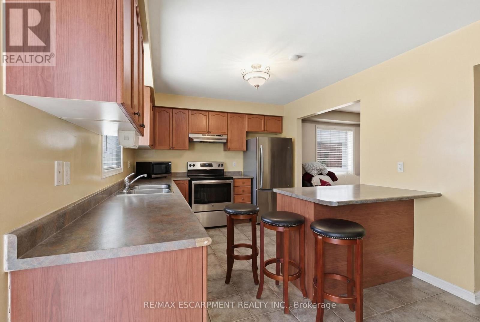 End-unit townhome with large, open-concept floor plan. Living/dining room with hardwood flooring. Kitchen includes breakfast bar, walkout to backyard and eat-in breakfast area. Great location close to woodlot/trails and parks. Easy highway access and close to shopping/schools. Large bedrooms and bonus den/study nook on the second floor currently being used as a home gym. Basement is partially finished for added living space. (id:4555)