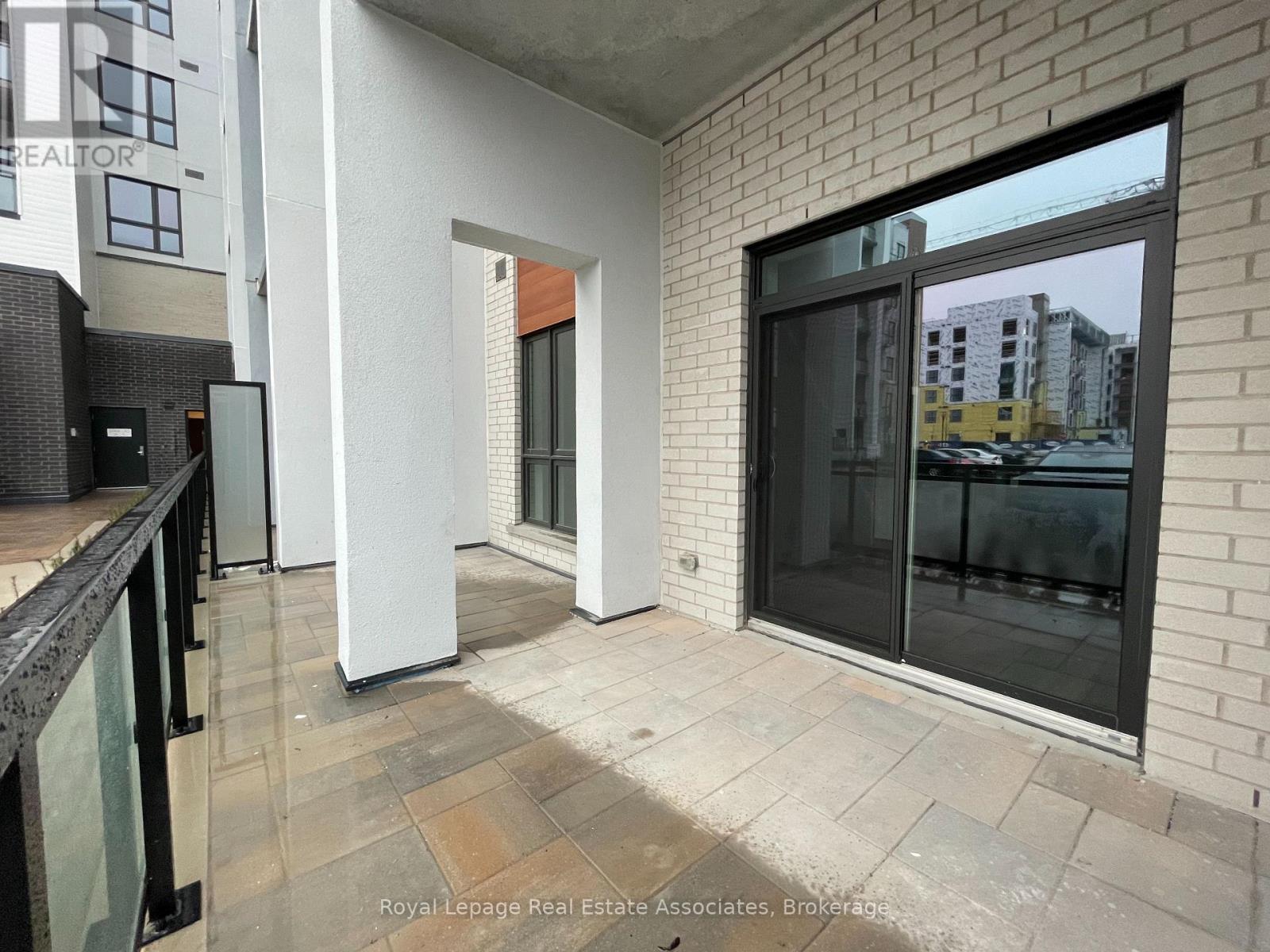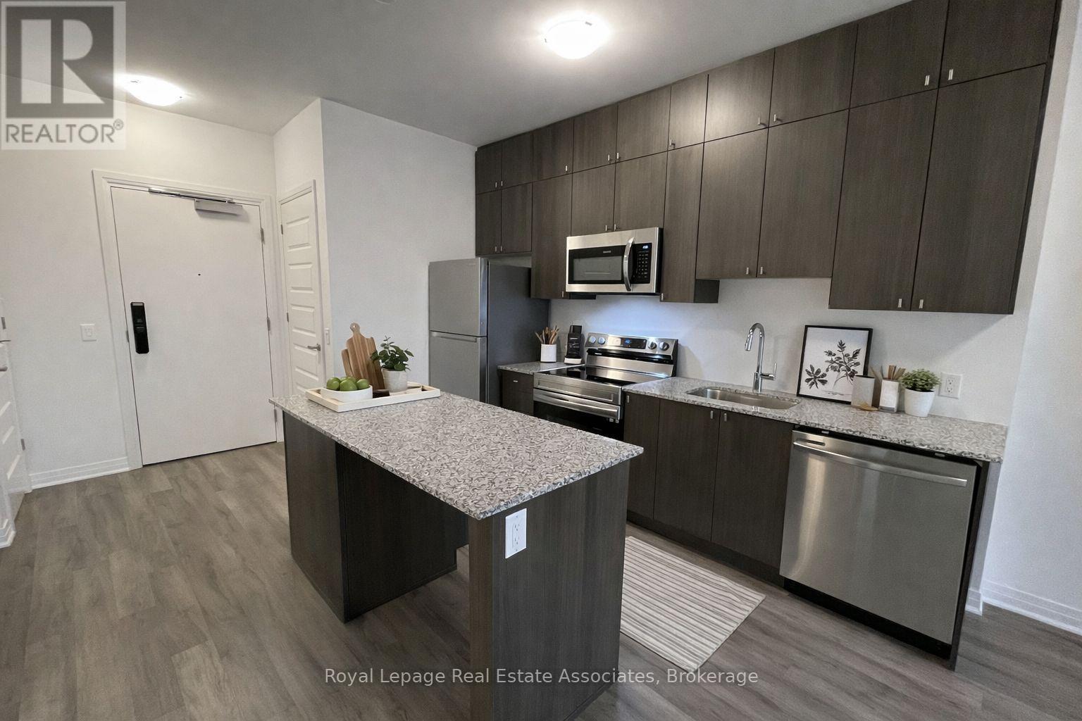 Mattamy-built, main floor suite with 9" ceilings! Enjoy the SS appliances in the upgraded gourmet kitchen with quartz countertops, modern cabinetry & over-sized island with seating! Primary bedroom has upgraded mirrored closets, a separate den that can used for an office and an upgraded washroom with custom glass shower. Open-concept living area overlooks the extra-deep terrace for summer entertaining; the terrace is also easy for move-ins, going out and grocery drop-off. Comes with 1 parking,1 locker and ensuite laundry. The building amenities include security, tons of visitor parking, party/meeting room, gym and roof-top terrace. Equipped With The Latest In Smart Technology To Control Your Suites Features/Concierge Communication. Conveniently located near to parks, shops, Niagara Escarpment, recreation centre and Milton Hospital. Don't miss this opportunity to live in this amazing home! (id:4555)