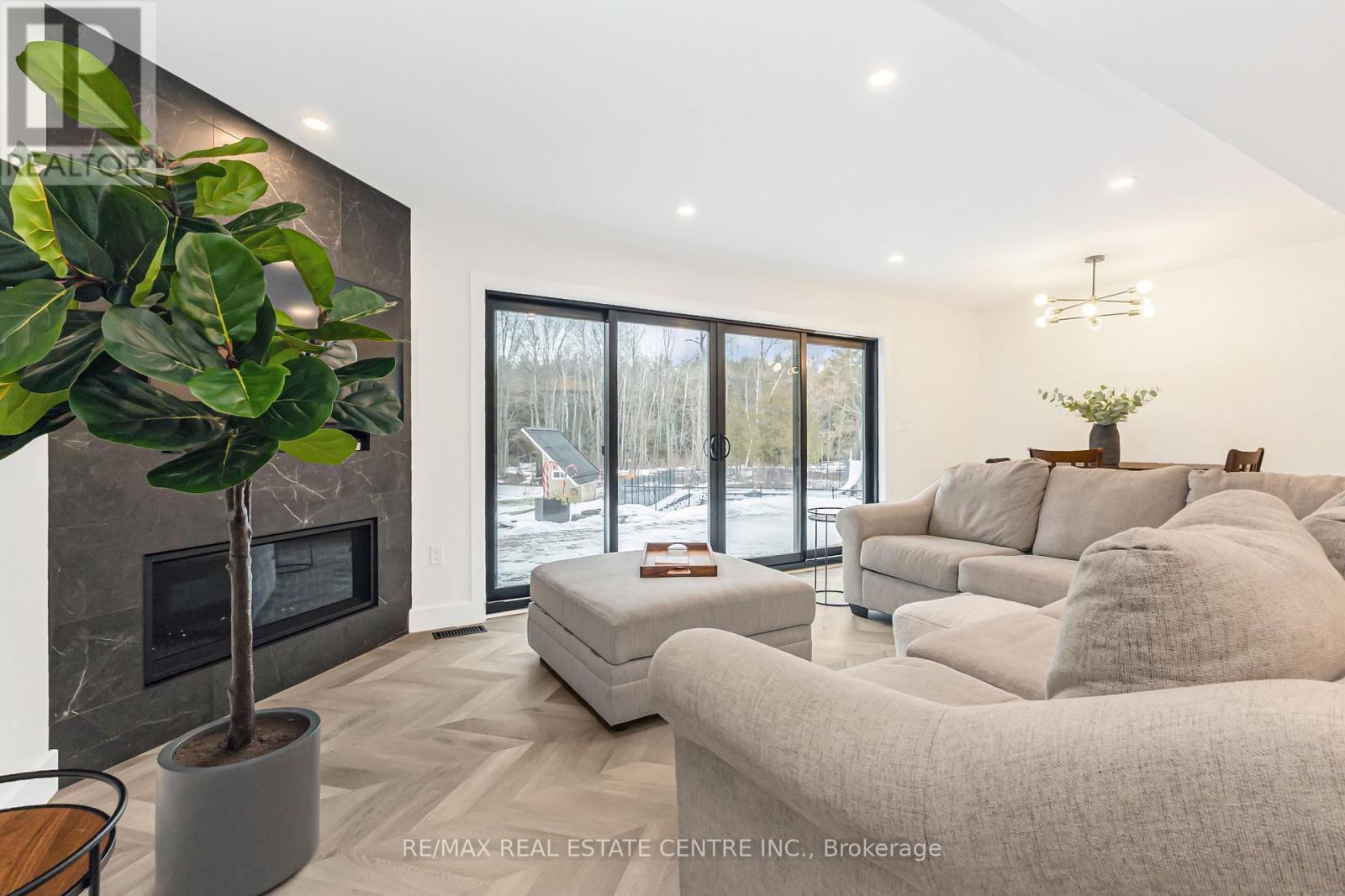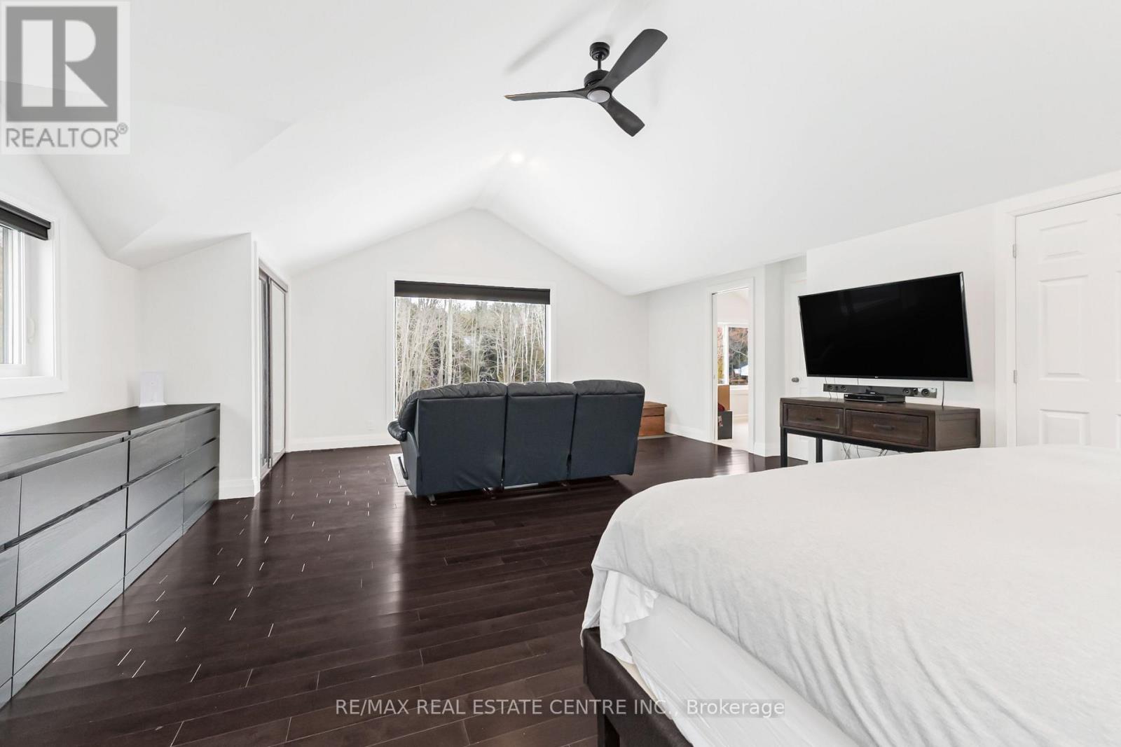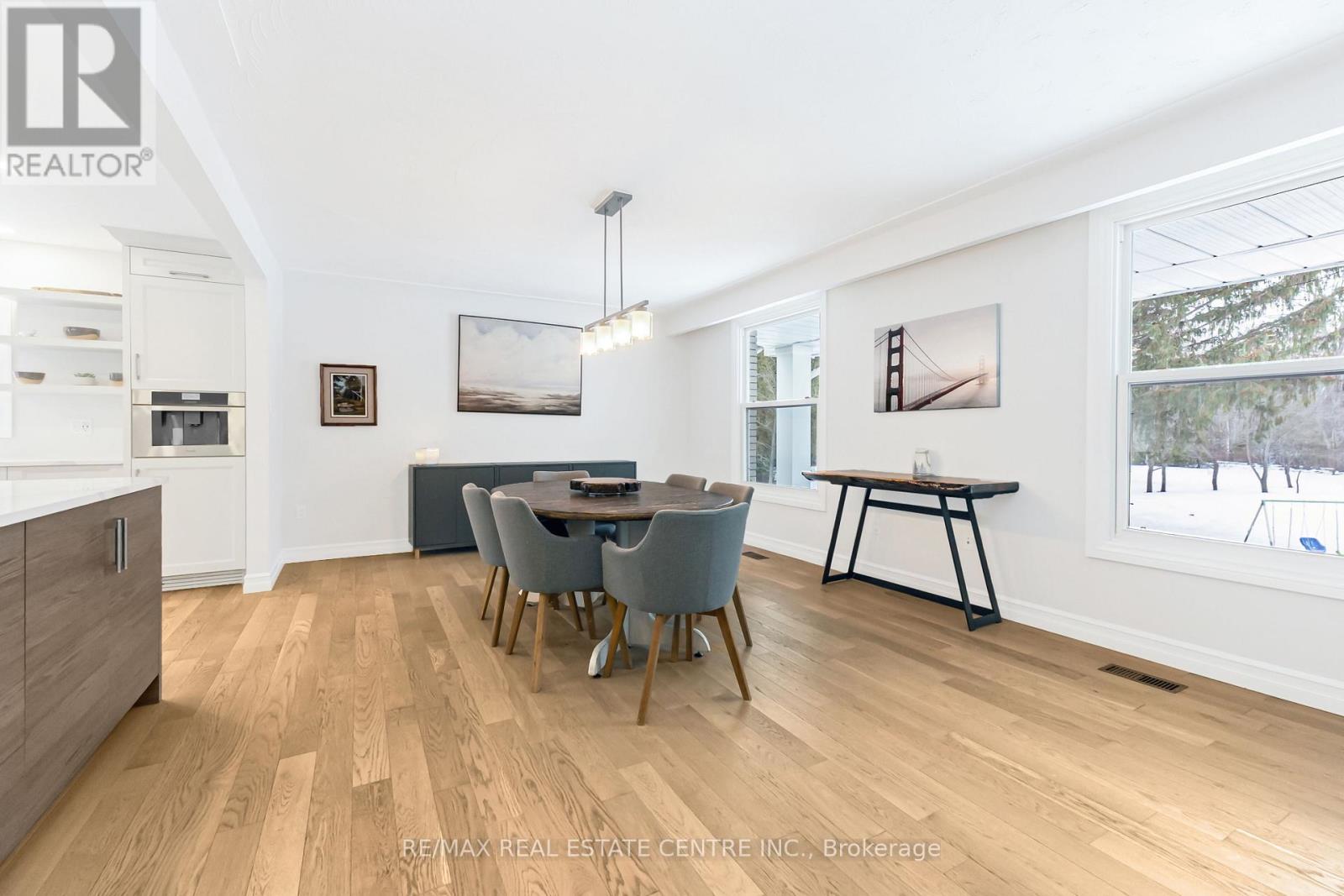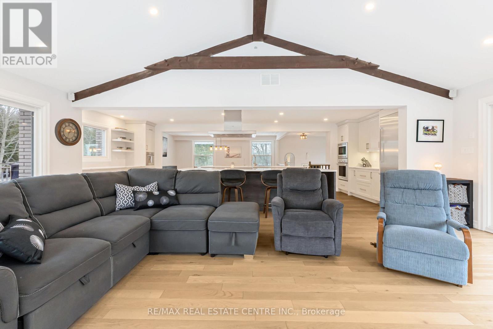 An exceptional opportunity to own luxury acreage offering multi-generational living and a spa-like lifestyle surrounded by nature - gently priced for outstanding value. Set on approximately 5 acres, this beautifully upgraded raised bungalow offers two self-contained living spaces with separate private entrances, interior access, and separate septic systems. Ideal for extended family living or flexible use. The walk-out basement provides excellent natural light and functionality. Features include a chef-inspired kitchen with premium appliances, high-end finishes, and spacious living areas opening to a wraparound balcony with stunning views of mature trees, a flowing stream, and a natural pond. Enjoy resort-style outdoor living with a heated saltwater pool, landscaped grounds, and a fully serviced cabin with hydro and internet - ideal for guests, studio, or workspace. A separate 4-car garage with upper loft offers future potential to finish for office, gym, or hobby use (buyer to verify permitted use).Energy-efficient property with high-efficiency heating systems for both living areas, plus separate heat pumps for the pool and cabin, helping reduce operating costs. A rare opportunity combining privacy, lifestyle, and value. Just 10 minutes to the 401, 7 minutes to highway 6, and 35 minutes to Pearson Airport. (id:4555)