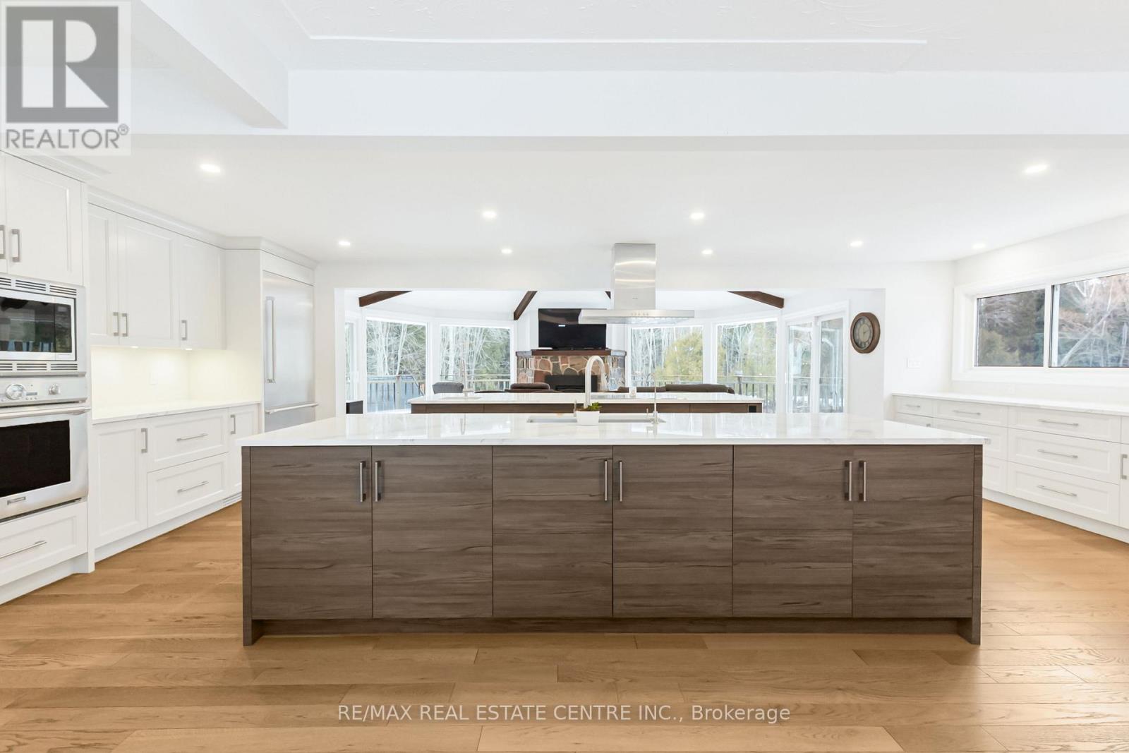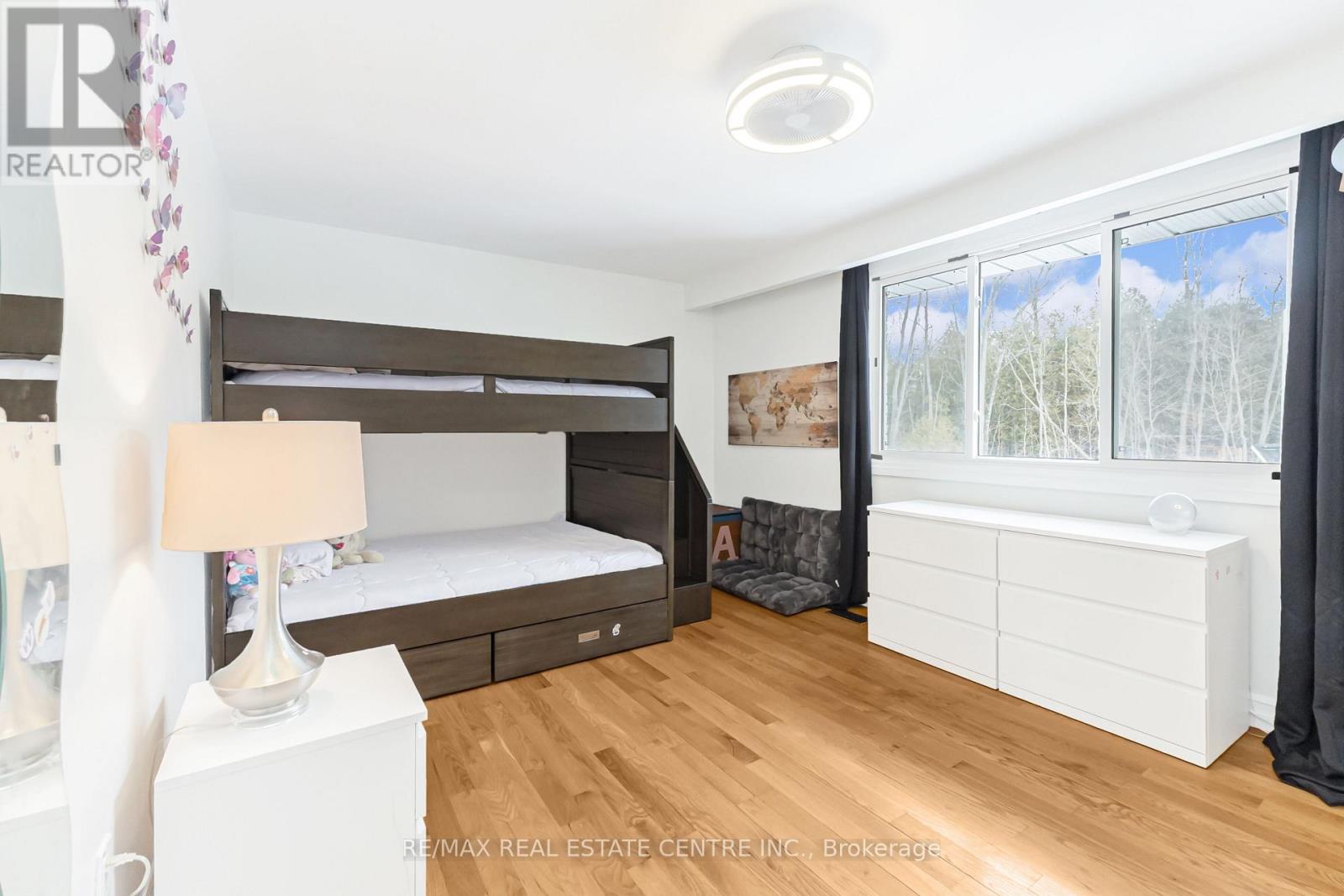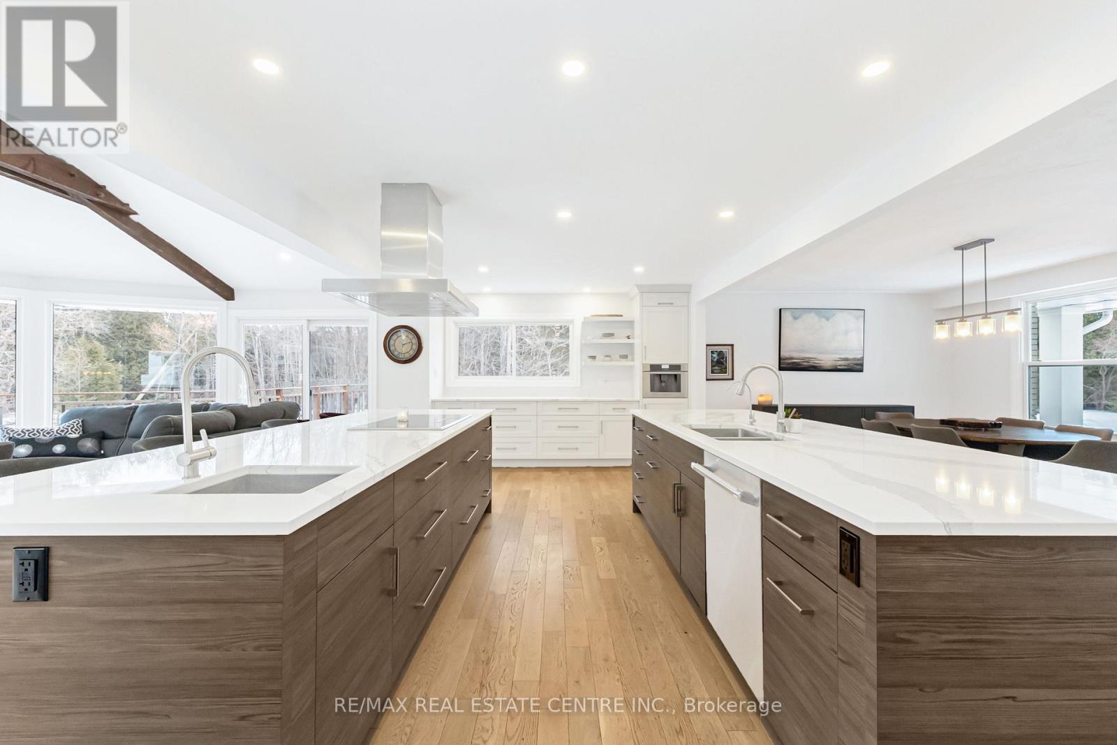 An exceptional opportunity to own luxury acreage offering multi-generational living and a spa-like lifestyle surrounded by nature - gently priced for outstanding value. Set on approximately 5 acres, this beautifully upgraded raised bungalow offers two self-contained living spaces with separate private entrances, interior access, and separate septic systems. Ideal for extended family living or flexible use. The walk-out basement provides excellent natural light and functionality. Features include a chef-inspired kitchen with premium appliances, high-end finishes, and spacious living areas opening to a wraparound balcony with stunning views of mature trees, a flowing stream, and a natural pond. Enjoy resort-style outdoor living with a heated saltwater pool, landscaped grounds, and a fully serviced cabin with hydro and internet - ideal for guests, studio, or workspace. A separate 4-car garage with upper loft offers future potential to finish for office, gym, or hobby use (buyer to verify permitted use).Energy-efficient property with high-efficiency heating systems for both living areas, plus separate heat pumps for the pool and cabin, helping reduce operating costs. A rare opportunity combining privacy, lifestyle, and value. Just 10 minutes to the 401, 7 minutes to highway 6, and 35 minutes to Pearson Airport. (id:4555)