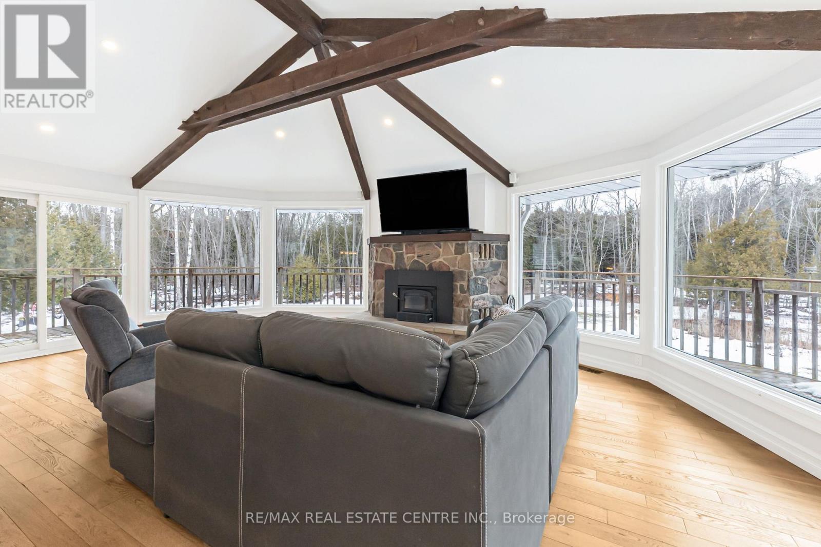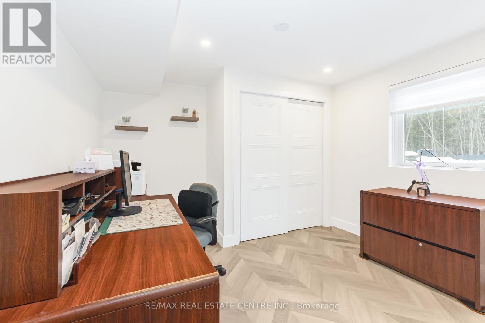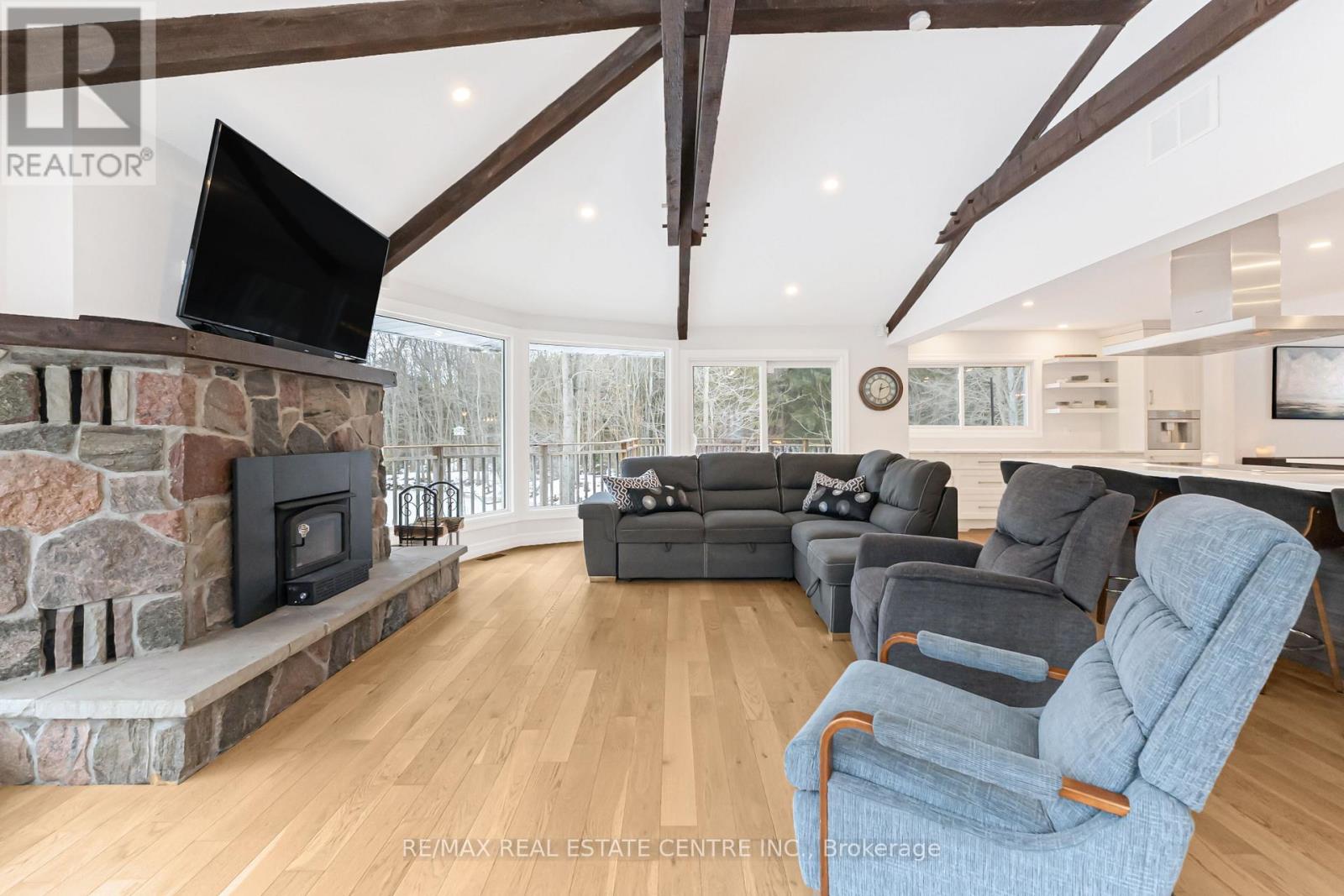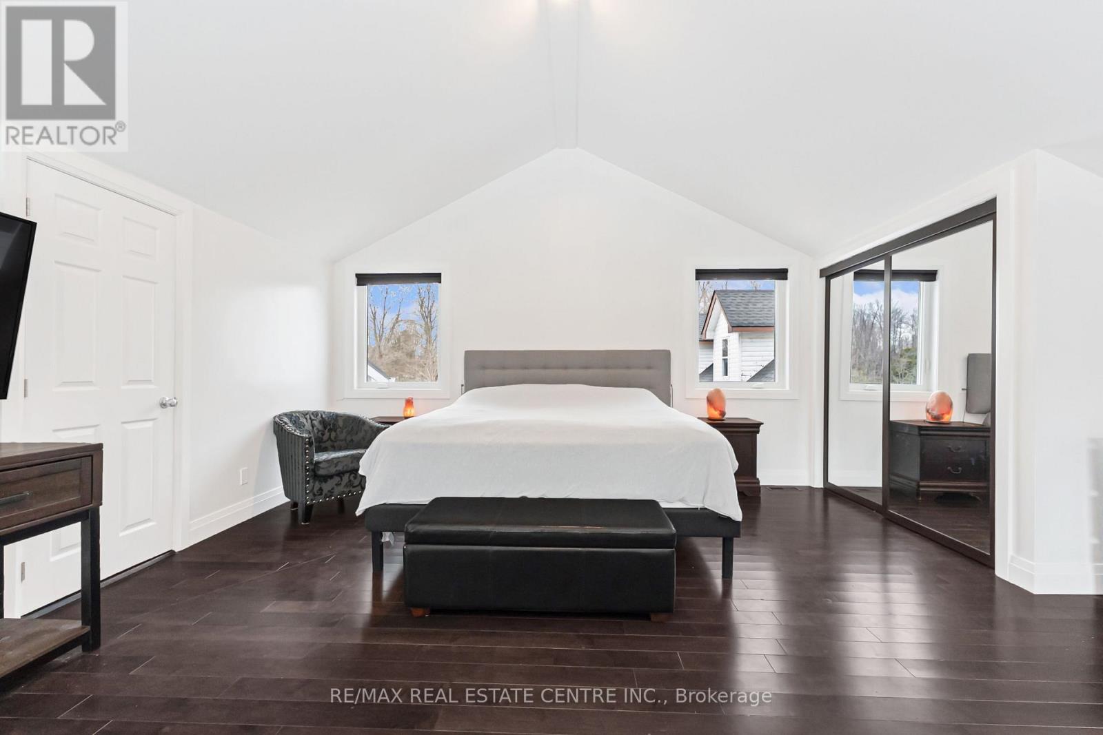 An exceptional opportunity to own luxury acreage offering multi-generational living and a spa-like lifestyle surrounded by nature - gently priced for outstanding value. Set on approximately 5 acres, this beautifully upgraded raised bungalow offers two self-contained living spaces with separate private entrances, interior access, and separate septic systems. Ideal for extended family living or flexible use. The walk-out basement provides excellent natural light and functionality. Features include a chef-inspired kitchen with premium appliances, high-end finishes, and spacious living areas opening to a wraparound balcony with stunning views of mature trees, a flowing stream, and a natural pond. Enjoy resort-style outdoor living with a heated saltwater pool, landscaped grounds, and a fully serviced cabin with hydro and internet - ideal for guests, studio, or workspace. A separate 4-car garage with upper loft offers future potential to finish for office, gym, or hobby use (buyer to verify permitted use).Energy-efficient property with high-efficiency heating systems for both living areas, plus separate heat pumps for the pool and cabin, helping reduce operating costs. A rare opportunity combining privacy, lifestyle, and value. Just 10 minutes to the 401, 7 minutes to highway 6, and 35 minutes to Pearson Airport. (id:4555)