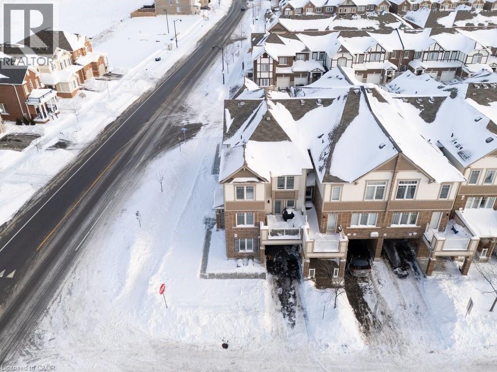 Welcome to this end-unit, 3-storey townhouse located in Milton’s desirable Ford neighbourhood. This well-designed home offers an open-concept layout with upgraded flooring throughout the main living areas, along with the added privacy of an end-unit setting and no sidewalk crossing the driveway, maximizing usable space. The ground level features a versatile bedroom, also well-suited for use as a den or home office, along with a 3-piece bathroom and convenient inside entry from the garage, offering excellent flexibility for everyday living. The second level showcases a bright great room and dining area, complemented by a modern kitchen with quartz countertops, breakfast bar, stainless steel appliances, backsplash, and garden door walkout to a large balcony. Upstairs, the primary bedroom retreat includes a private ensuite with glass shower, alongside two additional bedrooms and a 4-piece main bath. Ideally located within walking distance to schools and parks, and just minutes to shopping, amenities, public transit, and major highways, this move-in-ready home delivers comfort, style, and everyday convenience. (id:4555)