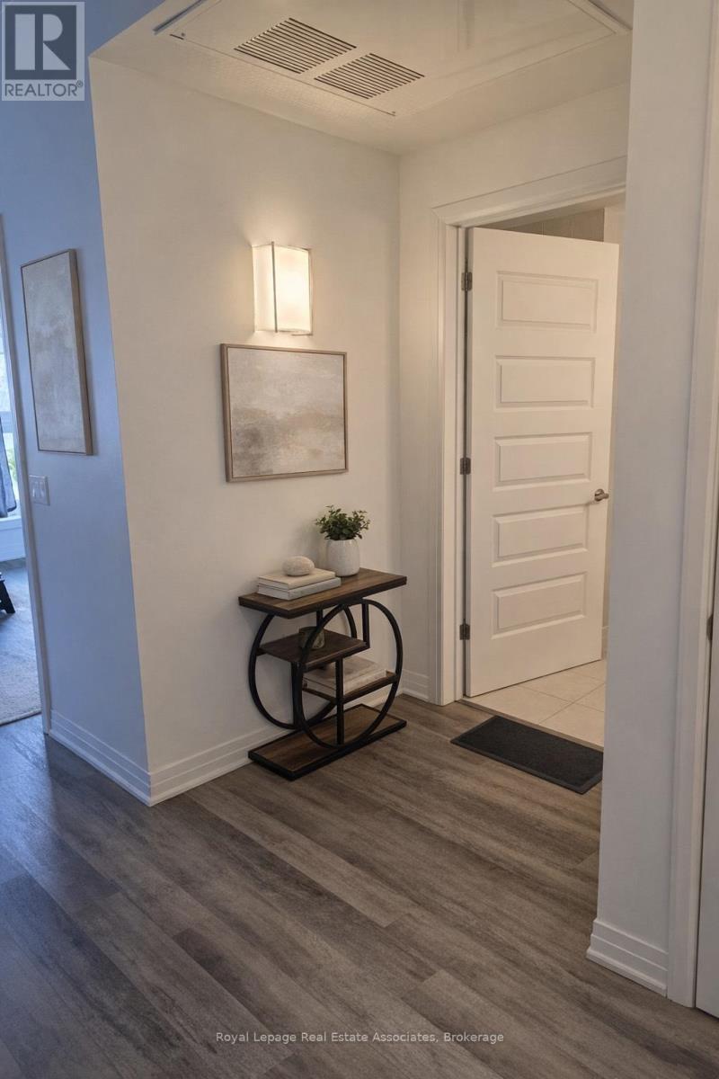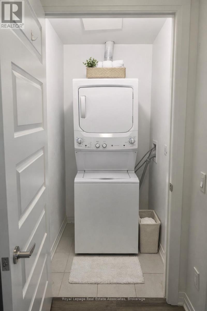 Available April 1. Experience refined modern living in this elegant and spacious 1-bedroom, 1-bathroom ground-floor condo, located in the prestigious Walker community of Milton. Offering 557 sq. ft. of thoughtfully designed interior living space, complemented by an impressive 248 sq. ft. private patio, this residence delivers a seamless blend of sophistication, comfort, and functionality. The contemporary open-concept layout is enhanced by soaring 9-foot ceilings, creating a bright and airy atmosphere throughout. Includes one underground parking space and one locker for added convenience. Residents enjoy access to exceptional, hotel-inspired amenities including a state-of-the-art fitness centre, beautifully appointed social lounge, rooftop terrace, tranquil courtyard, and 24-hour concierge service. Ideally positioned steps from parks and scenic trails, and conveniently close to upscale shopping, dining, top-rated schools, hospitals, GO transit, and major highways-offering effortless connectivity for today's lifestyle. An exceptional opportunity to lease a luxury residence in one of Milton's most sought-after communities. (id:4555)