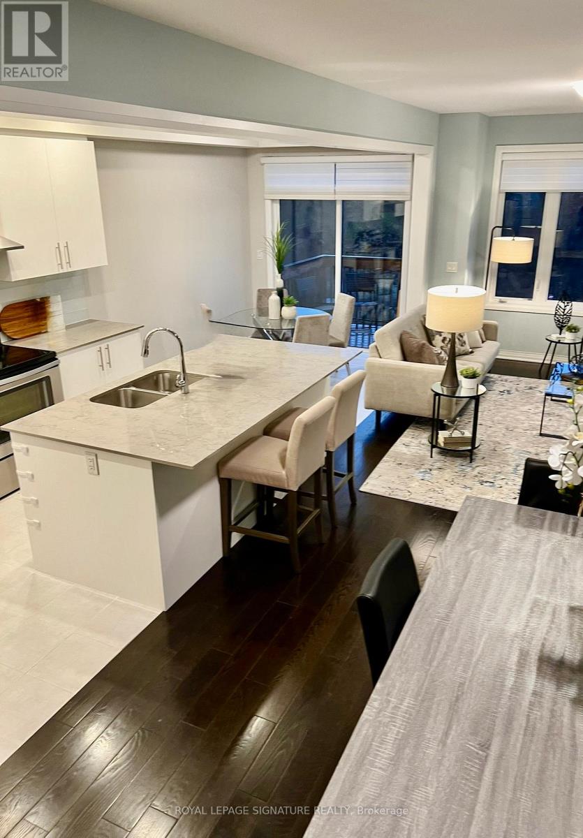 Stunning freehold end-unit townhouse (2018) with 1,778 sq. ft. above grade, attached only by the garage and backing onto serene greenspace. Thoughtfully upgraded with hardwood floors on both levels, smooth ceilings, and 9-ft ceilings on the main floor. Bright, modern eat-in kitchen with quartz countertops, oversized island, and abundant storage. Luxurious primary retreat with a large walk-in closet and 5-piece ensuite. Second bedroom offers a walkout to a private balcony. Direct garage access to the House. Basement has large windows and walkout to the backyard. Great Location, Highways access, Schools, Hospital, Restaurants, Shops, And Walking Trails! (id:4555)