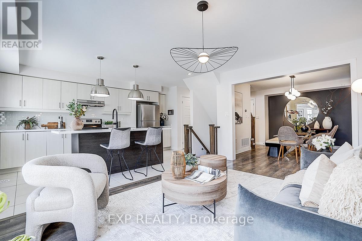 Absolutely Stunning Mattamy-Built Freehold End-Unit (No POTL/Fees) in Prime Milton! This rare end unit feels like a semi & boasts an exceptionally smart, square-shaped layout with no wasted space. The 2nd floor is a highlight, featuring a bright, open-concept design with a formal dining area and a spacious Great Room. Large windows throughout flood the space with natural light, leading to an oversized deck for seamless indoor-outdoor living. Modern kitchen includes upgraded quartz countertops, S/S appliances, & pantry. Upper level offers 3 generous bedrooms, including a primary room w/ W/I closet & 4-pc ensuite. Upgrades Galore: Elegant high-end light fixtures, freshly painted throughout, quartz counters in kitchen& baths, and premium laminate flooring on the 3rd floor. Steps to schools, parks, & transit. Mins to Milton GO & Hwy 401/407. (id:4555)