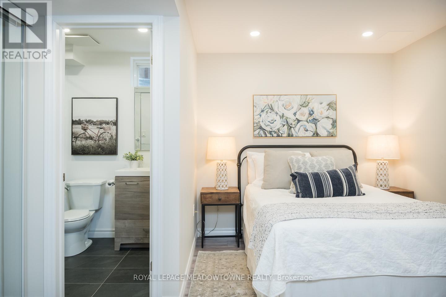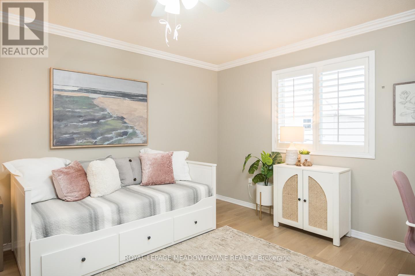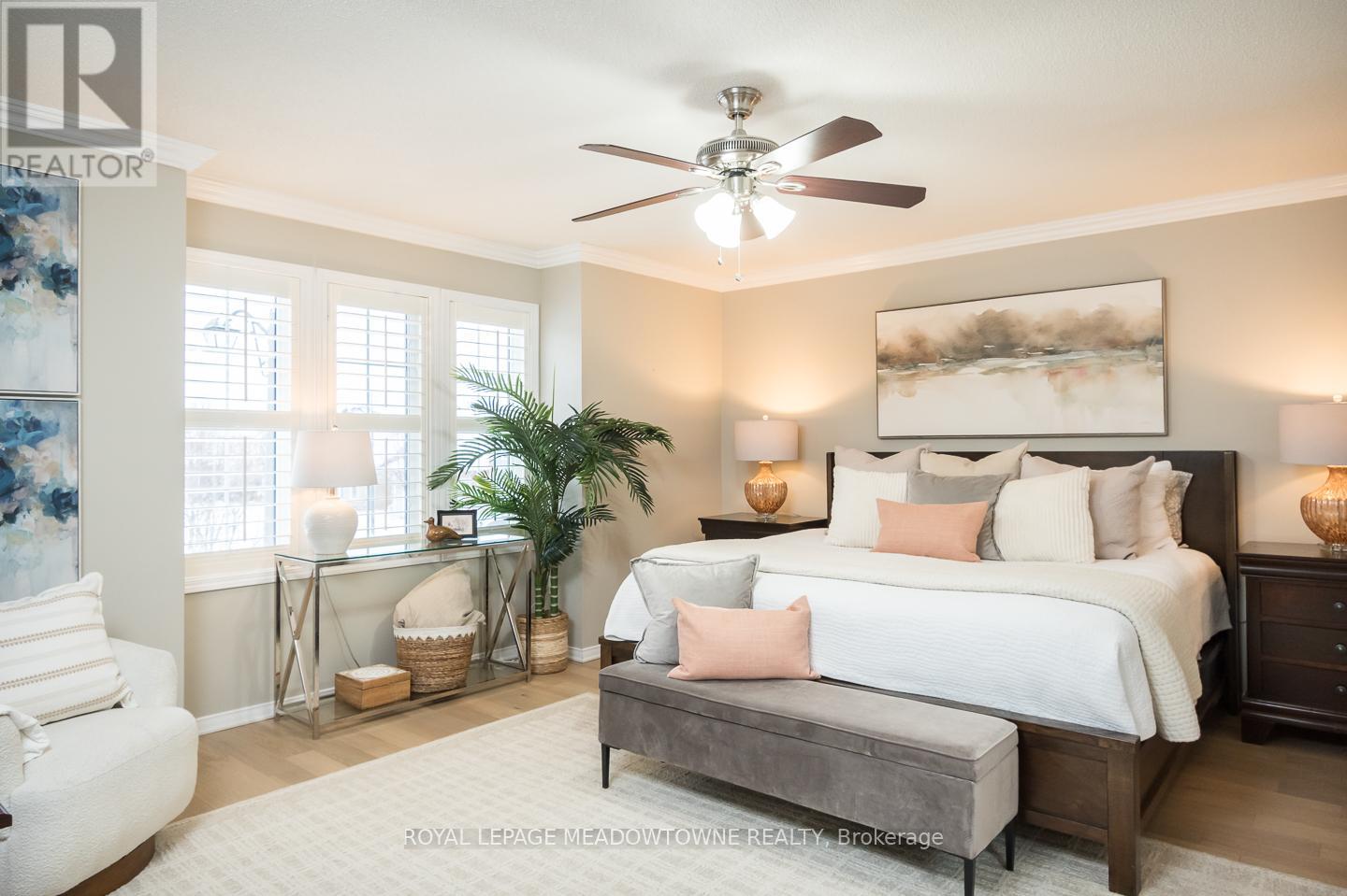 Located in the desirable Beaty neighbourhood of Milton, this beautifully maintained home offers an exceptional blend of space, updates, and commuter convenience. Within walking distance to parks, schools, and everyday amenities and with quick access to the 401, 407, and GO Station, the location is ideal for busy families and professionals alike. The home features impressive curb appeal with a large covered front porch, no sidewalk, and parking for up to six vehicles including a double car garage with interior access. Inside, 9-foot ceilings, crown mouldings, hardwood flooring, upgraded lighting, pot lights, and a neutral colour palette enhance the open-concept main floor, which also includes a powder room. The bright eat-in kitchen showcases granite countertops, tile backsplash, stainless steel appliances and direct access to the fully fenced backyard with a low-maintenance concrete patio and garage walk-through. Upstairs, three generously sized bedrooms include a spacious primary retreat with walk-in closet and 4-piece ensuite, complemented by an updated main bath and laundry room. The beautifully finished basement (2023) adds valuable living space with a large rec room, bonus office space, bedroom, and full bath, perfect for guests or extended family. Major updates include furnace and air conditioner (2022) and roof (2023), offering peace of mind and move-in-ready comfort. (id:4555)