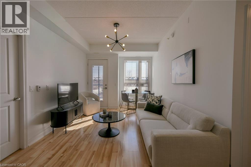 Enjoy upscale living in this beautiful 2-bedroom condo with serene pond views. Offering over 800 sq ft of well-designed living space, this unit features a functional layout with 9-ft ceilings, extended-height kitchen cabinetry, stainless steel appliances, and granite countertops. Large windows flood the space with natural light and showcase sunny southern exposure. Step out onto your private balcony to enjoy your morning coffee while taking in peaceful nature views. Conveniently located just minutes from major highways and steps to schools, parks, and walking trails. Extras include: underground parking close to the entrance, stainless steel fridge, stove, dishwasher, washer and dryer, electric light fixtures,curtains. Garbage room is conveniently located near the unit, and a locker is directly across from the unit. (id:4555)