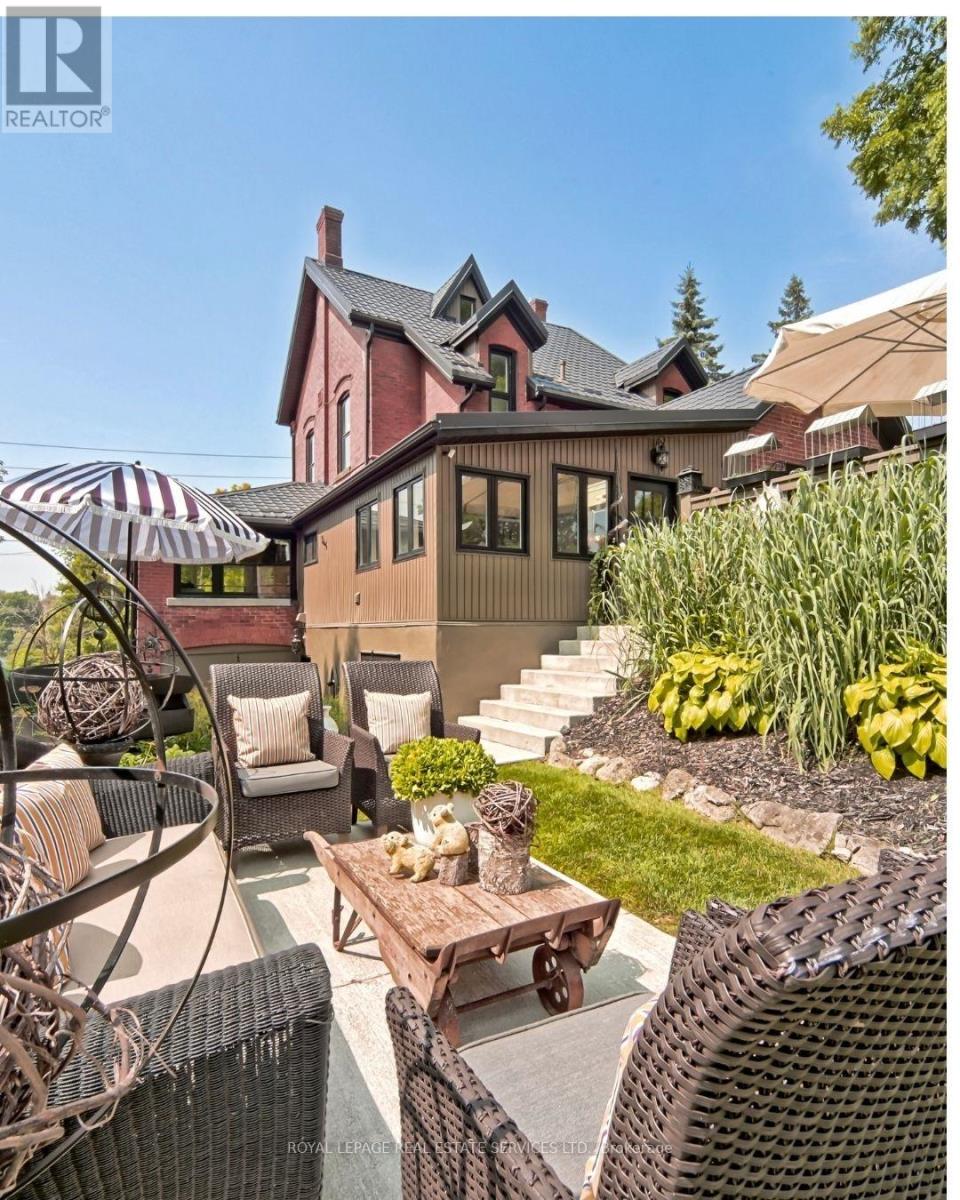 Renovated Mixed-Use Gem on Main Street. This stunning circa 1890 build blends historic charm with modern updates and offers mixed-use zoning in the heart of Campbellville across from Conservation Area. All four levels are above grade thanks to the unique topography, providing exceptional natural light and flexibility throughout. The layout is currently configured as separate residential units for multi-generational living. The Street Level features its own entrance off Main Street, a large family room, bedroom/office, full bath and interior access to storage/garage. The Main Floor features 10' ceilings, 8' doorways, windows on all four sides and rich hardwood floors. The beautifully reno'd kitchen incl.: quartz counters, floor to ceiling cabinets, a side-by-side fridge/freezer, Wolf gas stove, s/s dishwasher, views of the outdoors plus large pantry. A welcoming family room with vaulted ceiling walks out to the terrace & backyard. The spacious living room offers a gas fireplace and windows on three sides and the expansive dining room sits at the heart of the home. Two bedrooms, a stylish 4-piece bath and a laundry room with quartz counters complete this level. The Second Floor (with separate access) has pine floors, a full kitchen, living room, bedroom, large closet. The Top Floor Loft/Bedroom is an open space with tin-clad dormer ceilings, north/south views, pine floors and a privacy door. Outside enjoy mature landscaping, a pergola, fire pit, private terraces, a workshop and storage/garage. Private driveway for 2+ cars. Whether you're looking to continue as a multi-generational home, open a professional office or explore other permitted uses, this property offers incredible flexibility and value. Campbellville is a hub for outdoor enthusiasts with access to Hilton Falls, Kelso and cycling routes like the Limehouse Loop, Escarpment View and Heat Map 100. With its unique MIXED USE ZONING, flexible layout and scenic location, this is a rare and exceptional offering! (id:4555)