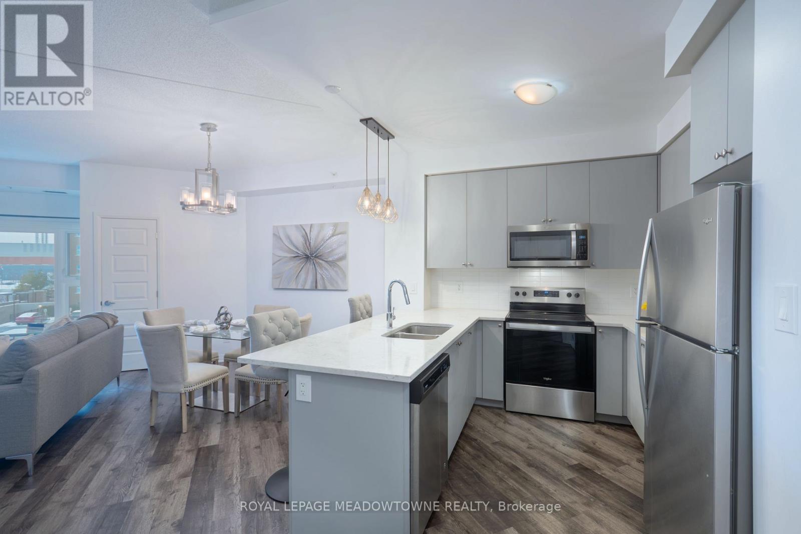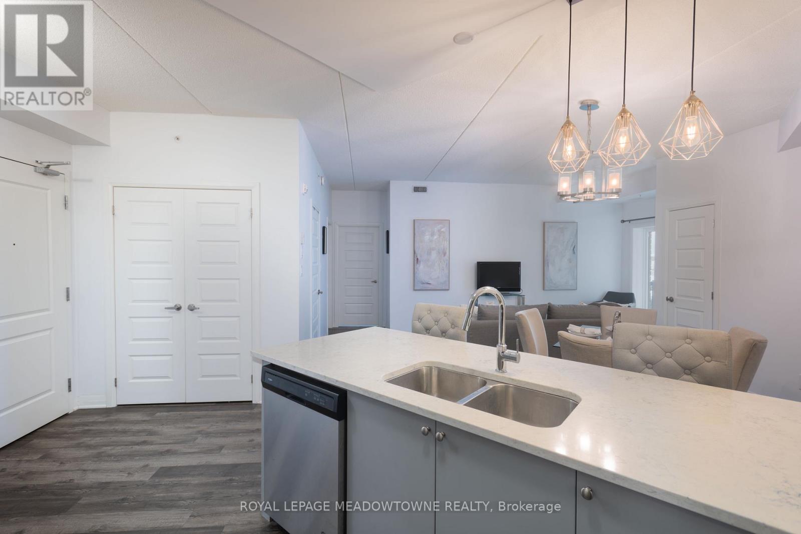 ***1 YEAR FREE MAINTENANCE FEES*** Discover stylish condo living in this beautifully designed one-bedroom suite offering a fantastic open-concept layout and upscale finishes throughout. Featuring a seamless flow from the sleek, contemporary kitchen to the bright living area, this inviting home is ideal for both relaxing evenings and entertaining guests. The chef-inspired kitchen is a true highlight, complete with stainless steel appliances, elegant countertops and backsplash, and high-end light fixtures that add a refined, sophisticated touch. The spacious bedroom easily accommodates a full bedroom set and boasts a large walk-in closet, and a perfect walkout to the private balcony. While the well-appointed bathroom offers ample storage and stylish finishes. Flooded with natural light and enhanced by quality flooring and thoughtful design details, this condo delivers both functionality and flair. Enjoy the added convenience of one underground parking space and one storage locker. Ideally located close to schools, shopping, the hospital, and with easy highway access, this is a perfect opportunity for first-time buyers, downsizers, or savvy investors. Don't miss your chance to call this stunning unit home-book your private showing today! (id:4555)