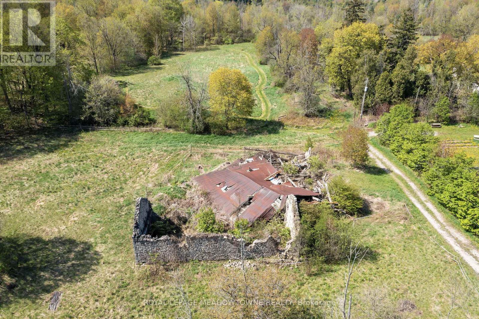 83 Acre Farm Land Opportunity - Iconic Stone Farmhouse, Forest & Fields. This 83-acre-property - located just south of Hwy 401 and north of Campbellville on a paved road - offers a compelling blend of open fields and mature forest. It creates an idyllic setting for a private estate, retreat, or the revival of a working homestead farm. Many years ago, the fields were in crops and pasture where horses once roamed. Padlocks existed in 2022. With vision and care, this former farmstead can be brought back to life - for crops or equestrian uses. At the heart of the property stands an 1890 Ashlar stone, 1 1/2 storey farmhouse that has withstood the test of time, proudly retaining the timeless beauty of its original stone exterior. Renovated in the 1950's, it presents an exceptional opportunity to restore, renovate or incorporate its impressive facade into a truly magnificent custom estate home feature. Also on the property are the distinctive ruins of a grand 1890's stone bank barn. The barn's enduring footprint offers lots of options. Zoned A2, the property includes a very small portion of wetland in the northern area and Killbride Creek running through the northwest corner, bordering the Pioneer Creek Trail. The land is not within the NEC mapping, offering fewer building restrictions. This is a once-in-a-lifetime opportunity to own legacy farmland rich in history, natural beauty and endless future potential. Zoned Residential and A2 with no farm credit applied. The property may be subject to HST. The property has not been farmed for a long term. Two lots have been previously severed from the property. Frontage calculated by property width to the North and Southern lot lines. Centrally located near Milton, Campbellville, Highway 6 and the 401, this rare offering combines natural beauty, rich history, and the potential to restore a working farm or develop a showpiece country estate. (id:4555)
