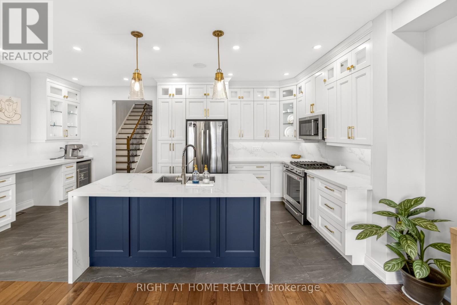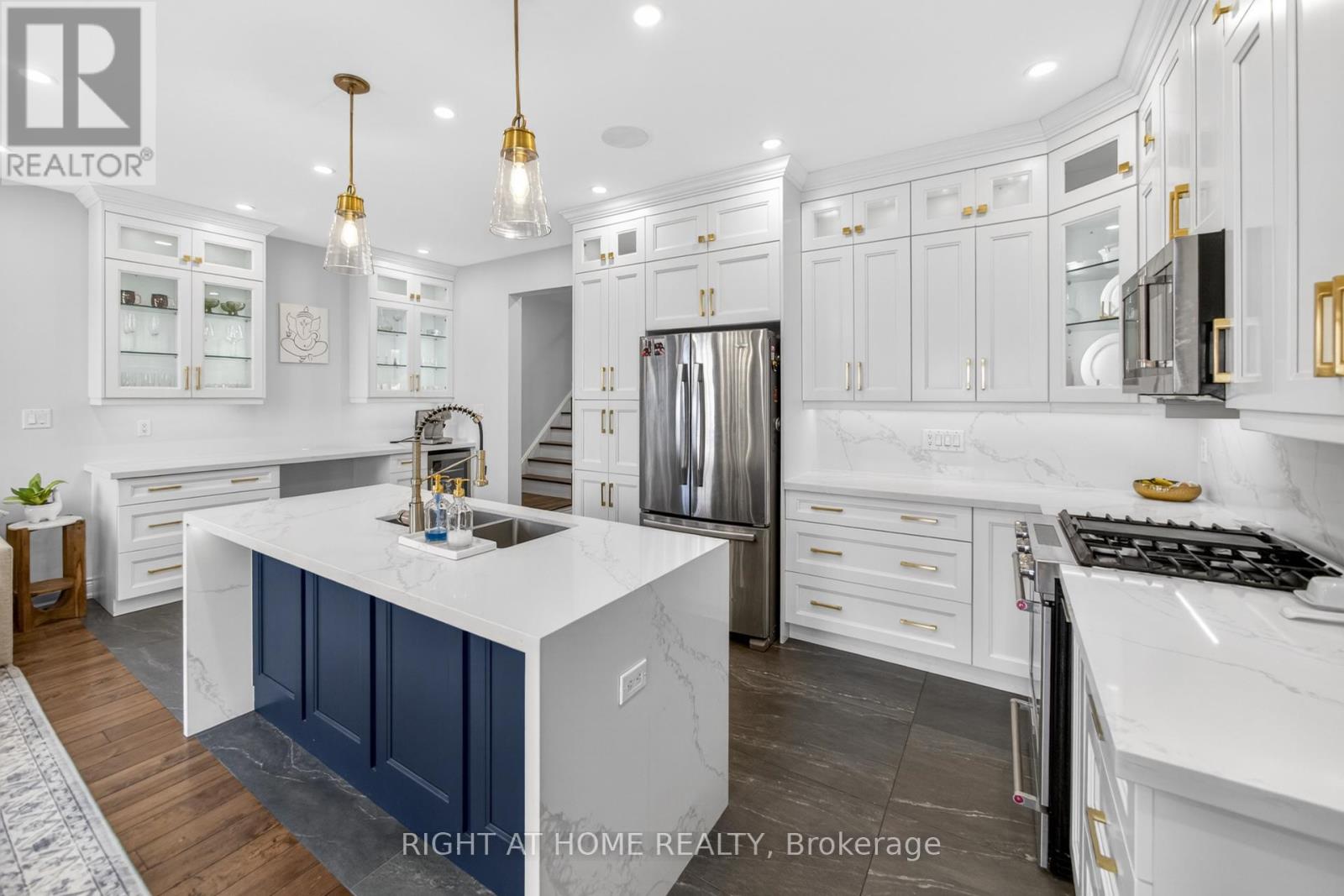 FULLY UPGRADED - Stunning and One of a Kind Home with 4-bedrooms Semi in the heart of Milton's highly sought-after Coates neighbourhood. Tastefully decorated and meticulously maintained, this move-in-ready home offers a perfect blend of comfort, style, and functionality for modern family living. Enter through the grand double doors to a spacious foyer with custom built-in cabinetry in the front hall, a visually appealing storage solution for winter coats and shoes. The main level features hardwood flooring in dining and great room, creating a warm and cohesive flow. The spacious great room is anchored by a stunning contemporary fireplace, adding both style and ambiance to the living space. The upgraded, one-of-a-kind kitchen is truly a masterpiece, thoughtfully designed with premium finishes and elegant premium flooring, making it ideal for everyday living and entertaining. The 9' ceilings on the main level make the open-concept kitchen and great room seem even larger, and the separate dining room is perfect for hosting. You will love the kitchen with custom cabinetry to the ceiling with crown mouldings, an over-sized quartz centre island, coffee/wine bar and stainless steel appliances and w/o to the rear yard. Upstairs, you'll find four generously sized bedrooms with laminate flooring throughout, offering a durable and cohesive, carpet-free living environment. The fully finished basement extends the living space further and includes laminate flooring and a 2 piece fourth washroom, perfect for a recreation room, or home office with lots of storage. Ideally located steps from Tiger Jeet Singh Public School, and close to parks, playgrounds, walking trails, Milton Sports Centre, shopping plazas, restaurants, public transit, and Milton District Hospital. Enjoy convenient commuter access with a short drive to Milton GO Station and easy connectivity to Highways 401 & 407. (id:4555)